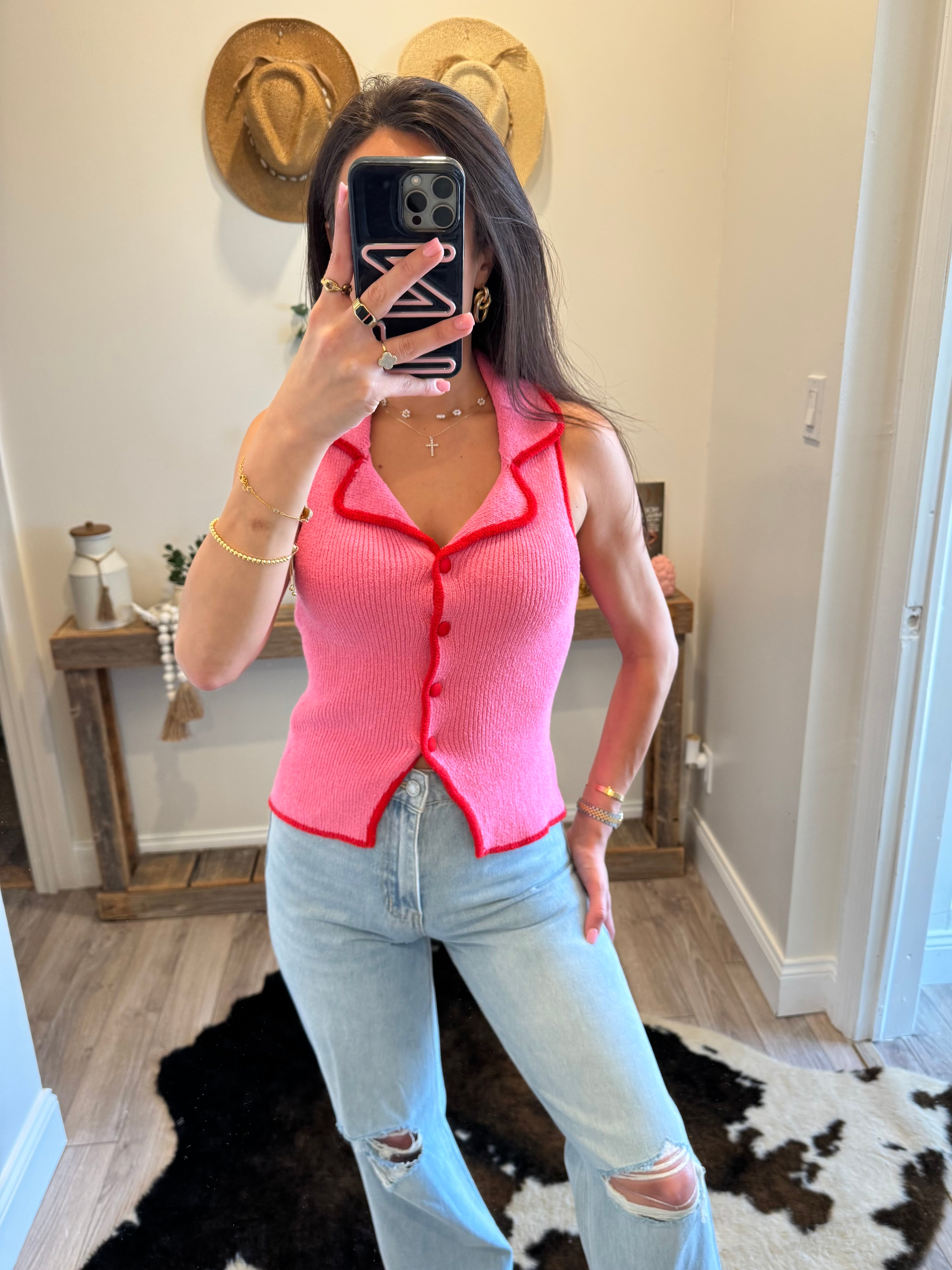 Red/Pink Knitted Sweater Collar Top
