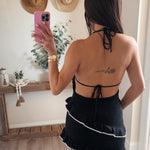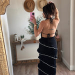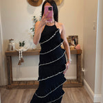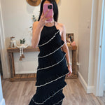 Black Sweater Halter Midi Dress With White Diagonal Frills