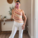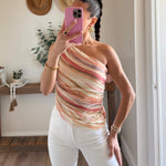 Product Features: One Shoulder Ruched Mesh Top with Asymmetrical Hem