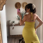 Melon Midi Halter Neck Open Back Dress