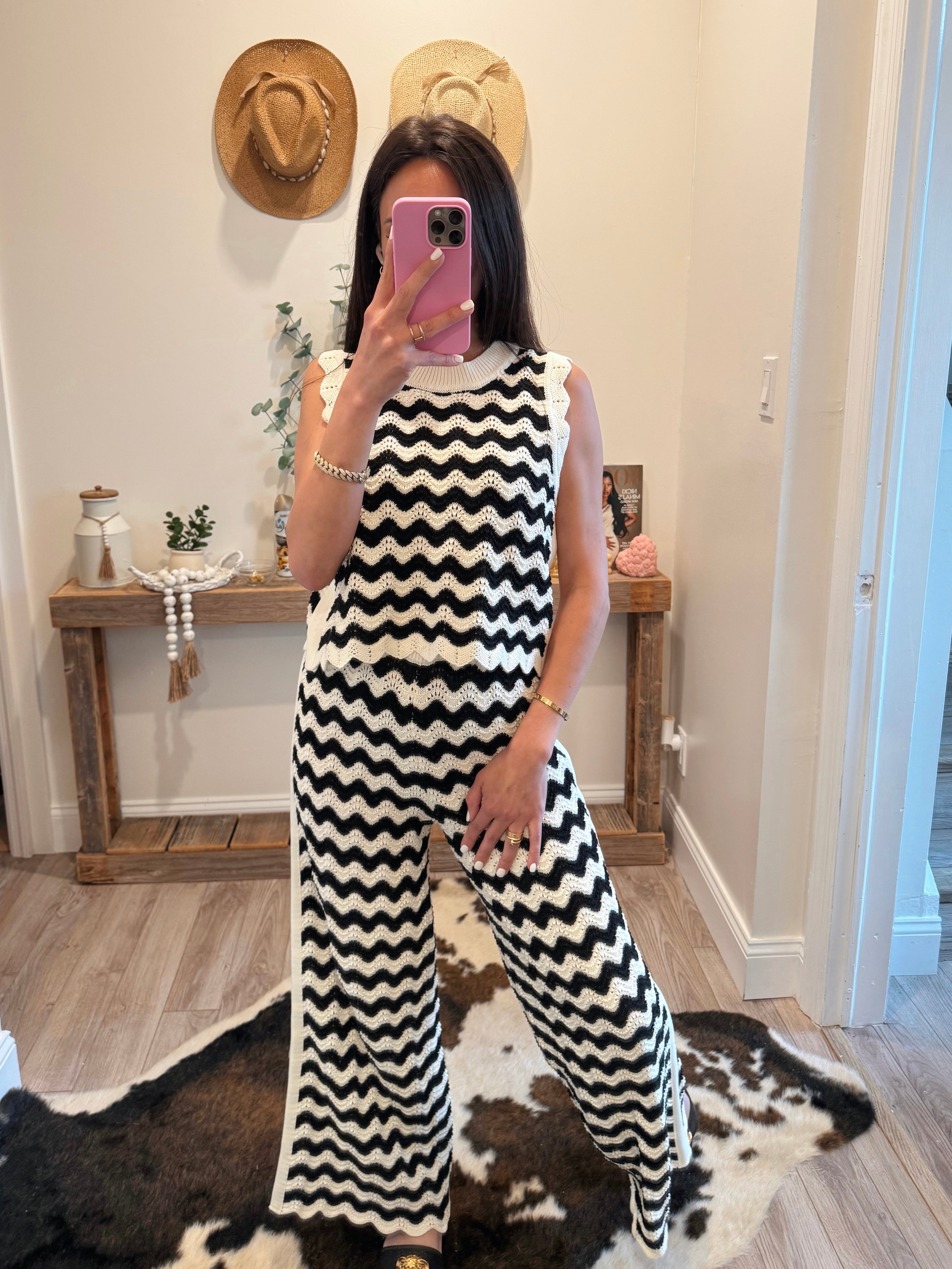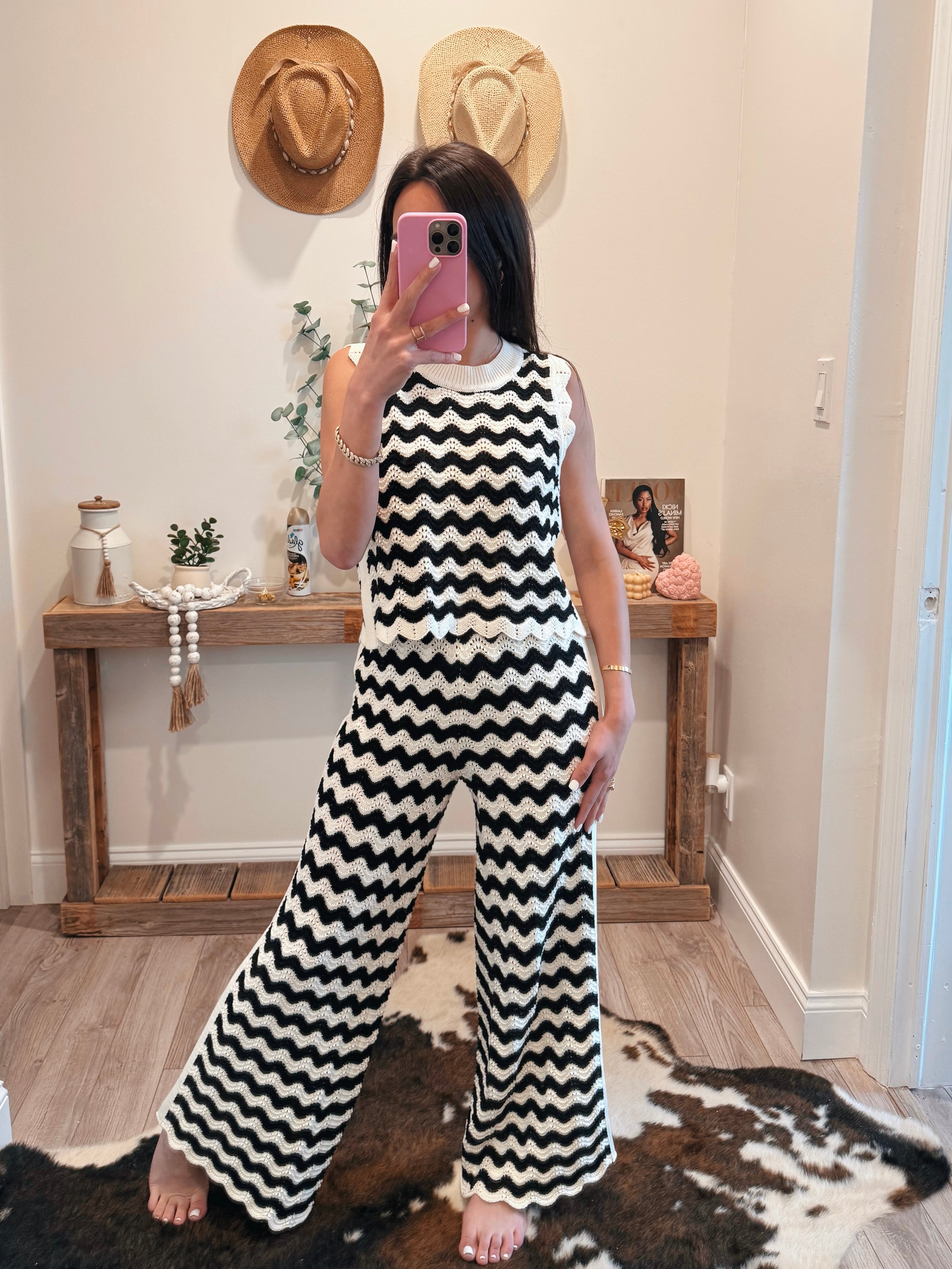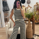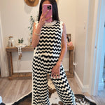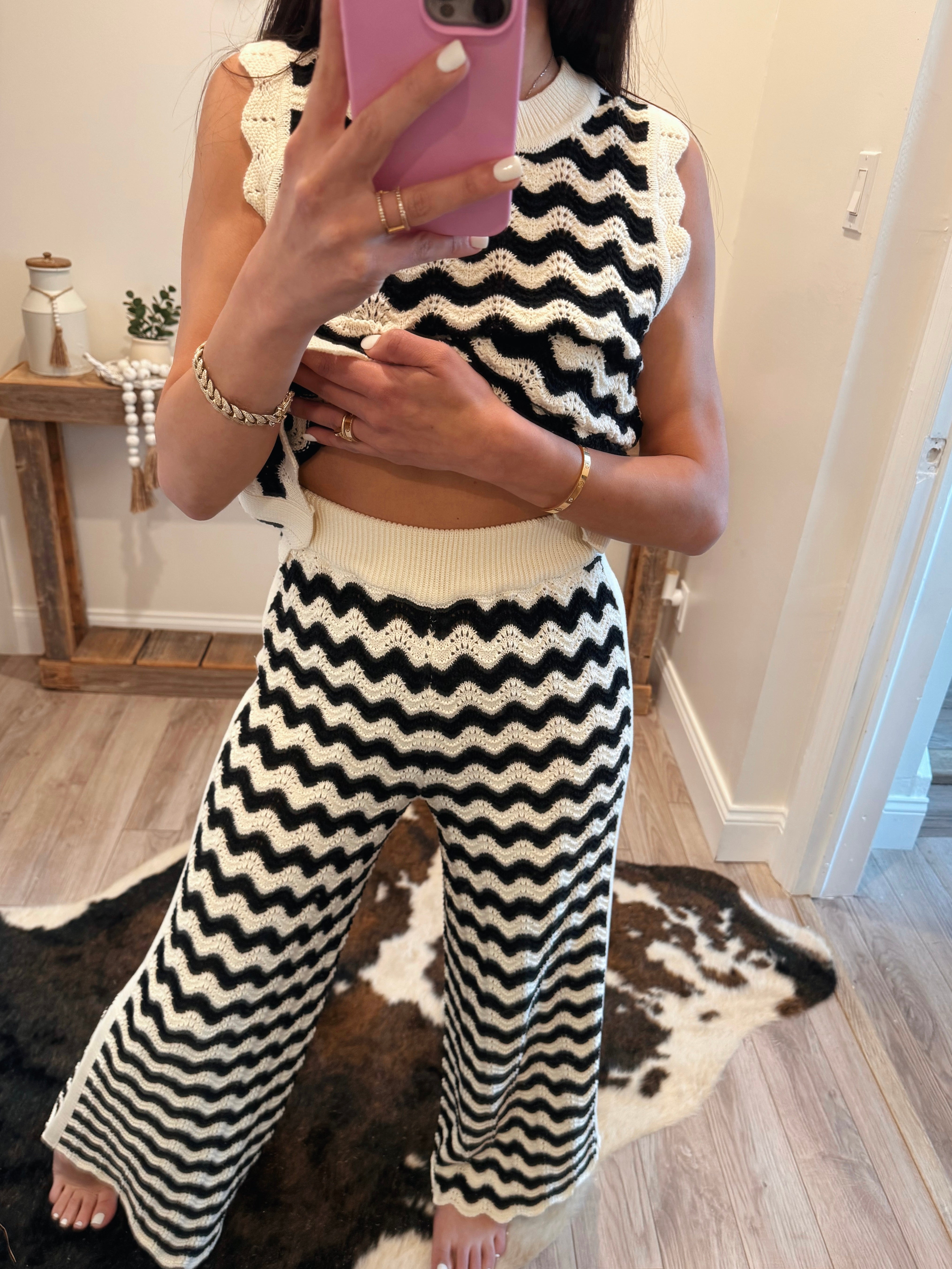 Black/White Patterned Crochet Knit Pants