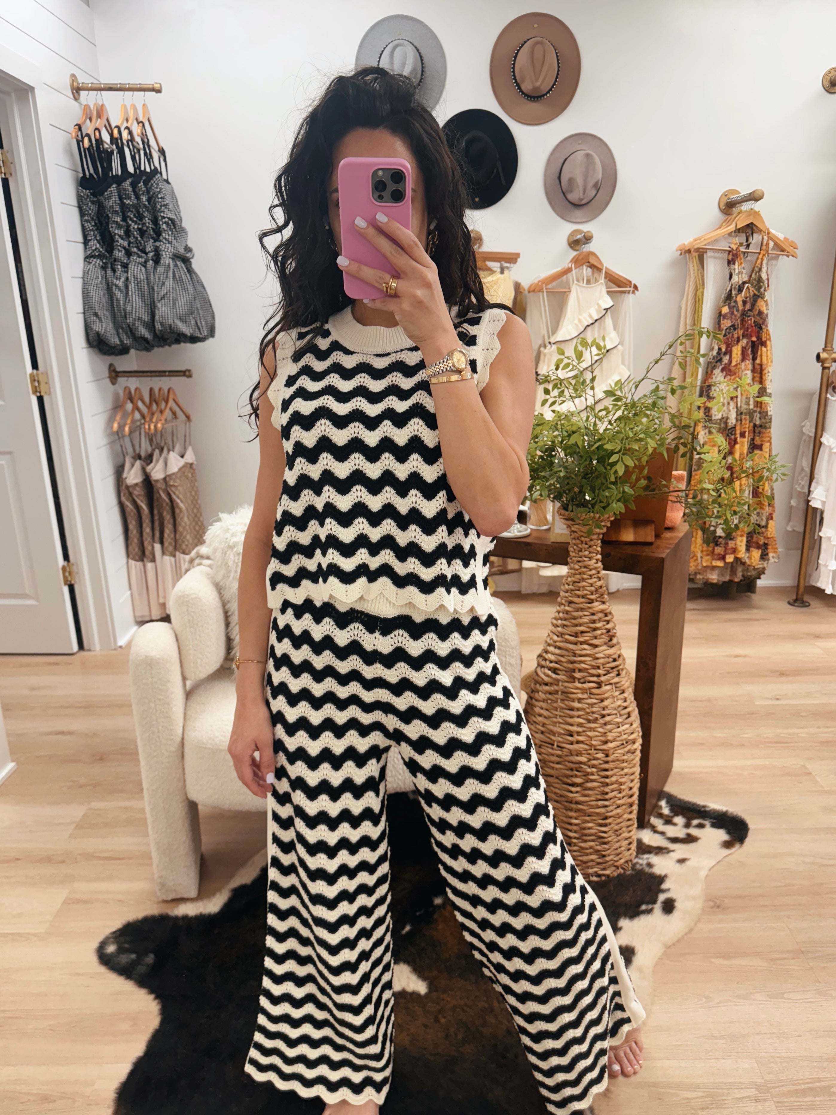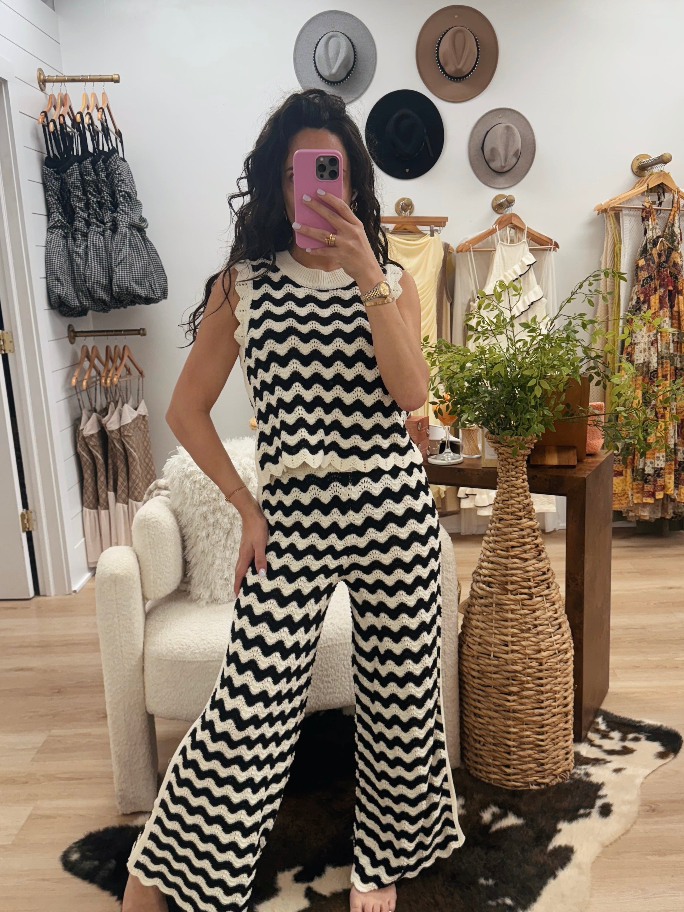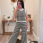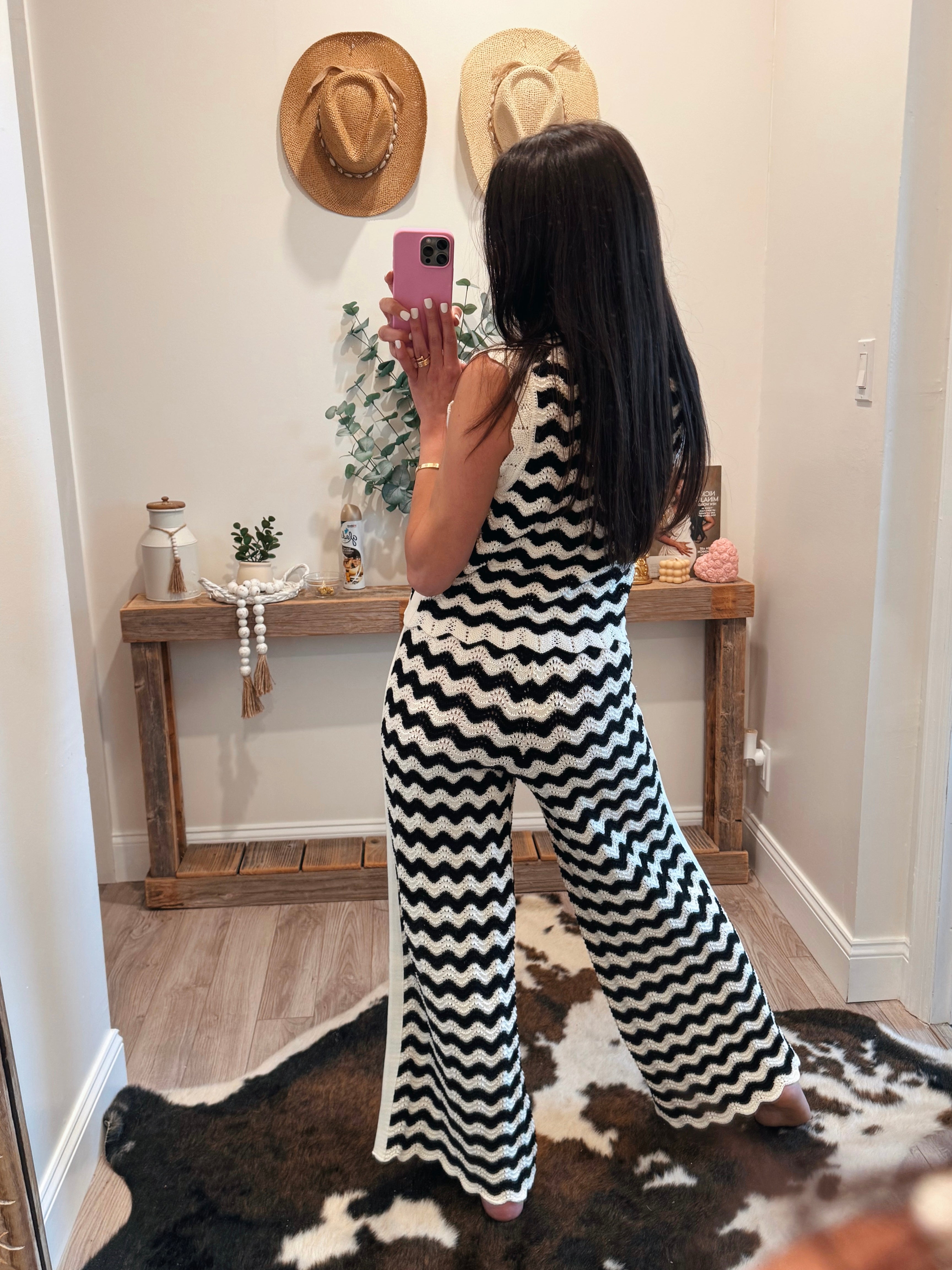Black/White Patterned Crochet Knit Pants