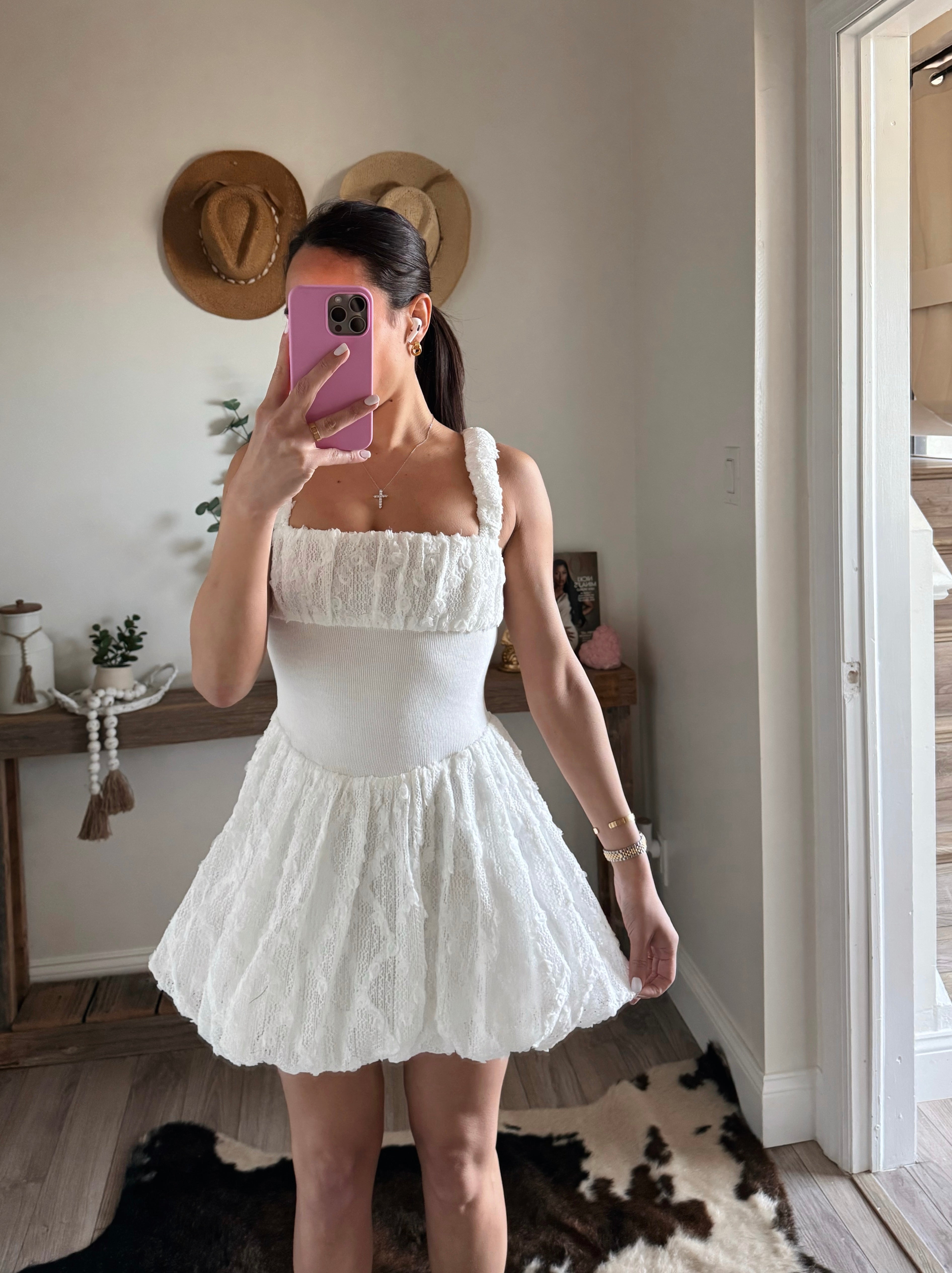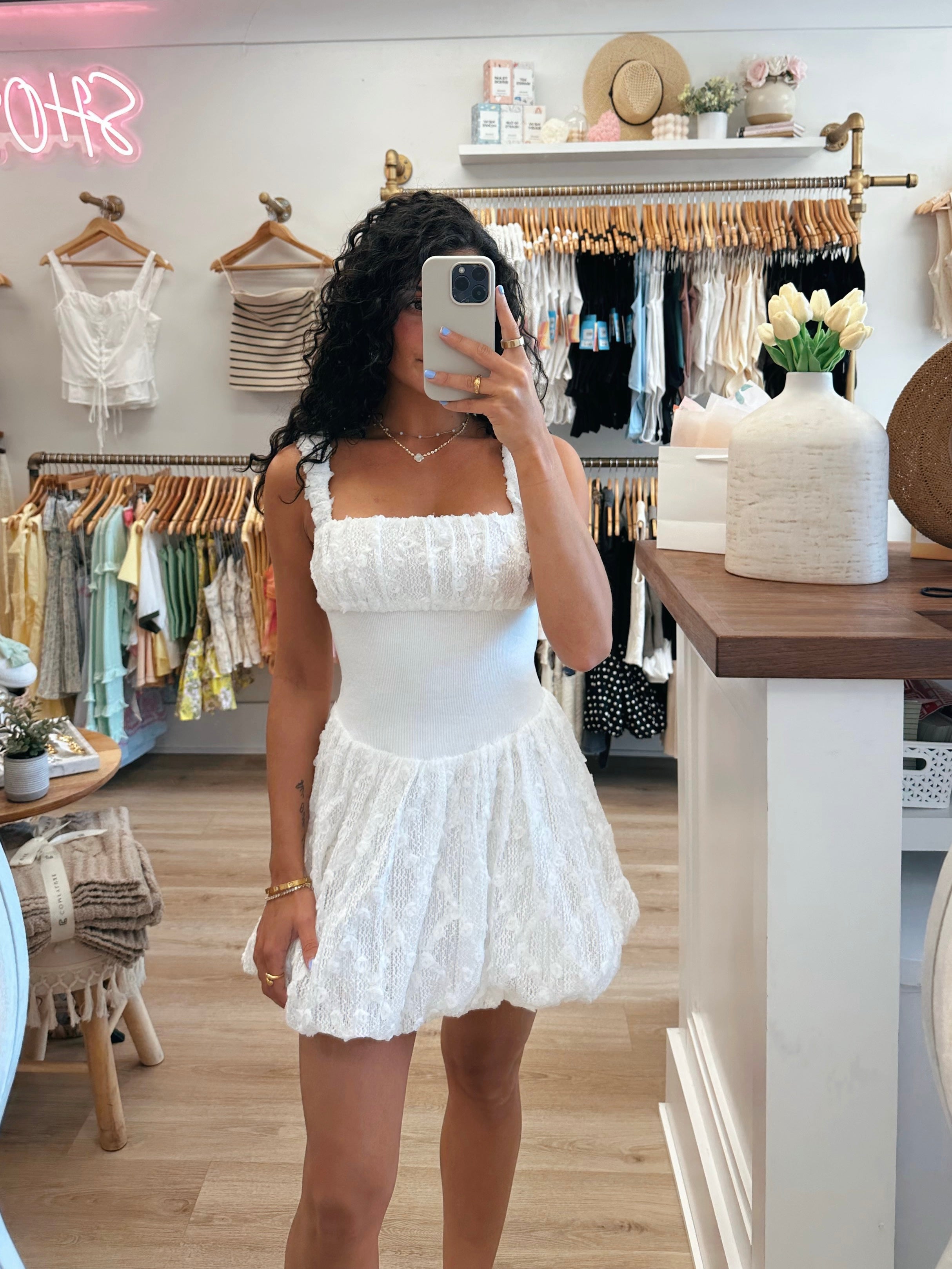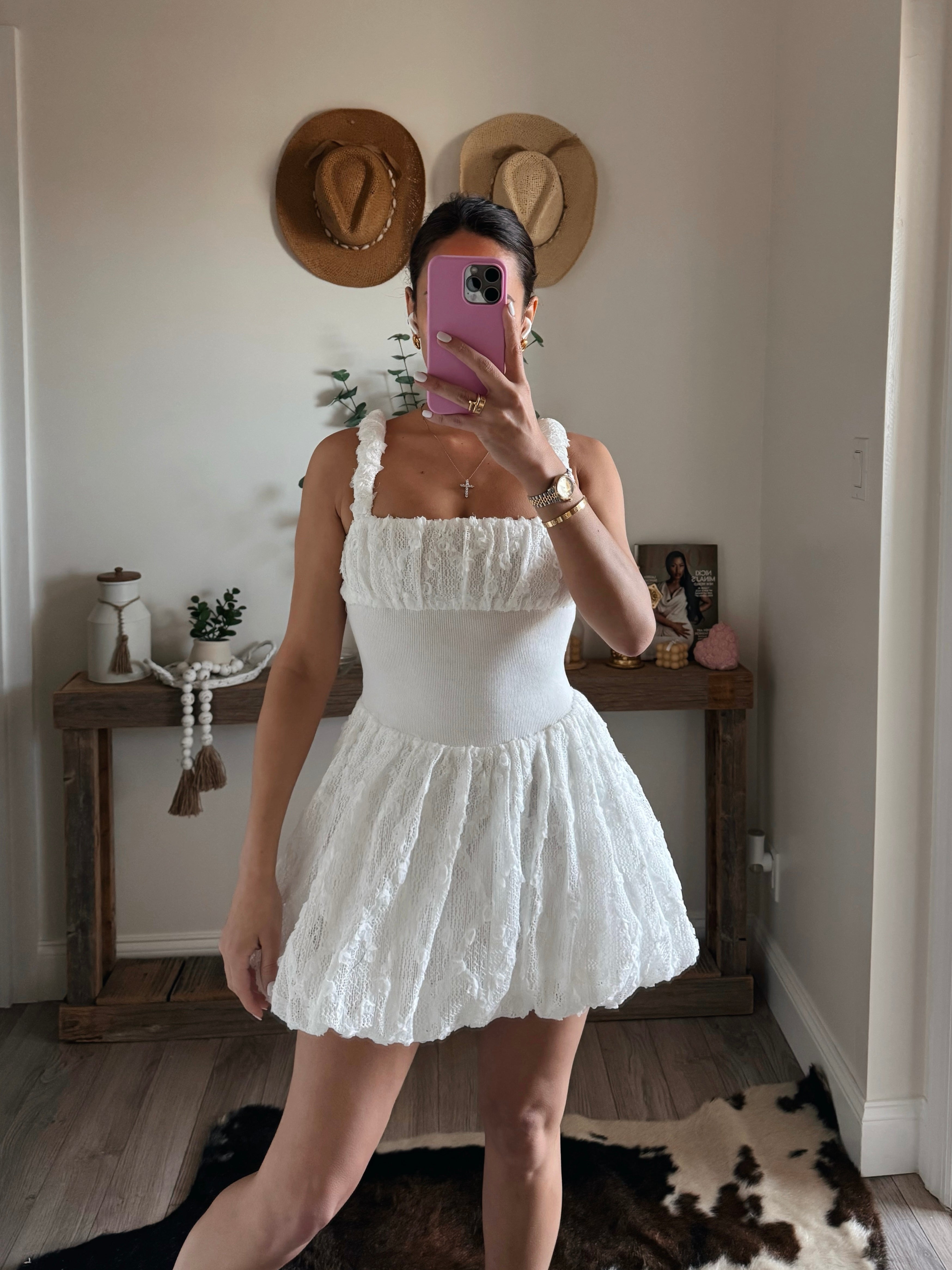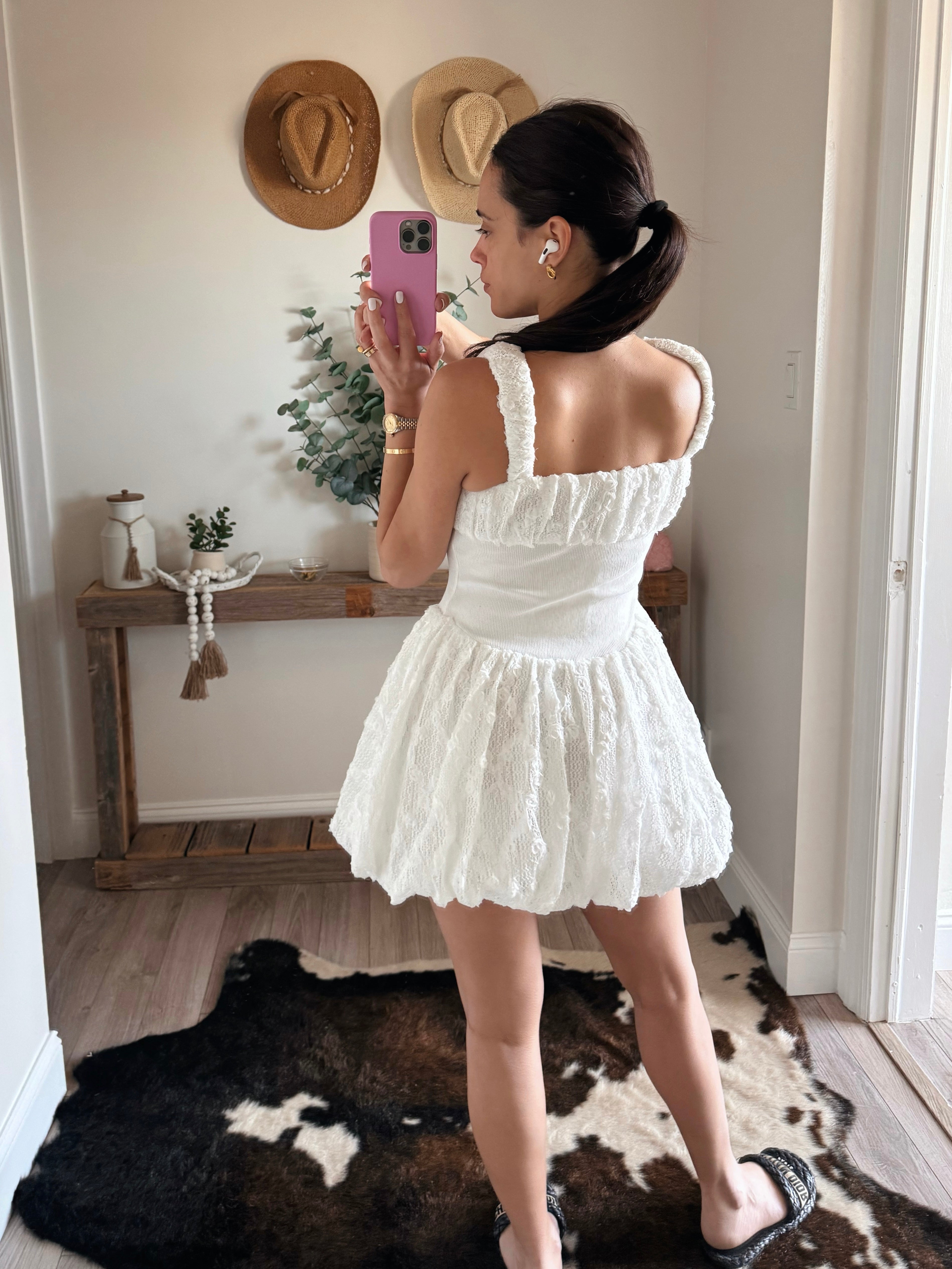 3D Lace Bubble Mini Dress
