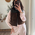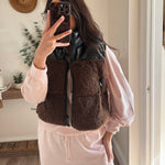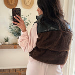 Black/Brown Sherpa Pu Puffer Vest