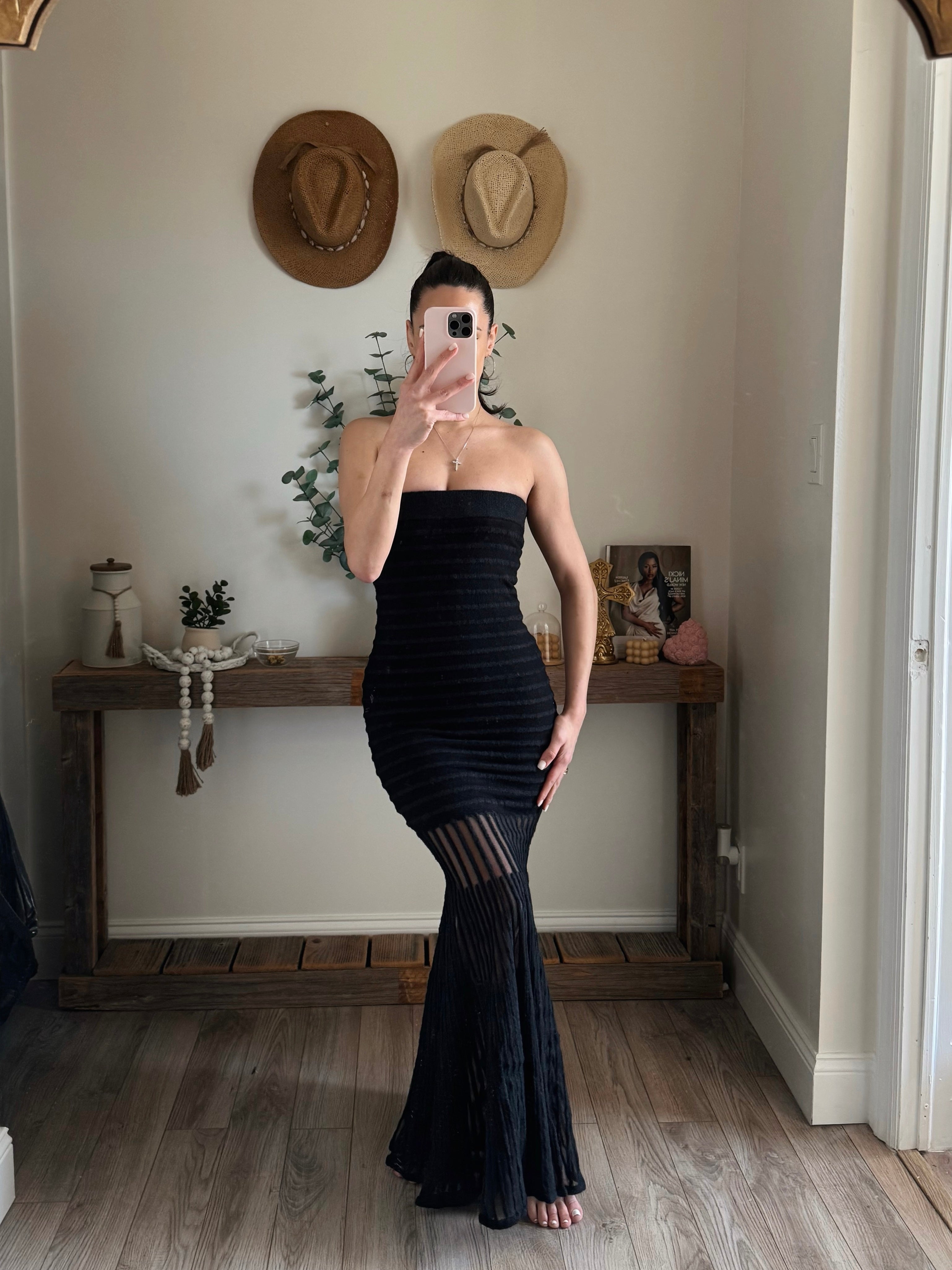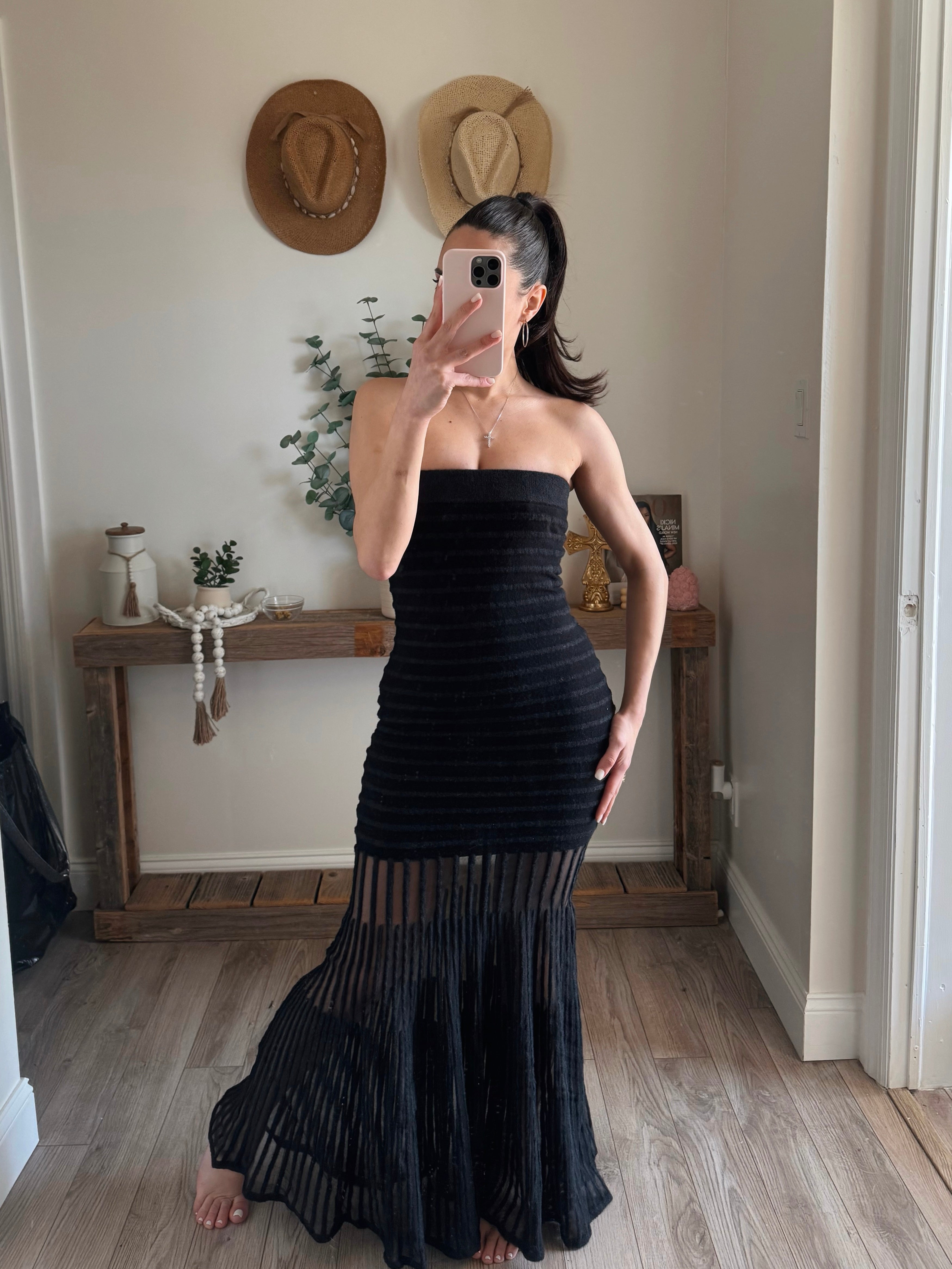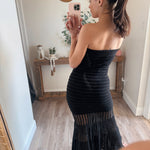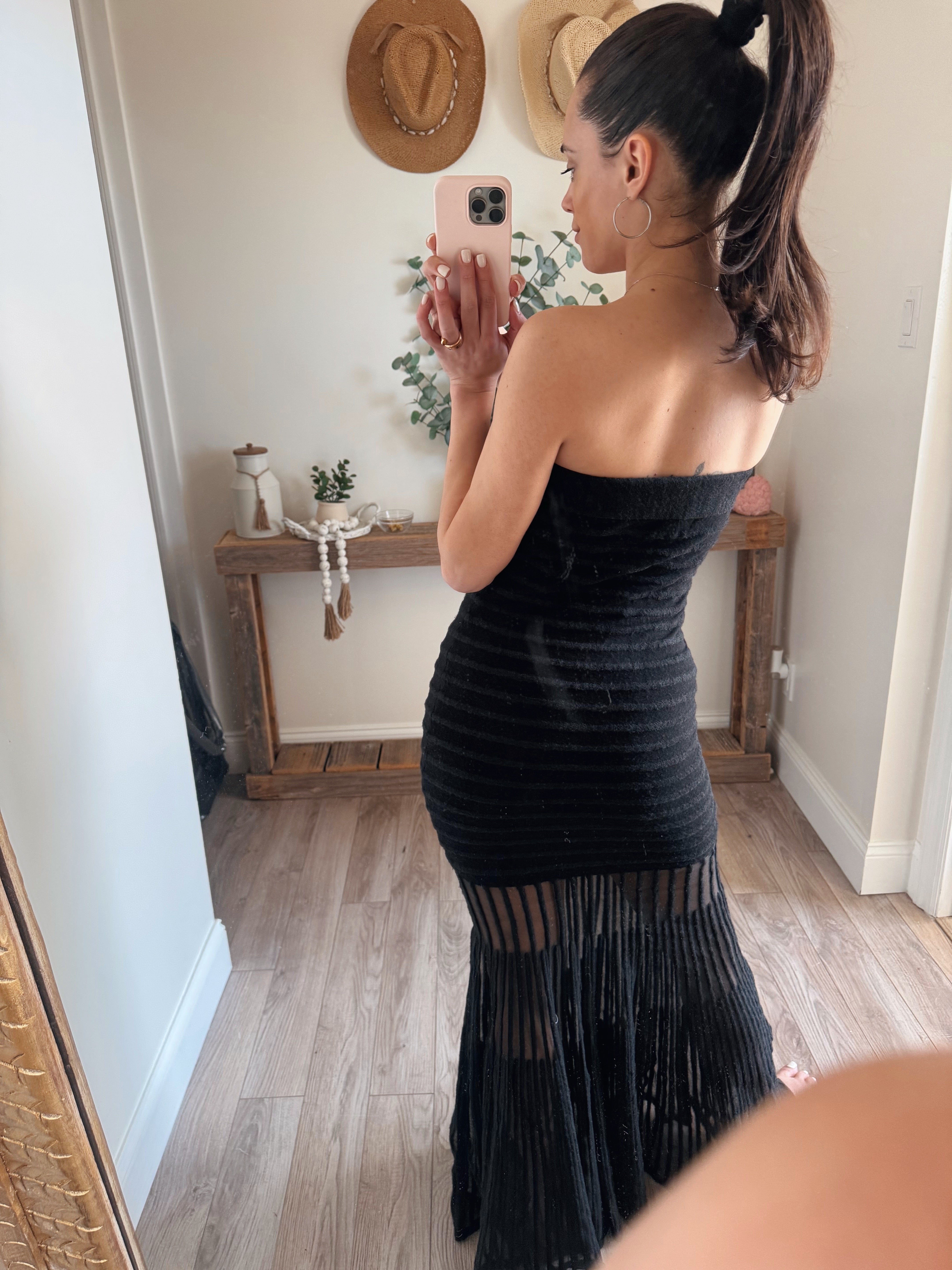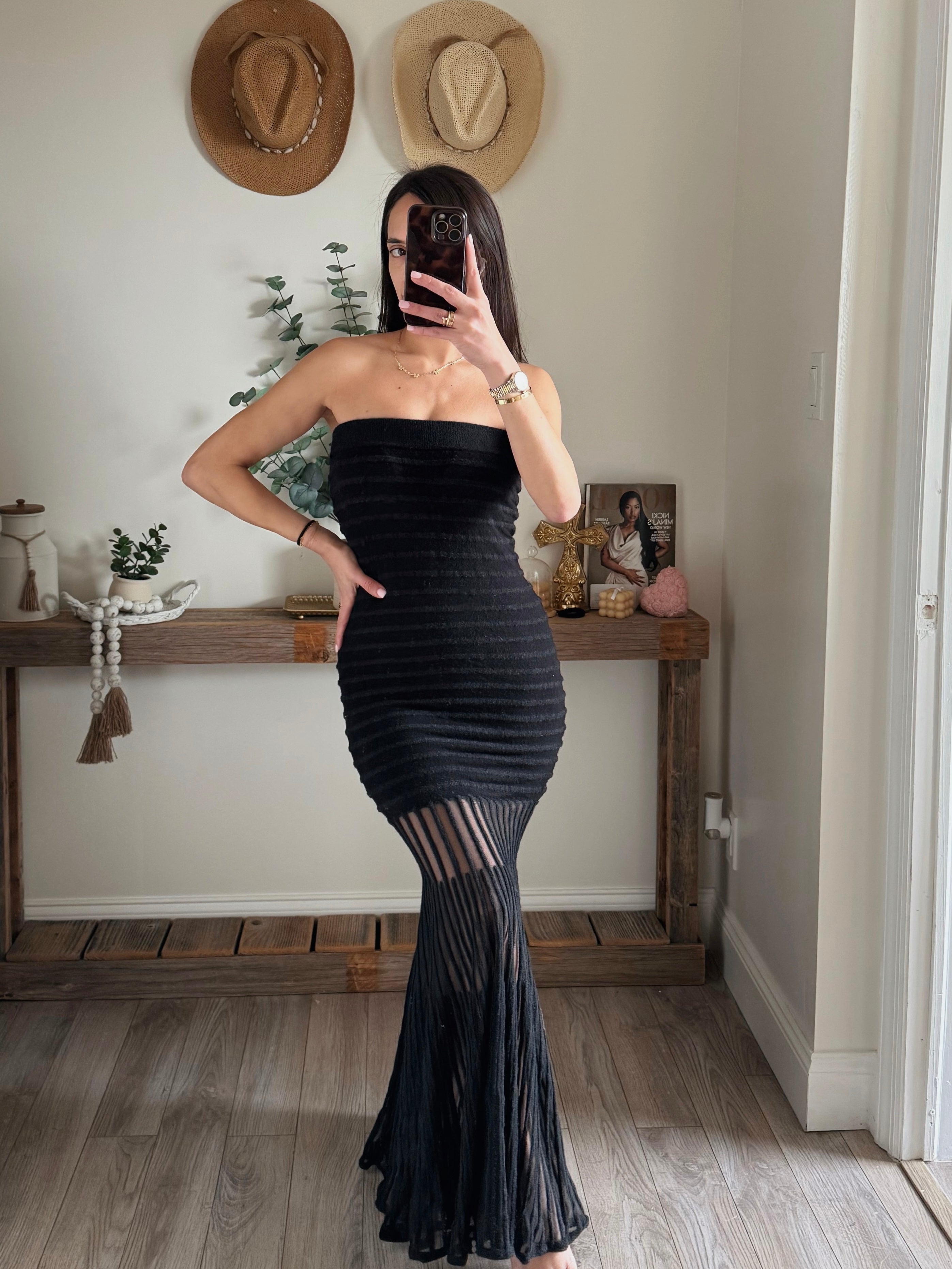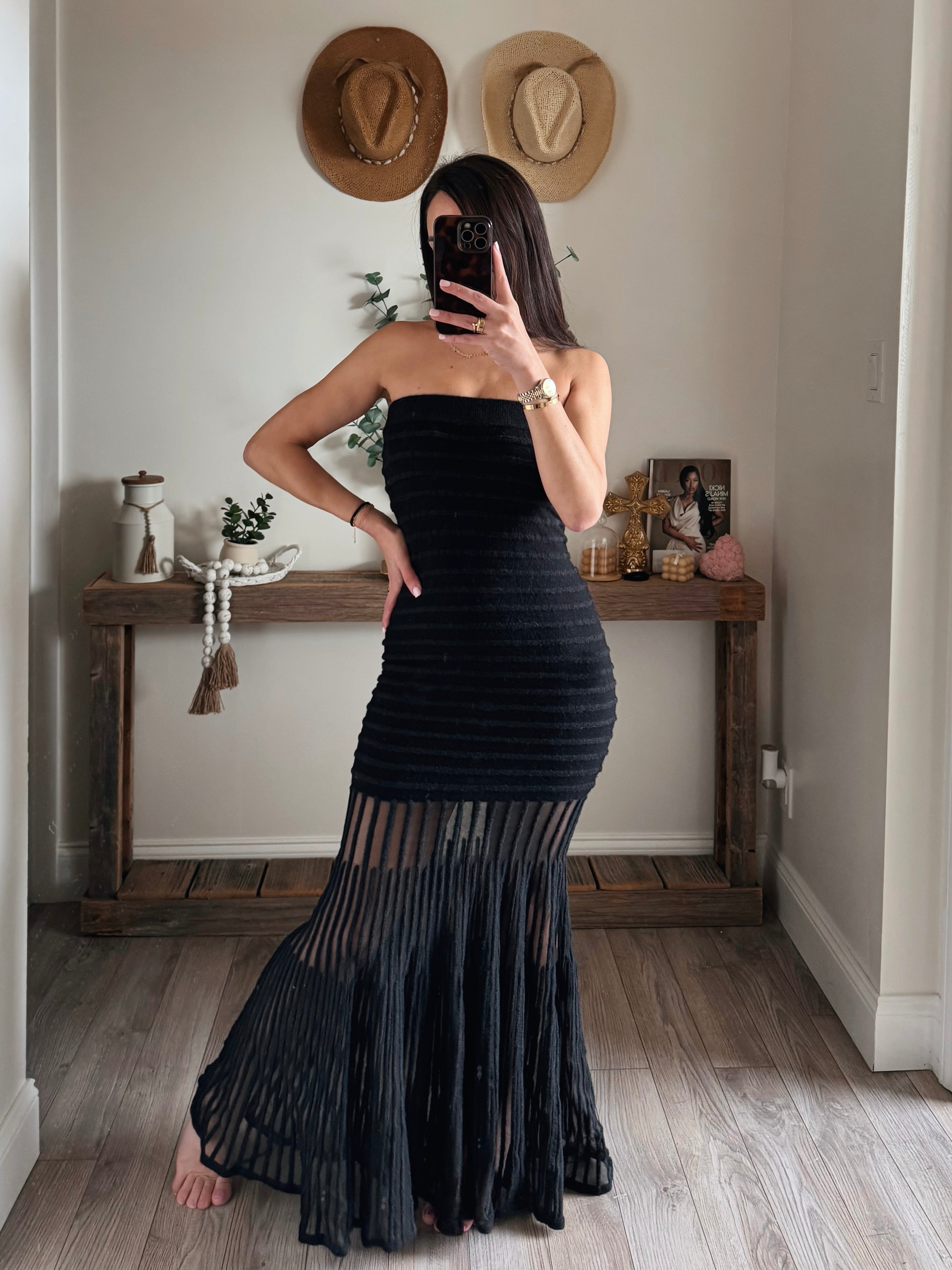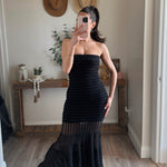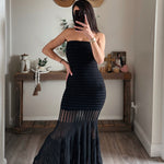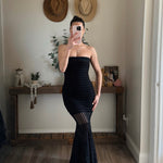 Black Sheer Strapless Drop-Waist Maxi Dress