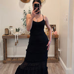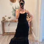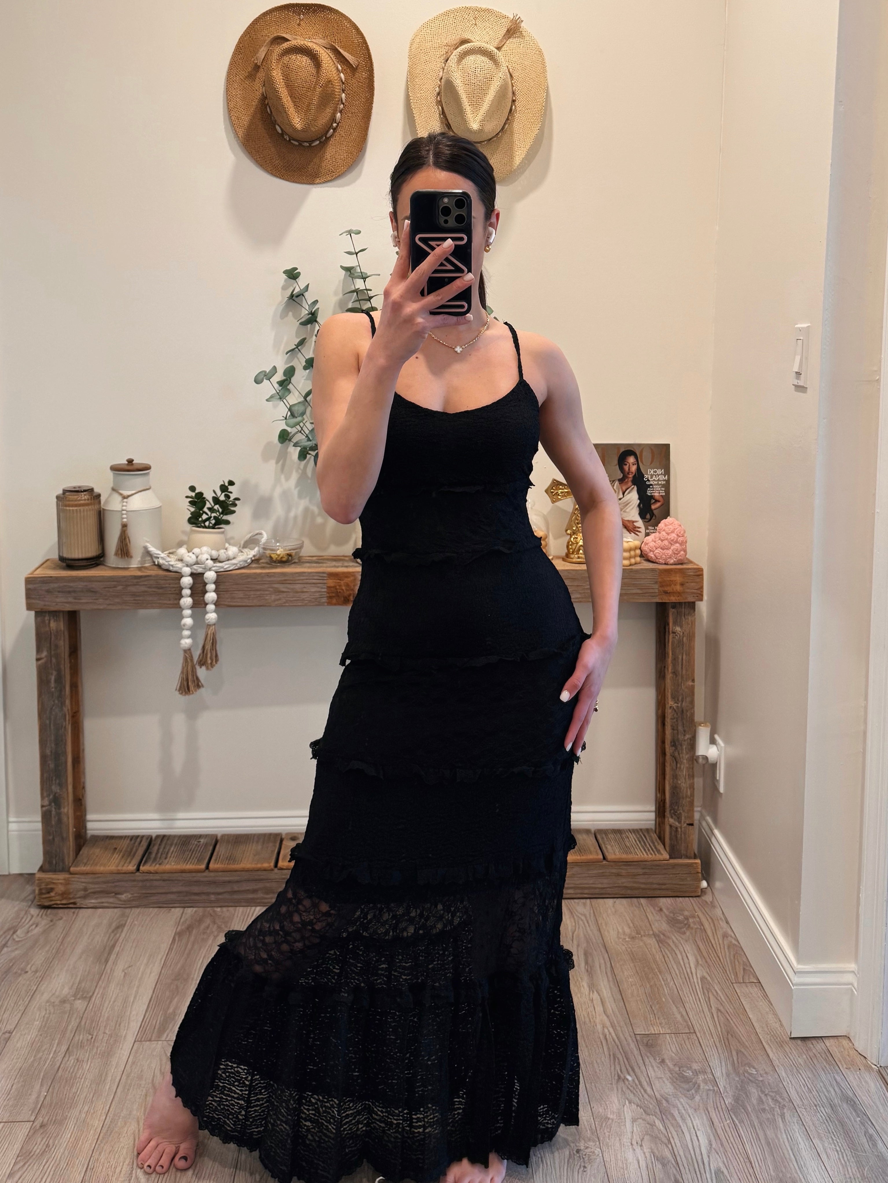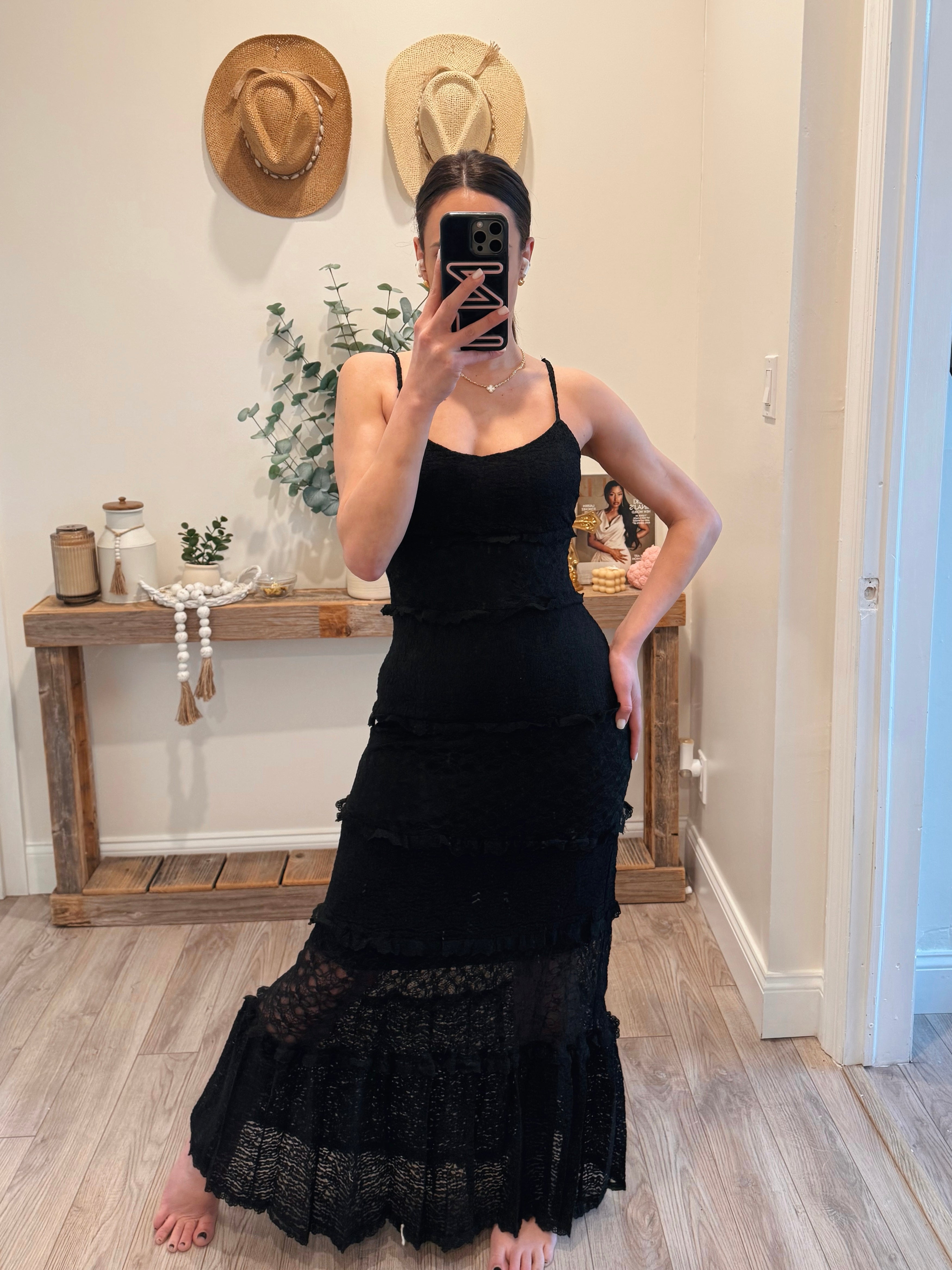 Black Tiered Ruffled Lace Maxi Dress with Partial Lining