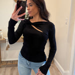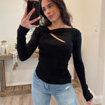 Product Features: Long Sleeve - Asymmetrical Neckline - Cutout Detail - Soft Ribbed Knit - Slim Fit Silhouette