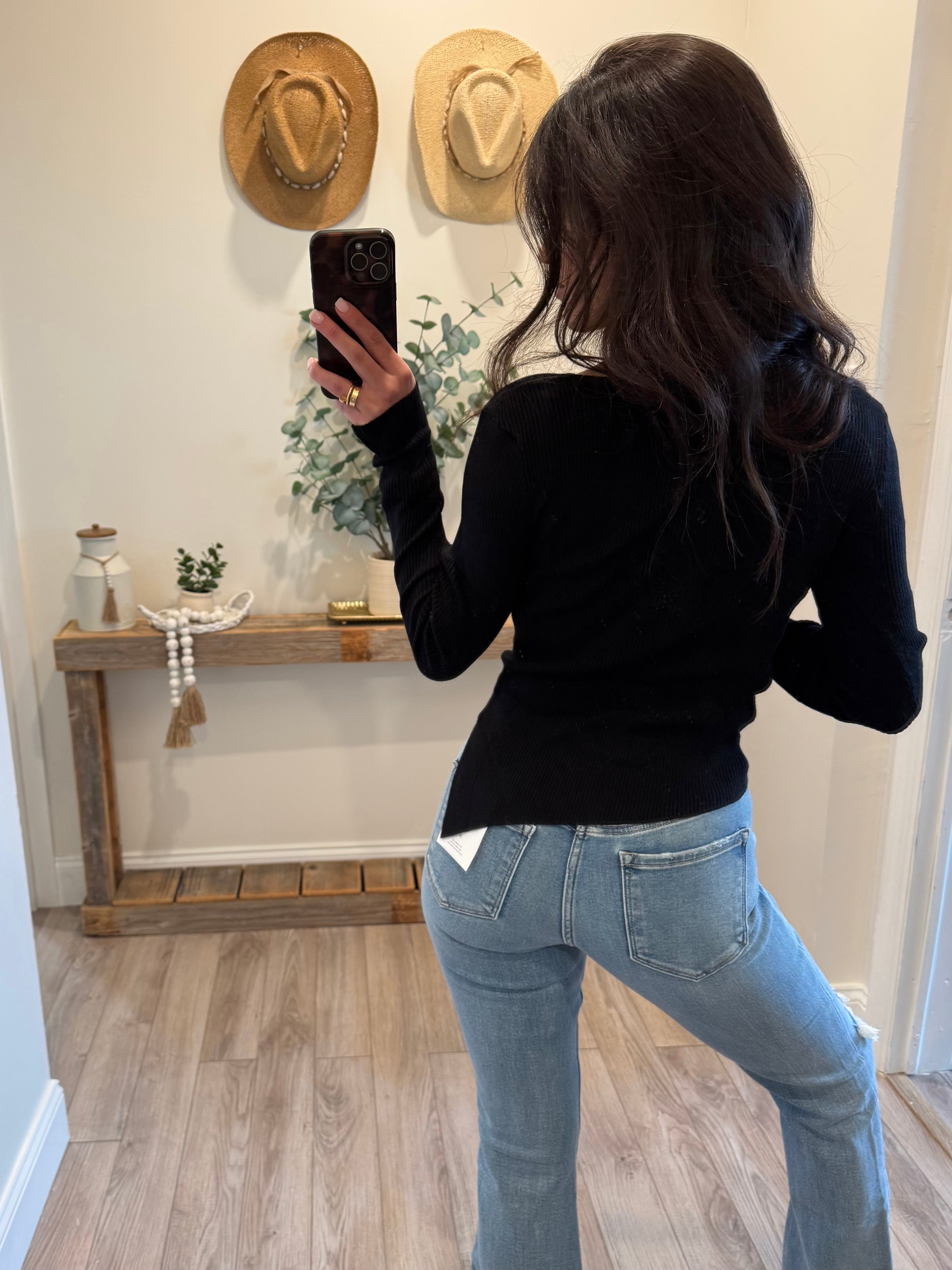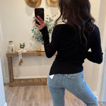Black Twisted Front Ribbed Sweater Top W Asymmetric Hem