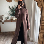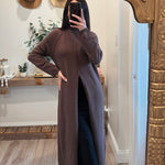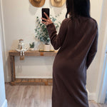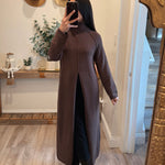 Chocolate Turtleneck Tunic Sweater Dress with Slit