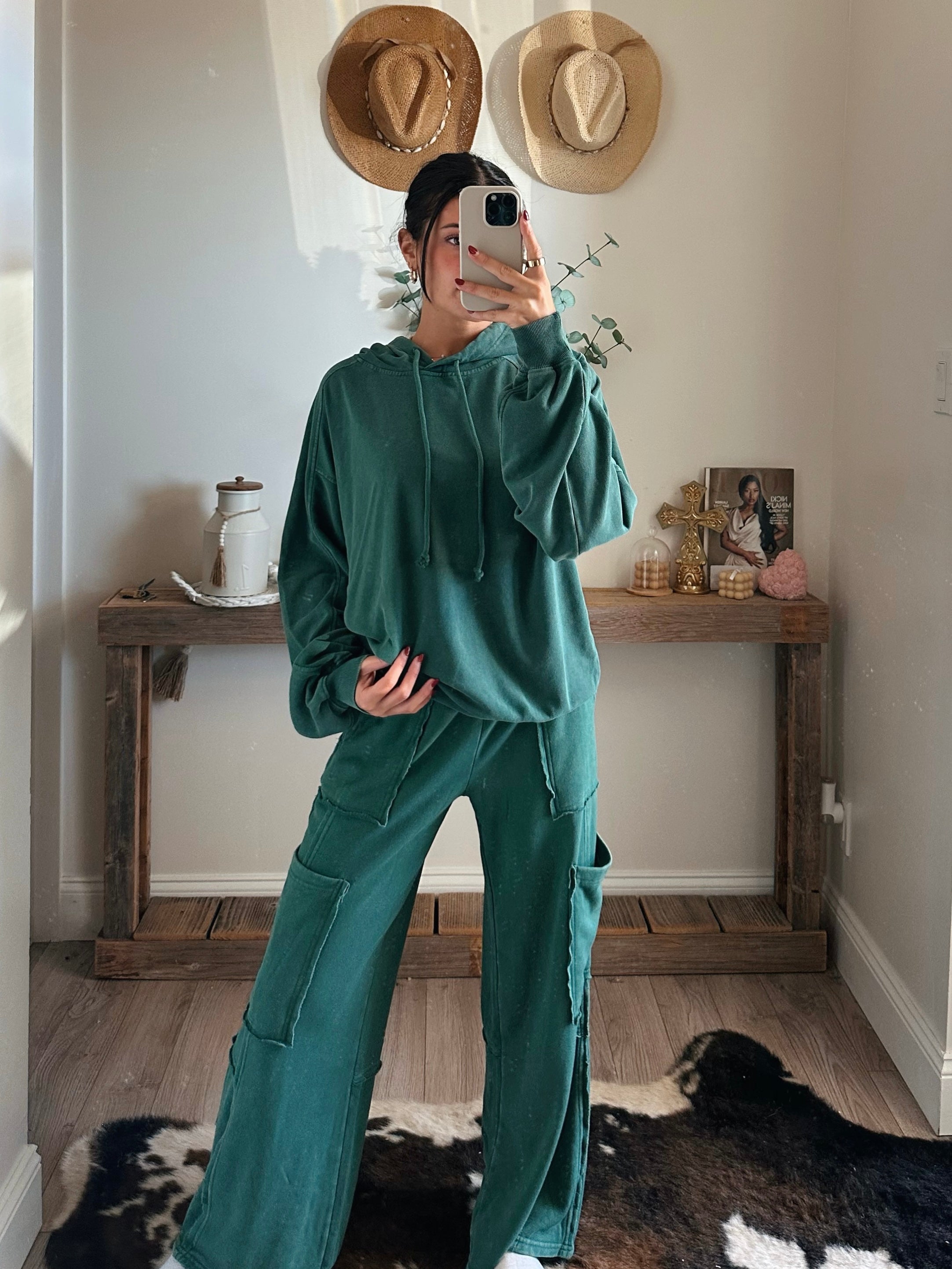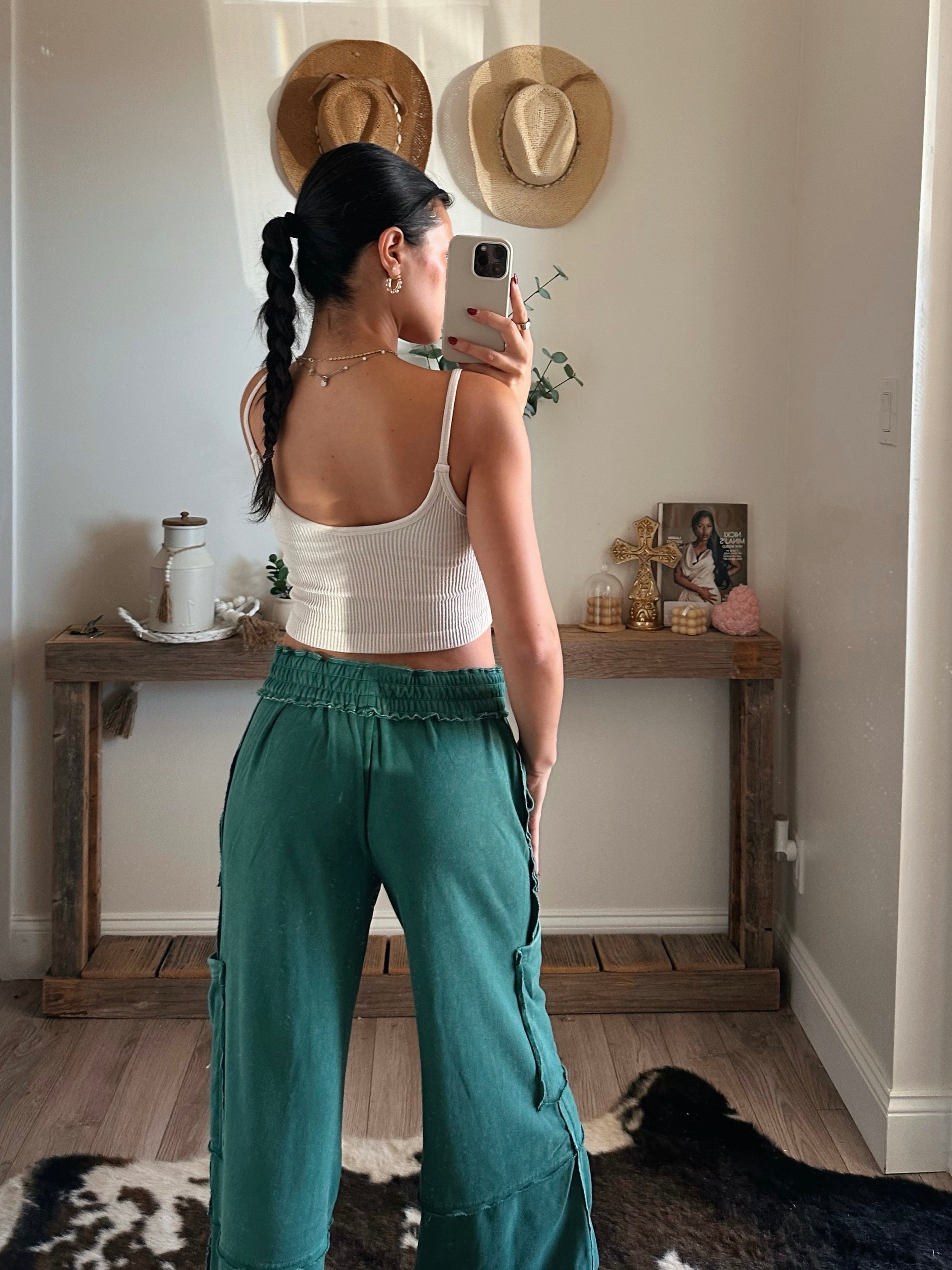 Dark Green Mineral Washed Oversized Cargo Sweatpants