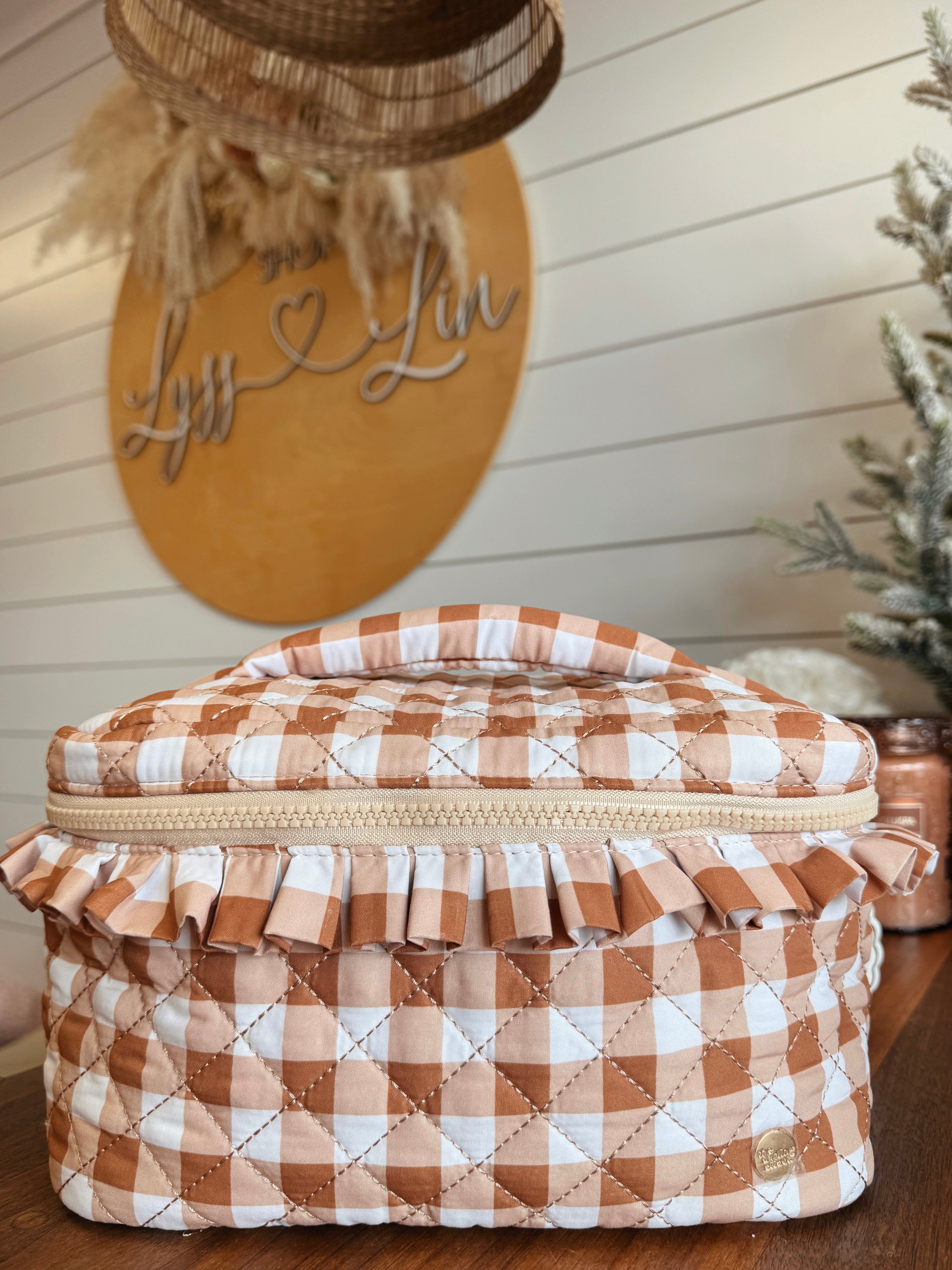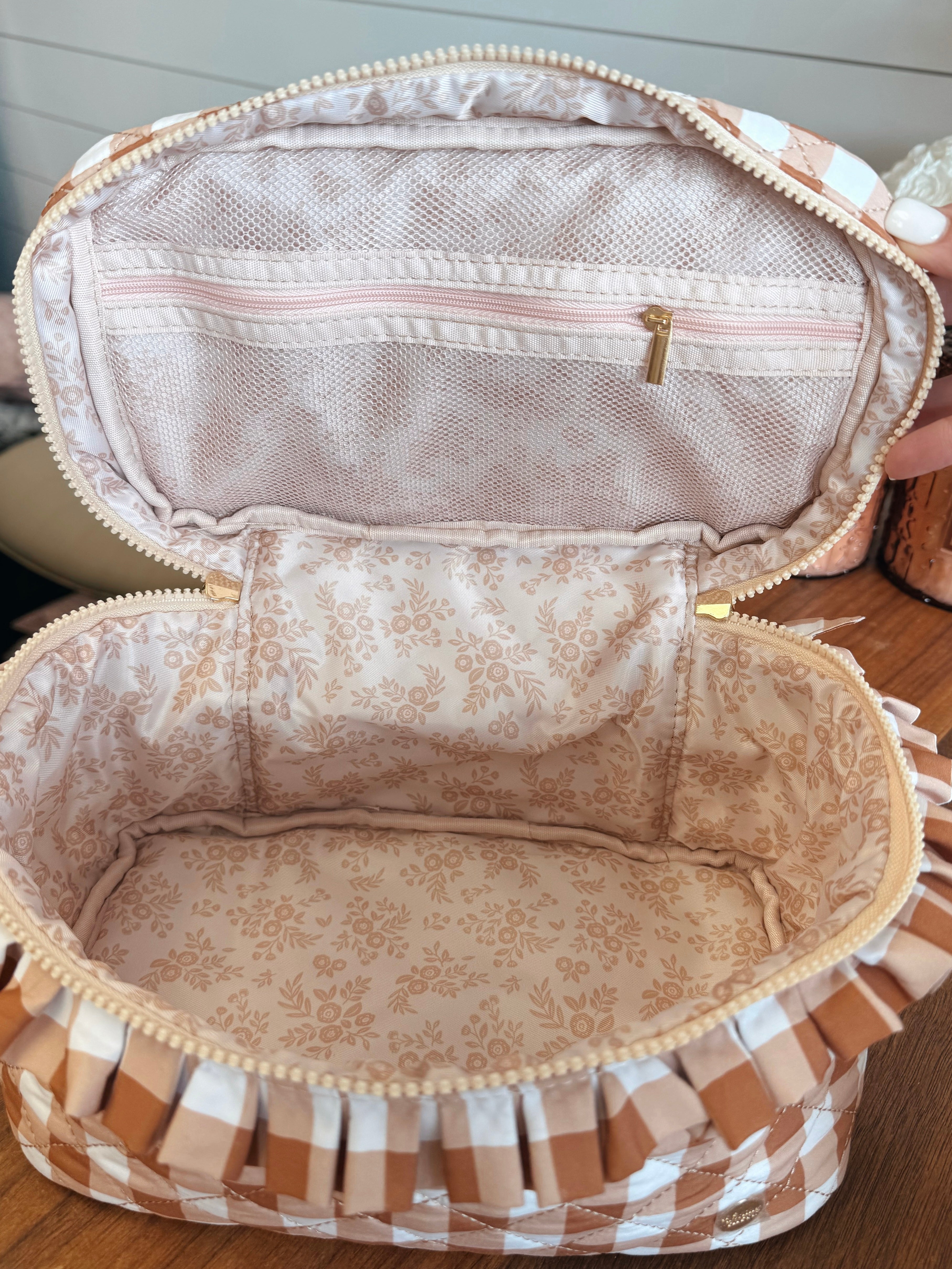 Glam & Go Quilted Cosmetic Bag-Maple Gingham
