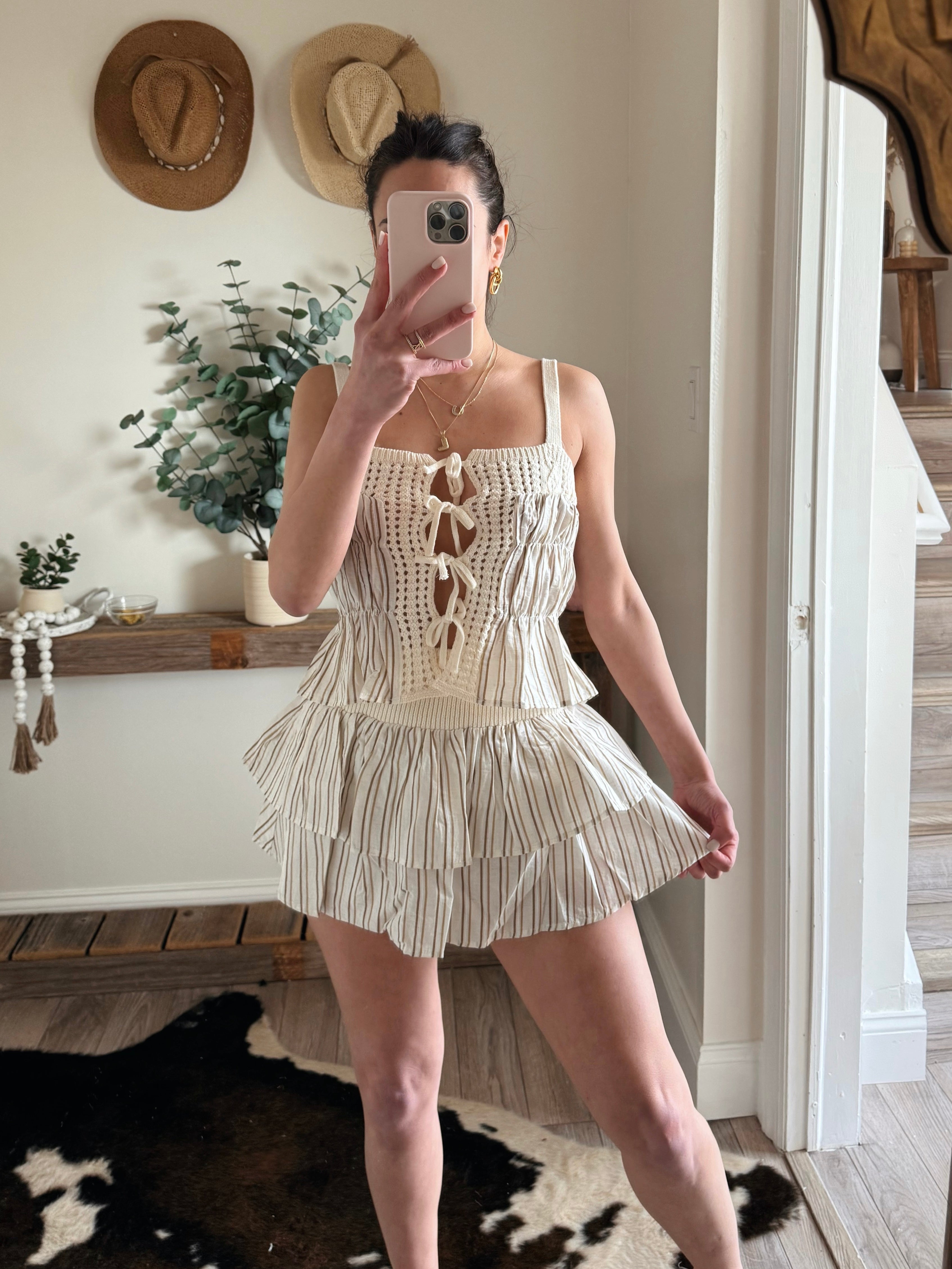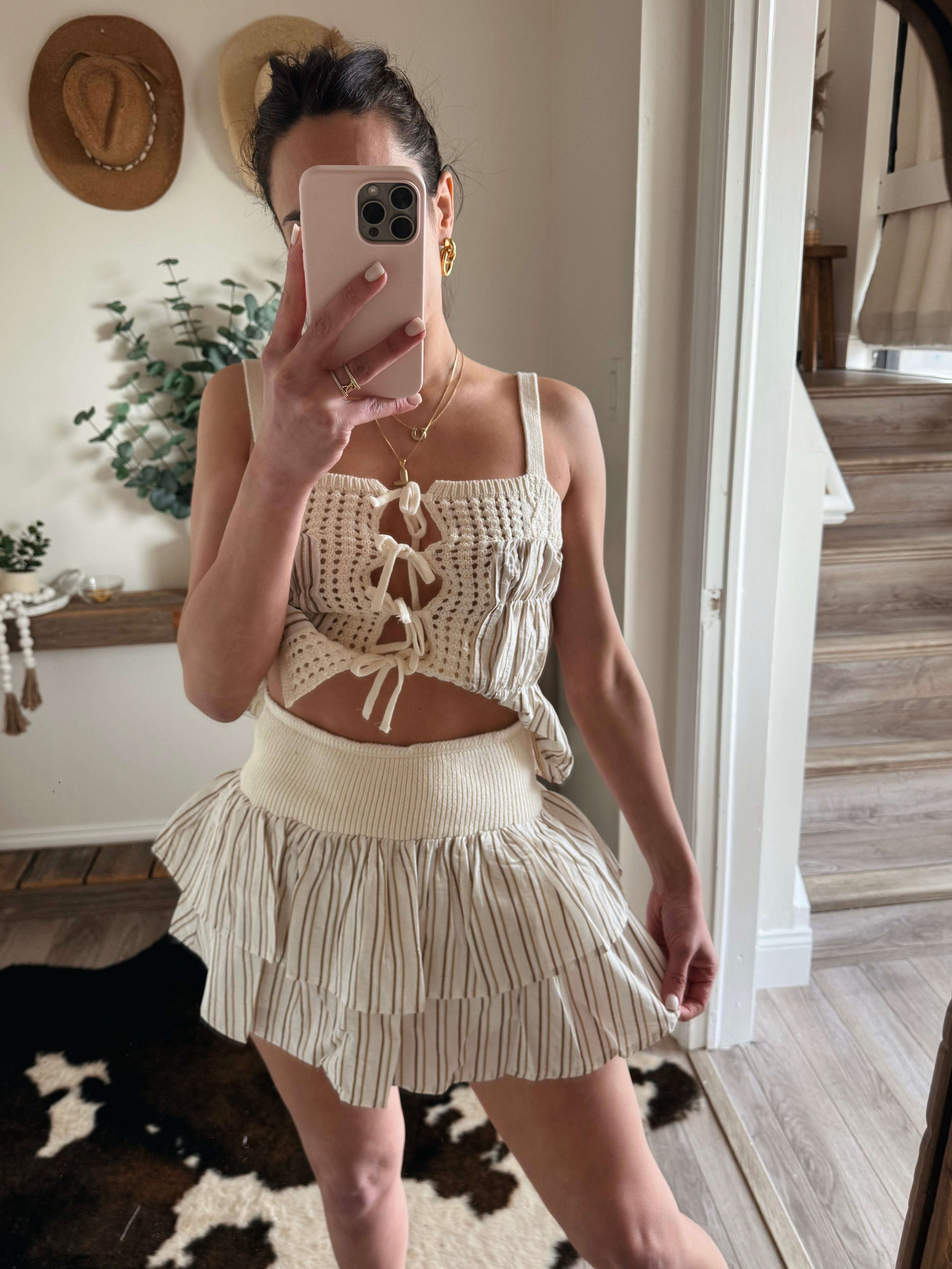 Mixed Knit Mini Skirt Set - TOP/BOTTOM