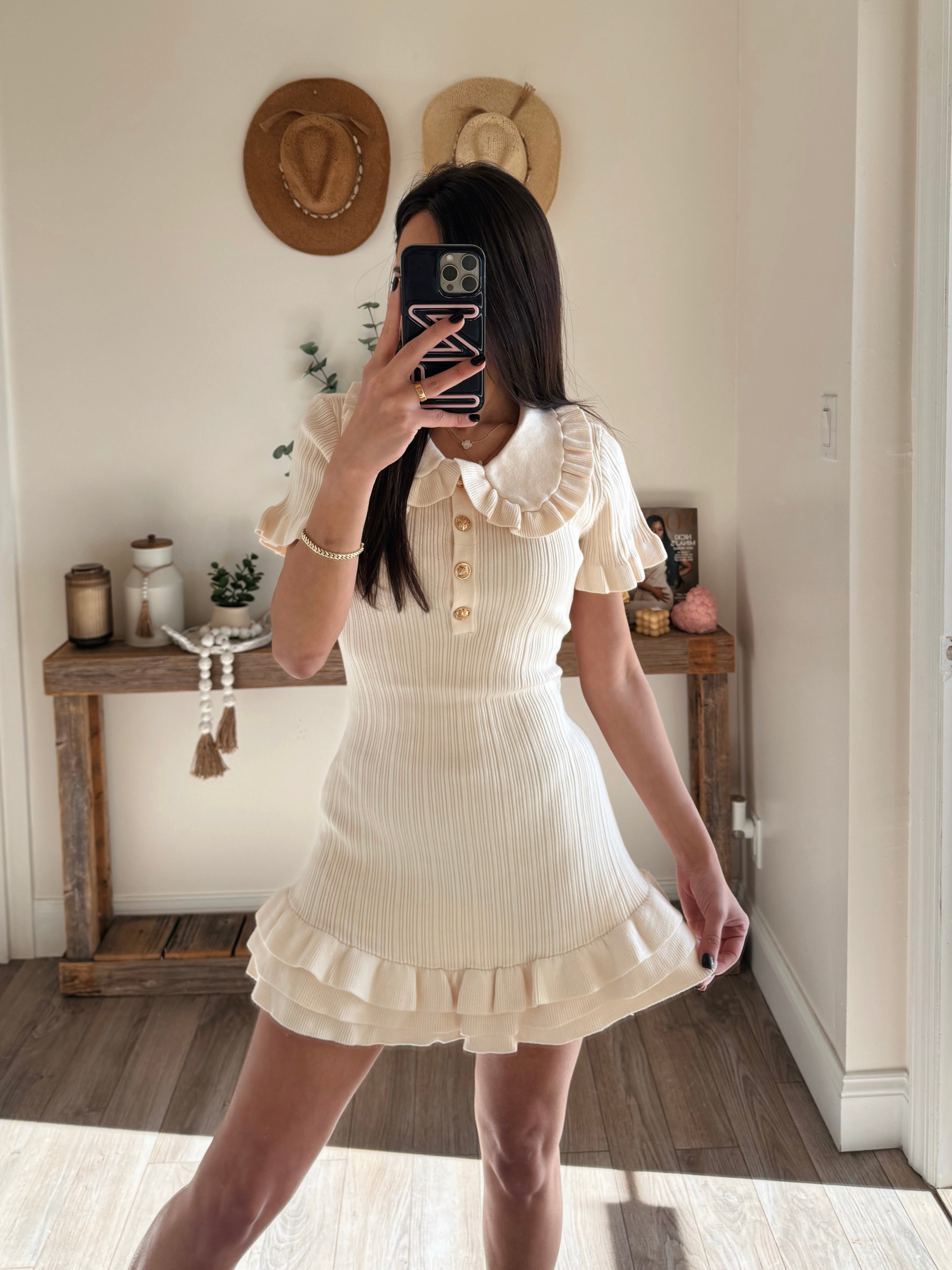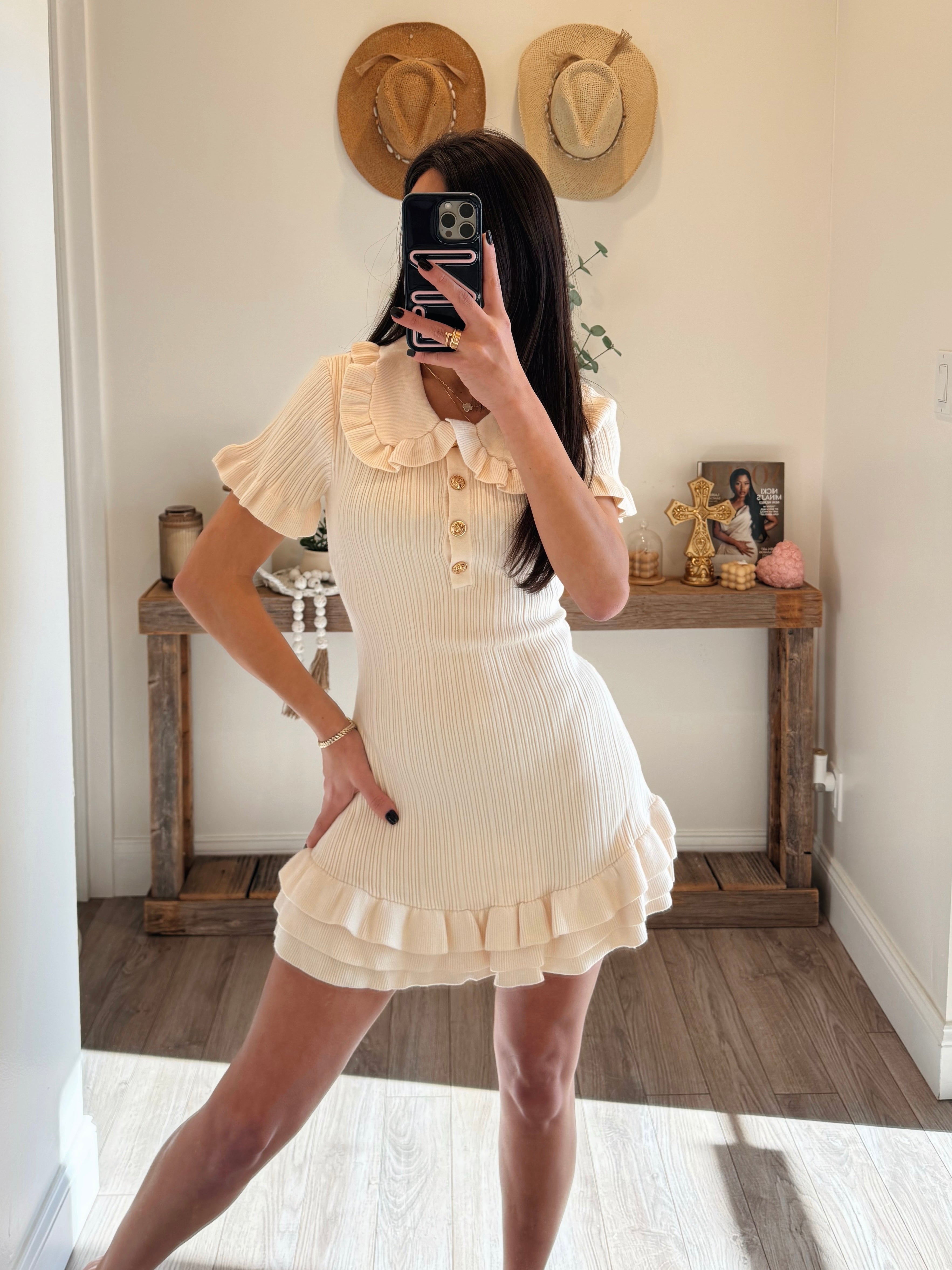 Ruffled Hem Collar Knit Mini Dress
