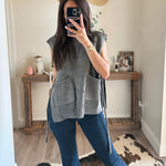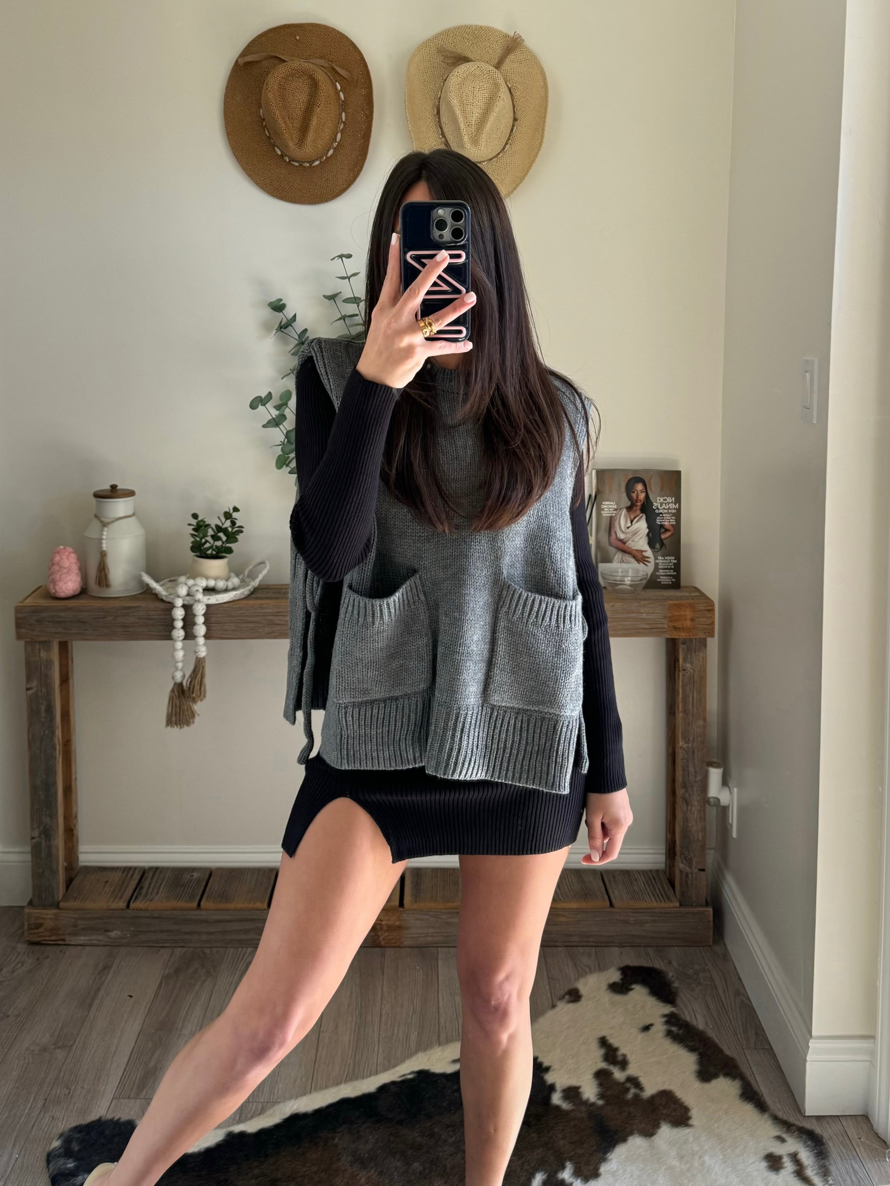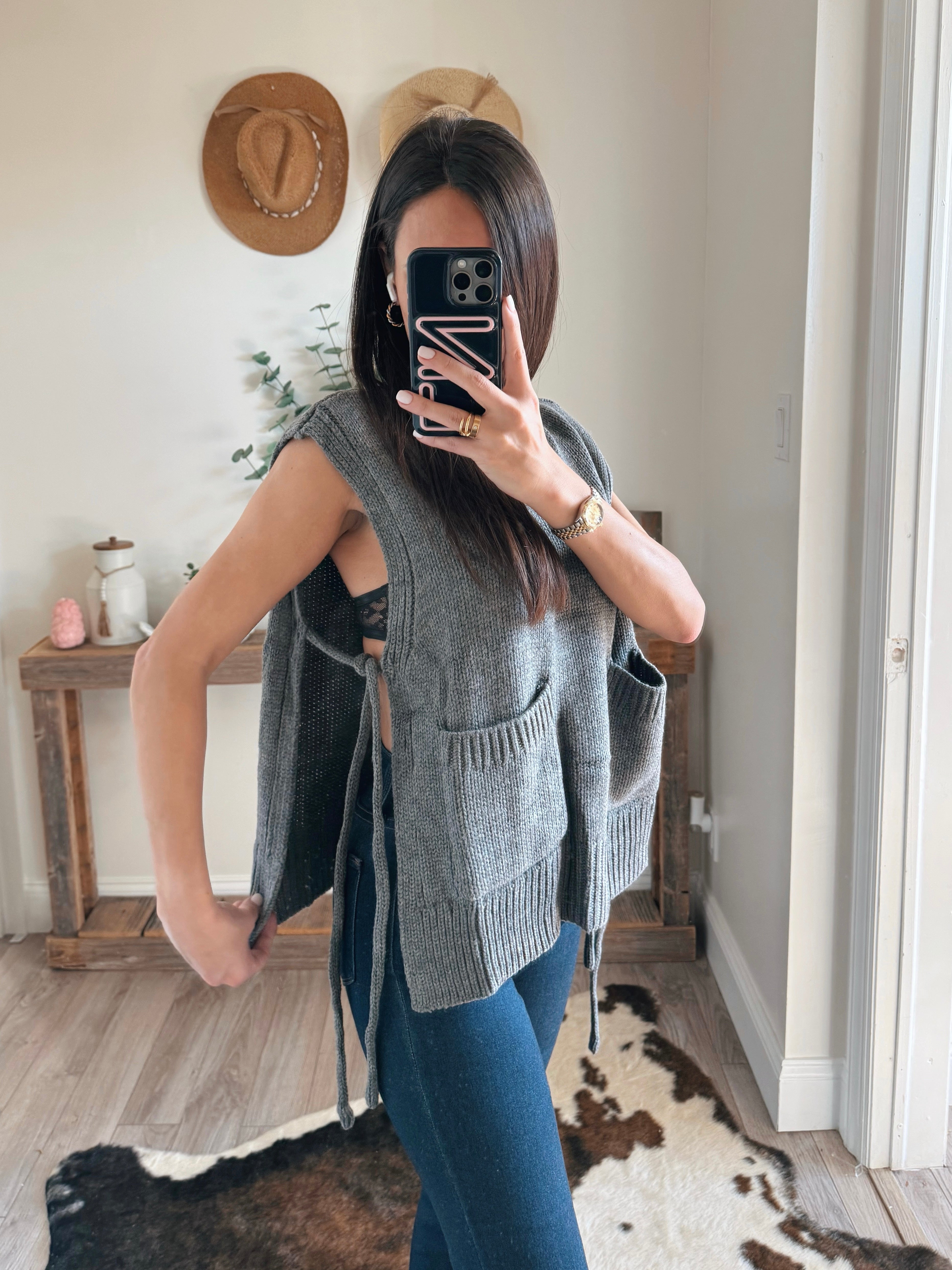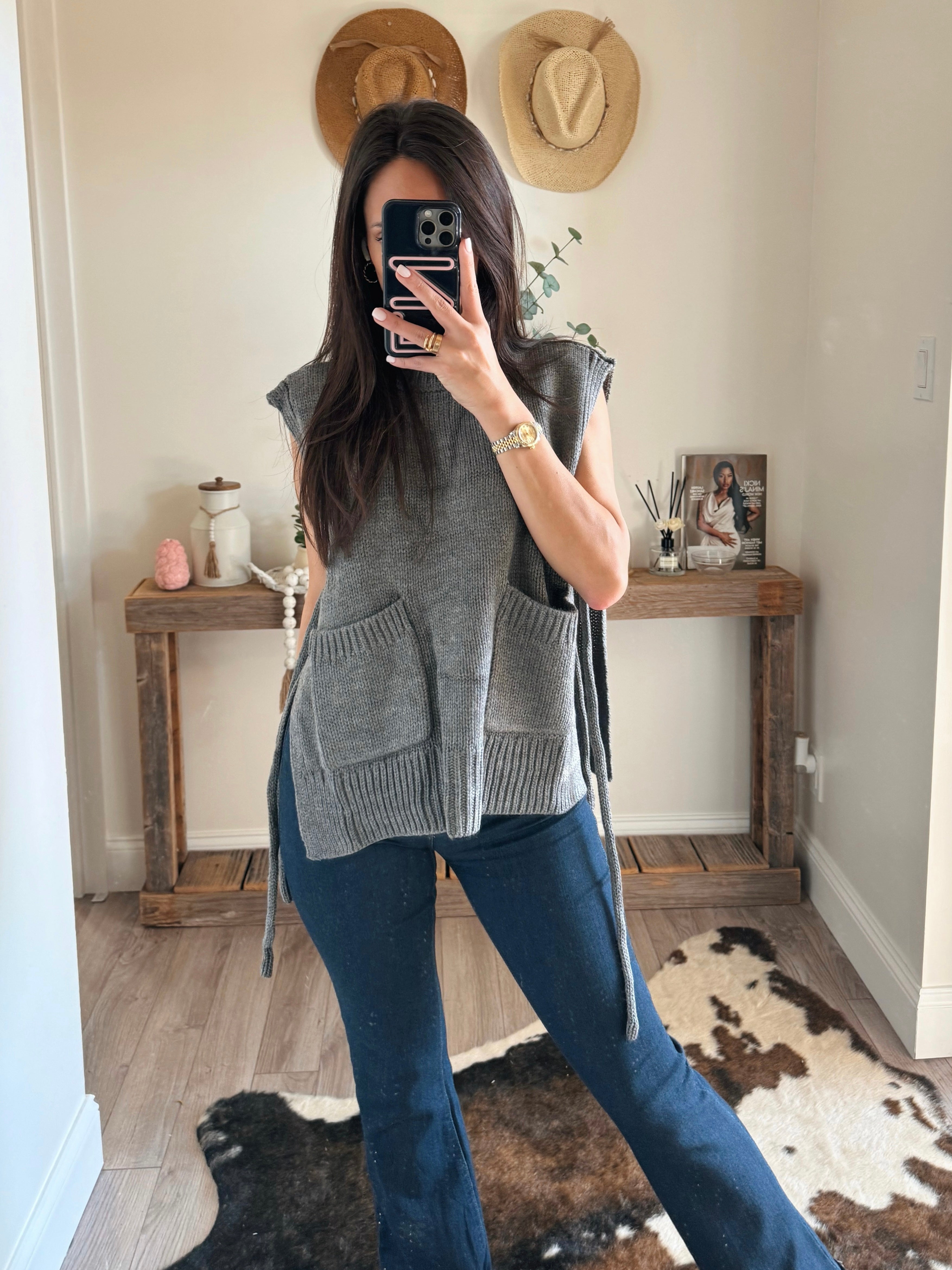 SLEEVELESS POCKET DETAIL TIE ON THE SIDE SWEATER