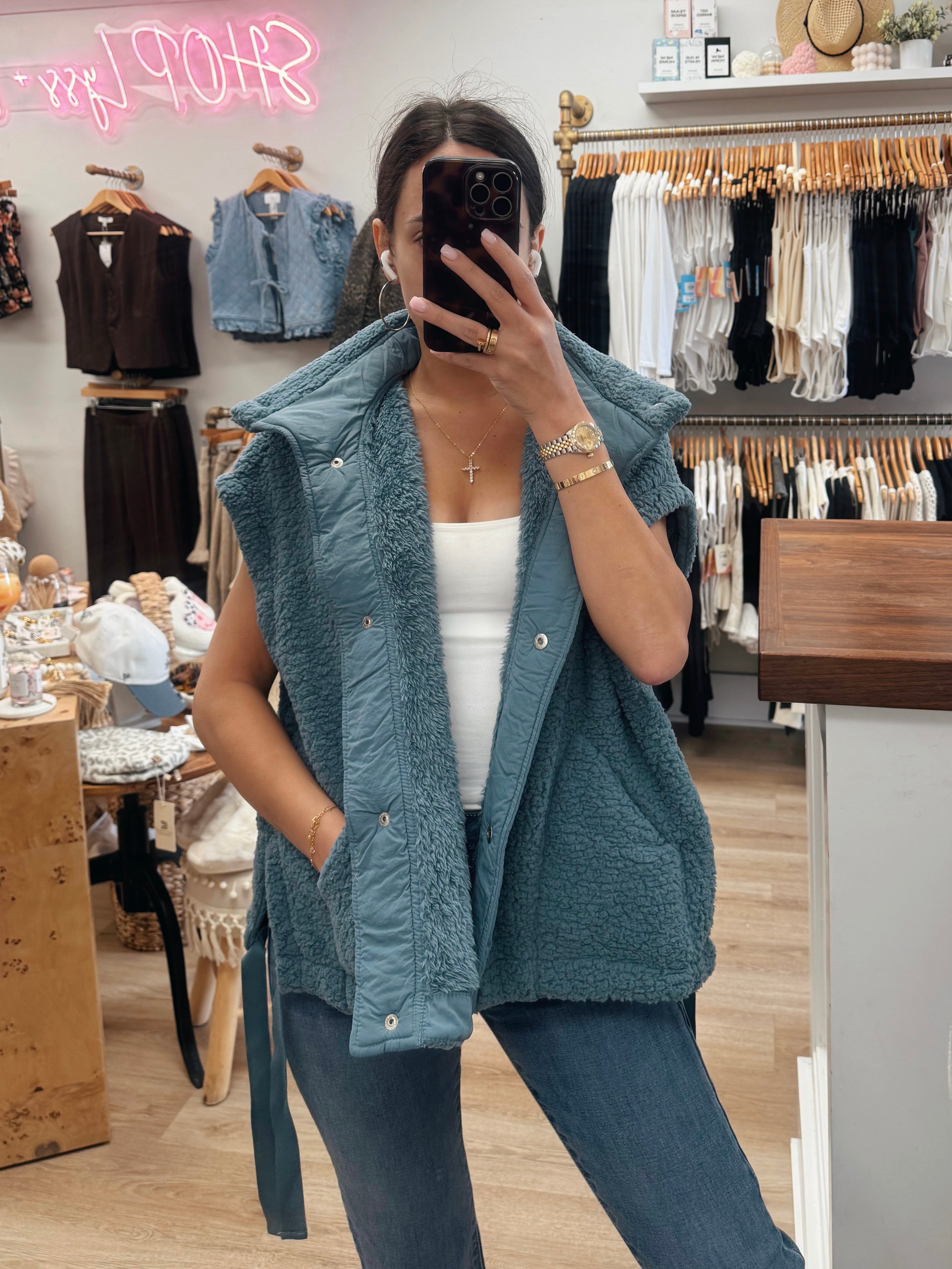 Blue Teddy Fabric Utility Vest (Pictured in Size M/L)