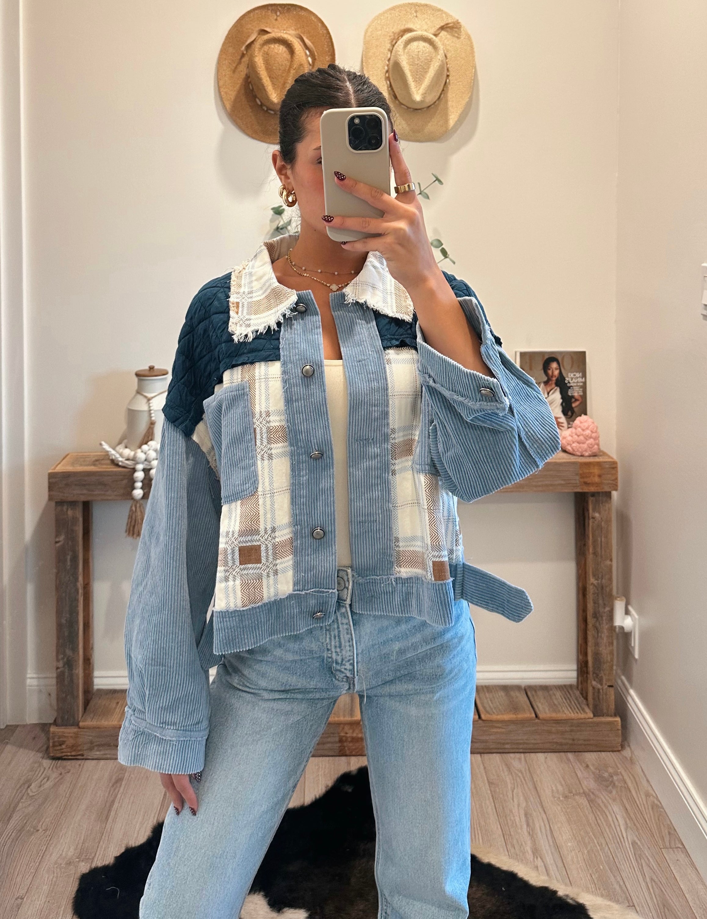 Sky Blue Contrast Quilt Corduroy Jacquard Button Down