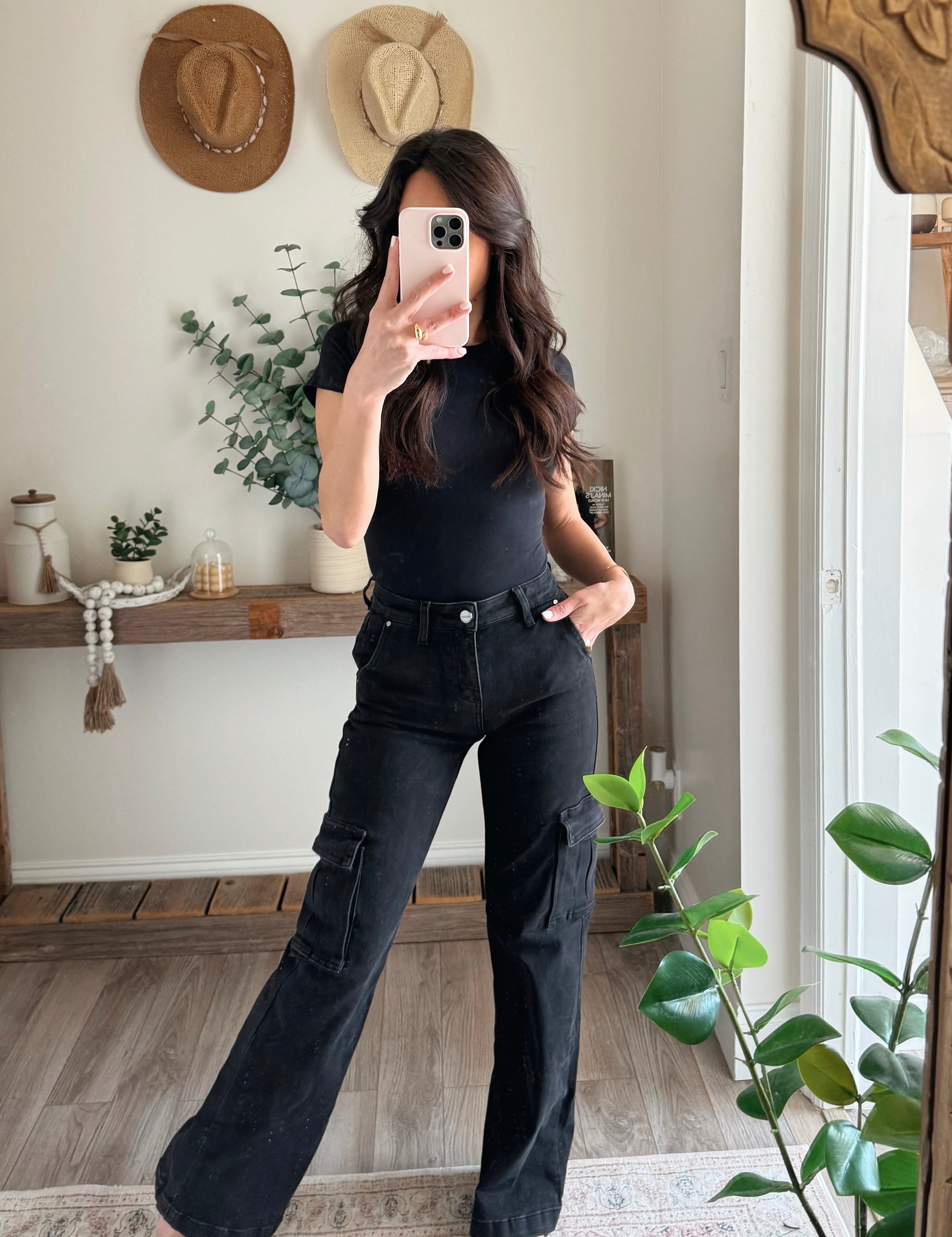 Black Ribbed Knit Slit T Shirt Midi Dress