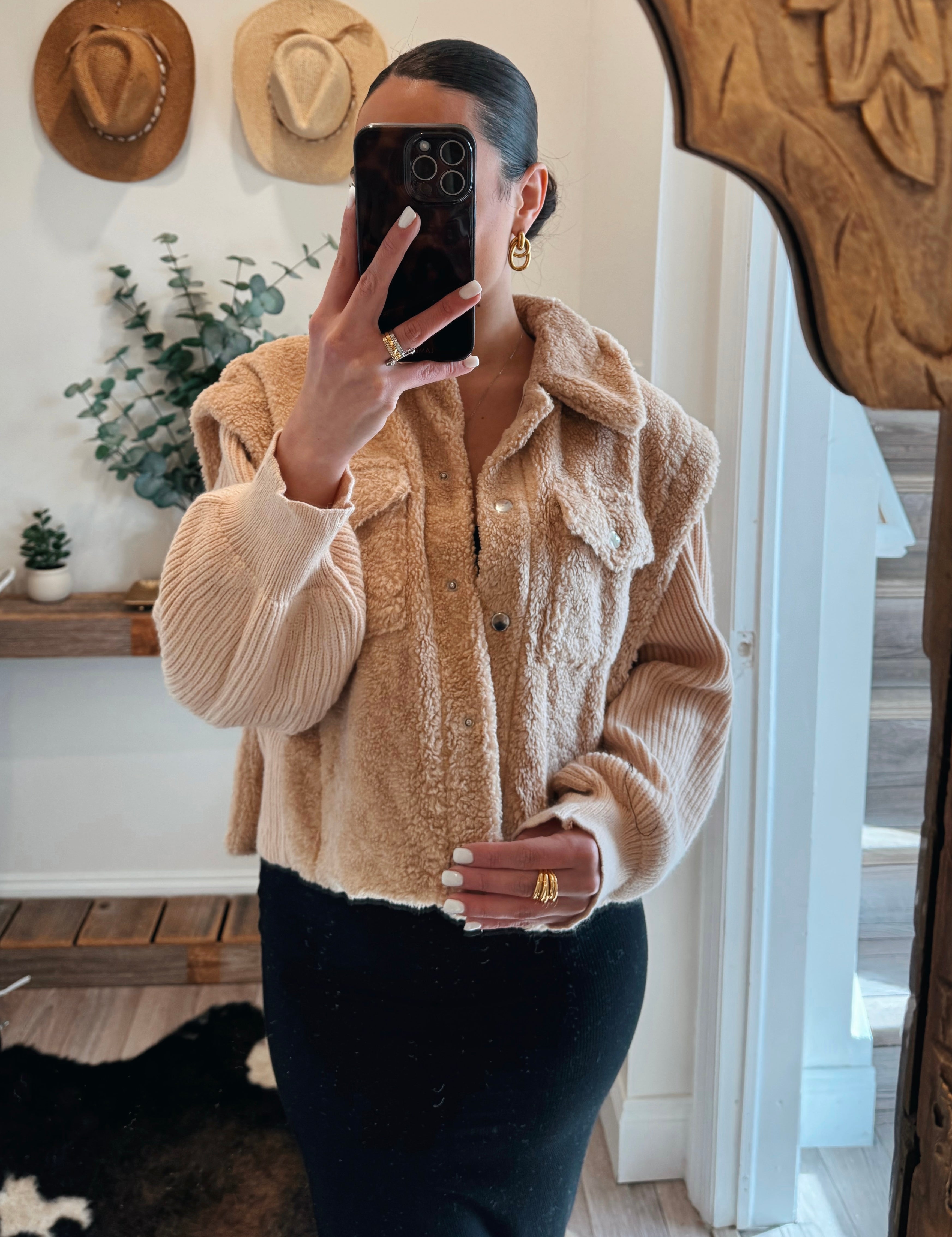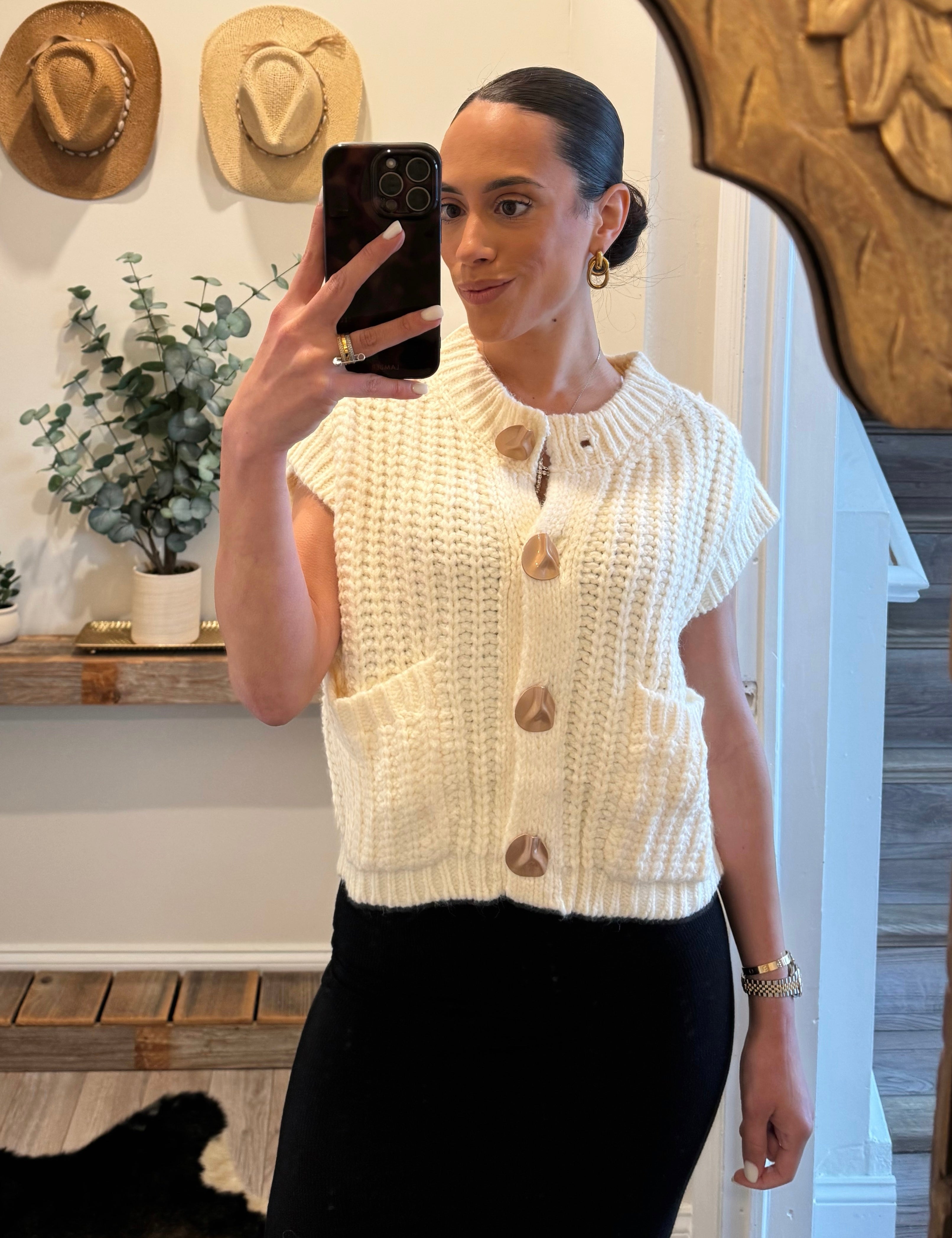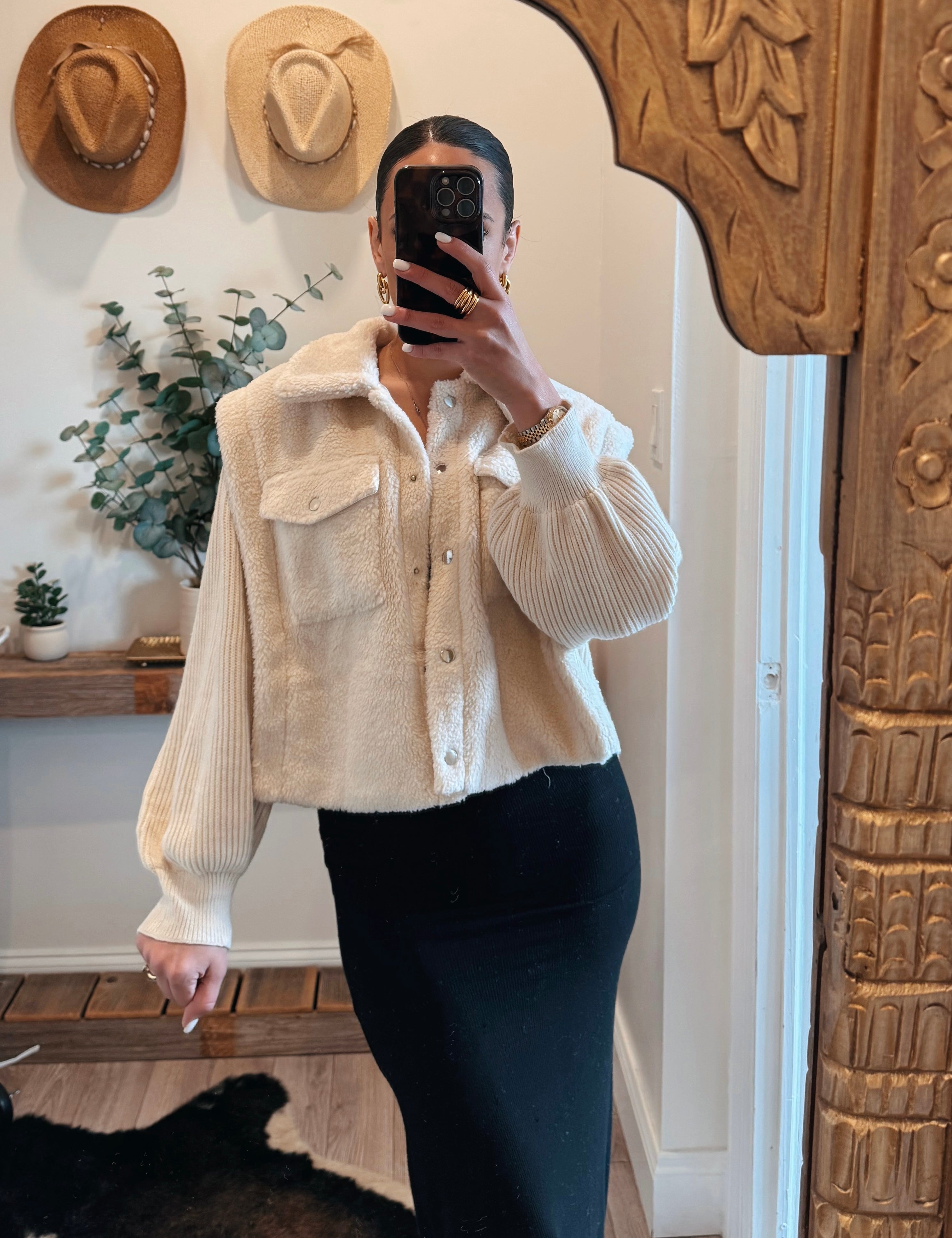 Cream Balloon Sleeve Jacquard Stud Detail Knit Jacket