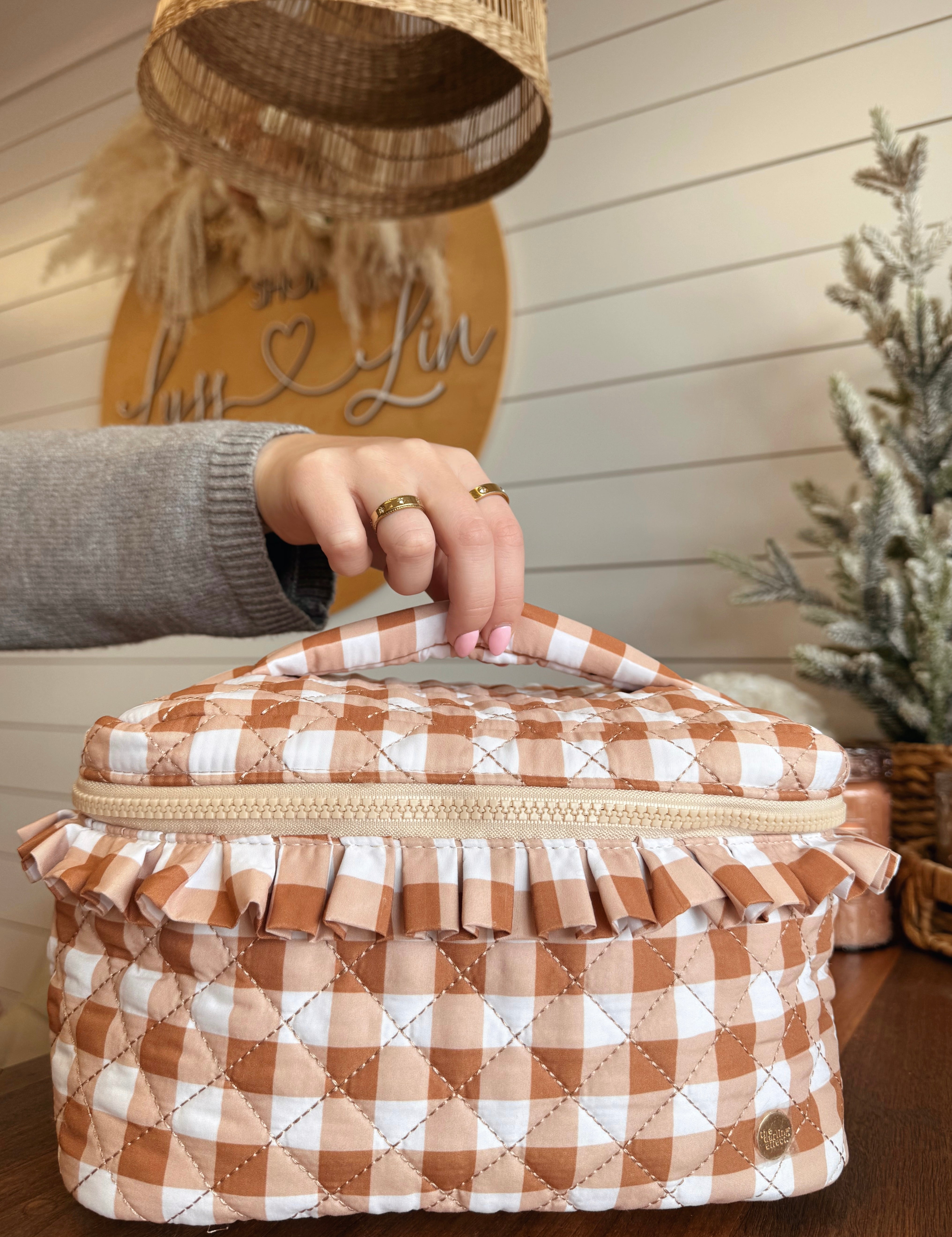 Glam & Go Quilted Cosmetic Bag-Maple Gingham