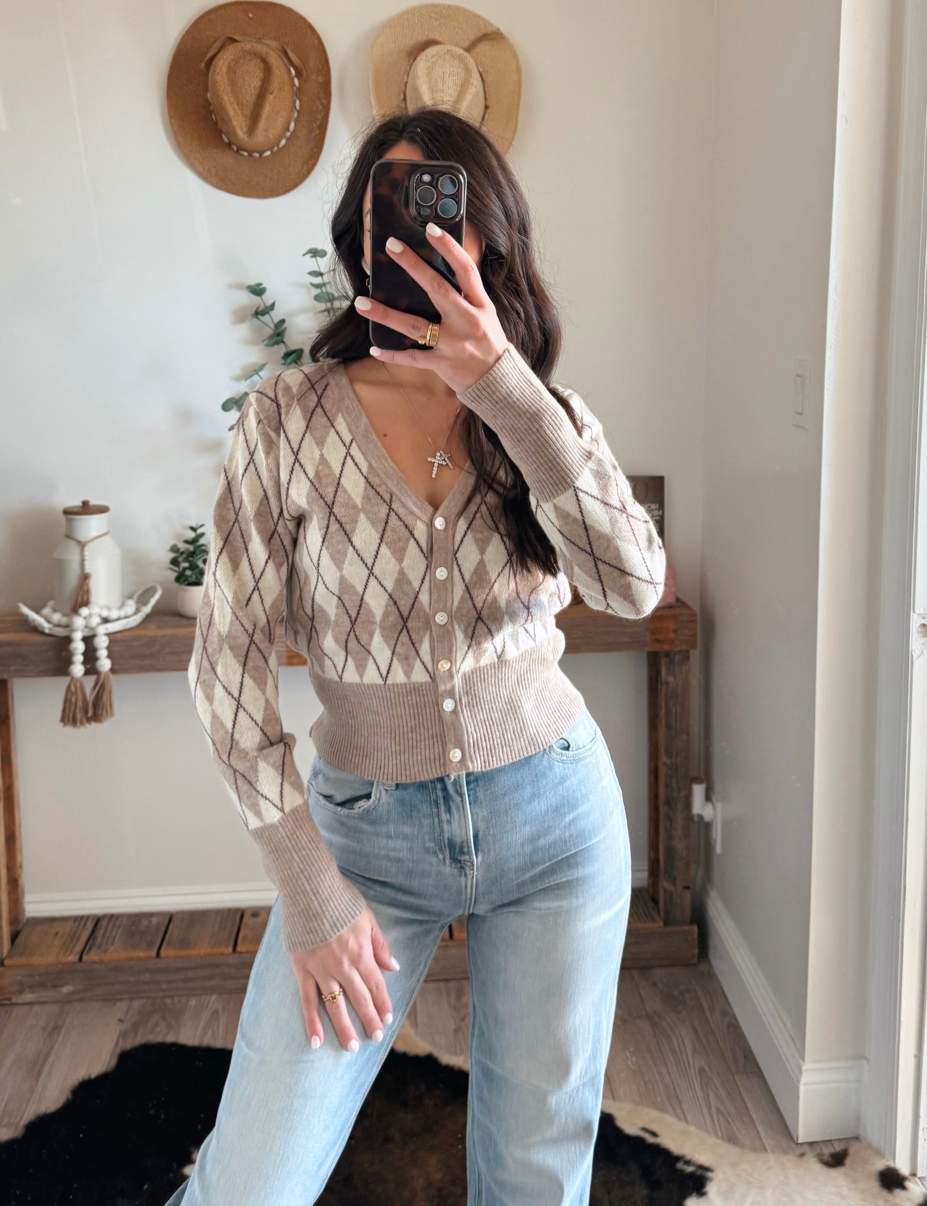 Argyle Pattern Sweater V-Neck Cardigan