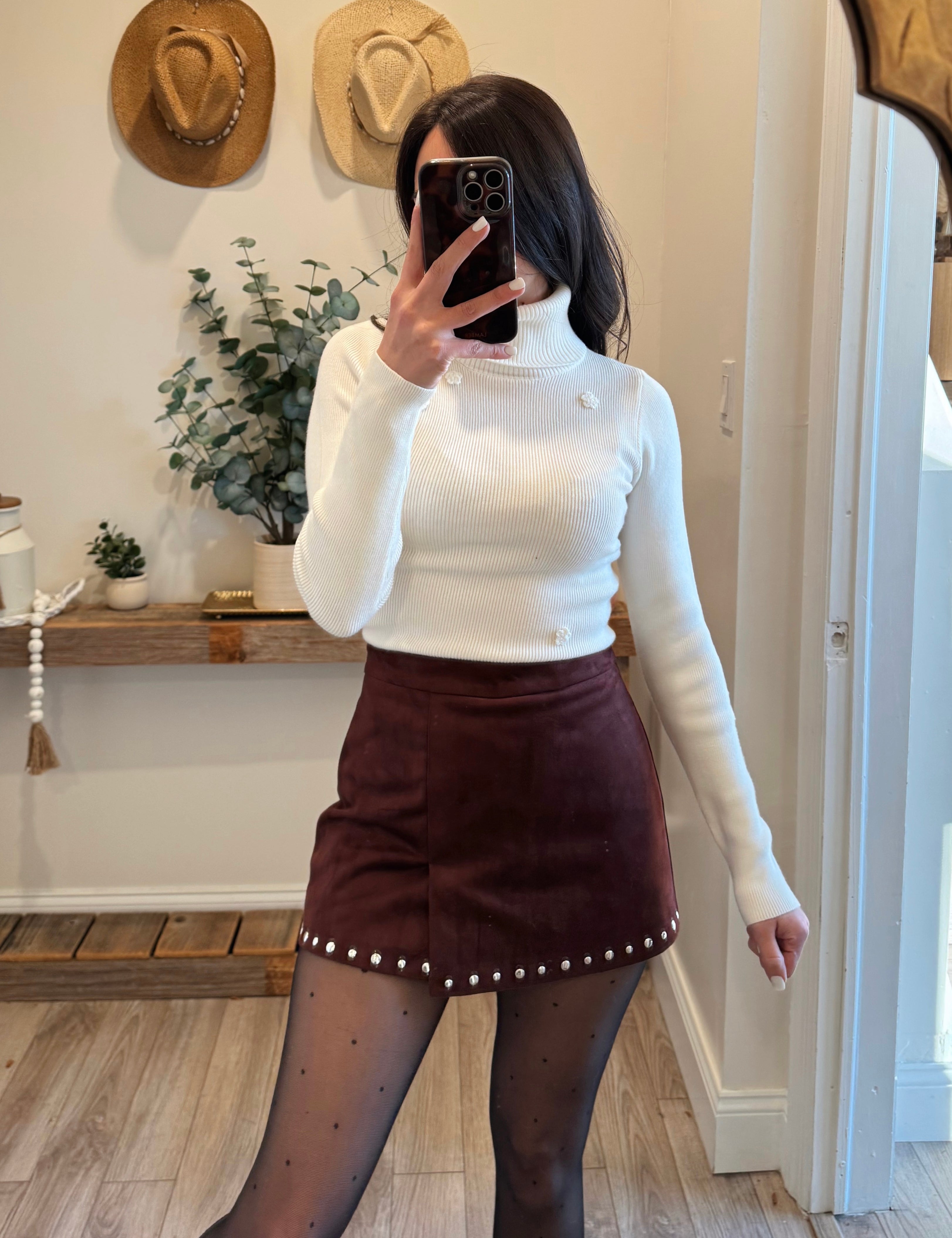 Cherry Suede Studded Mini Skort