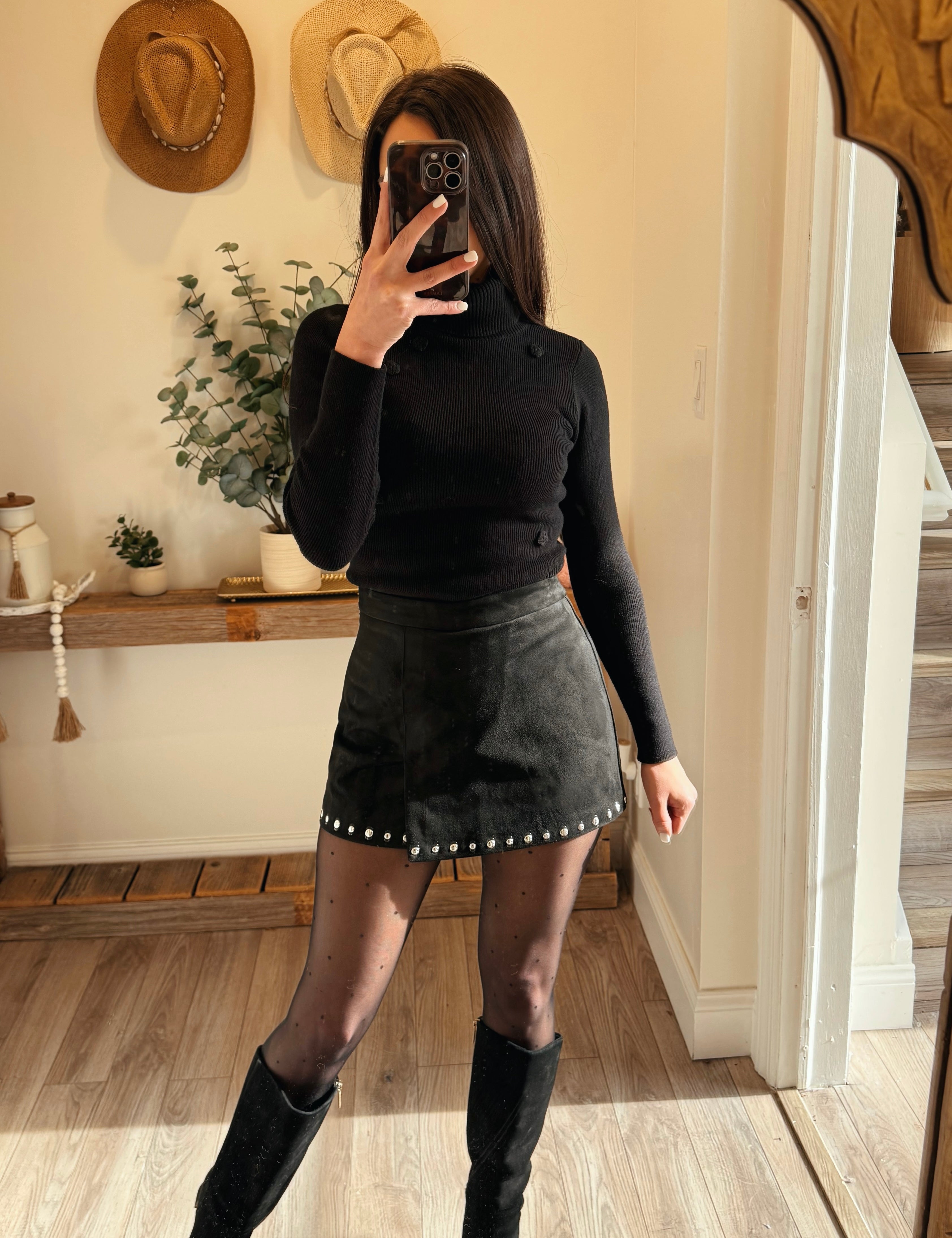 Black Suede Studded Mini Skort