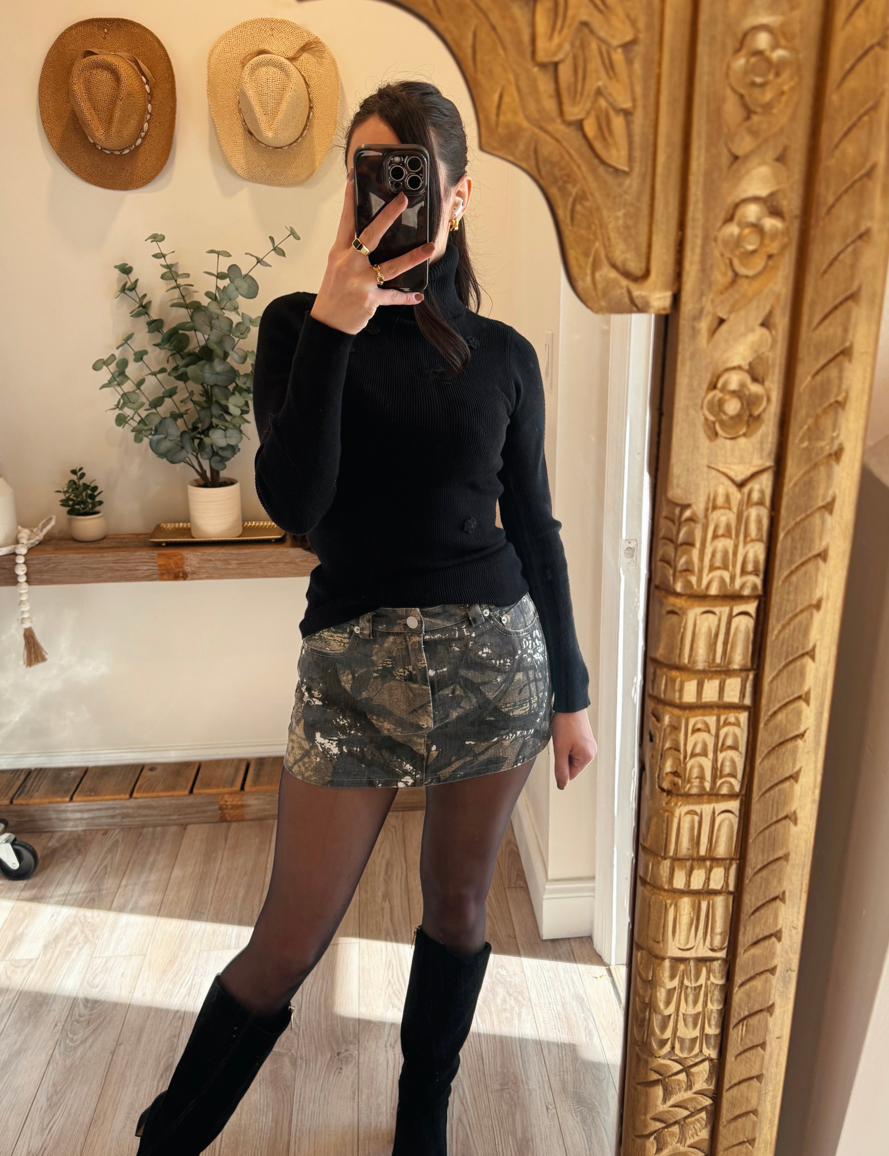 Camouflage Mid-Rise Belt Hoop Waist Mini Skort