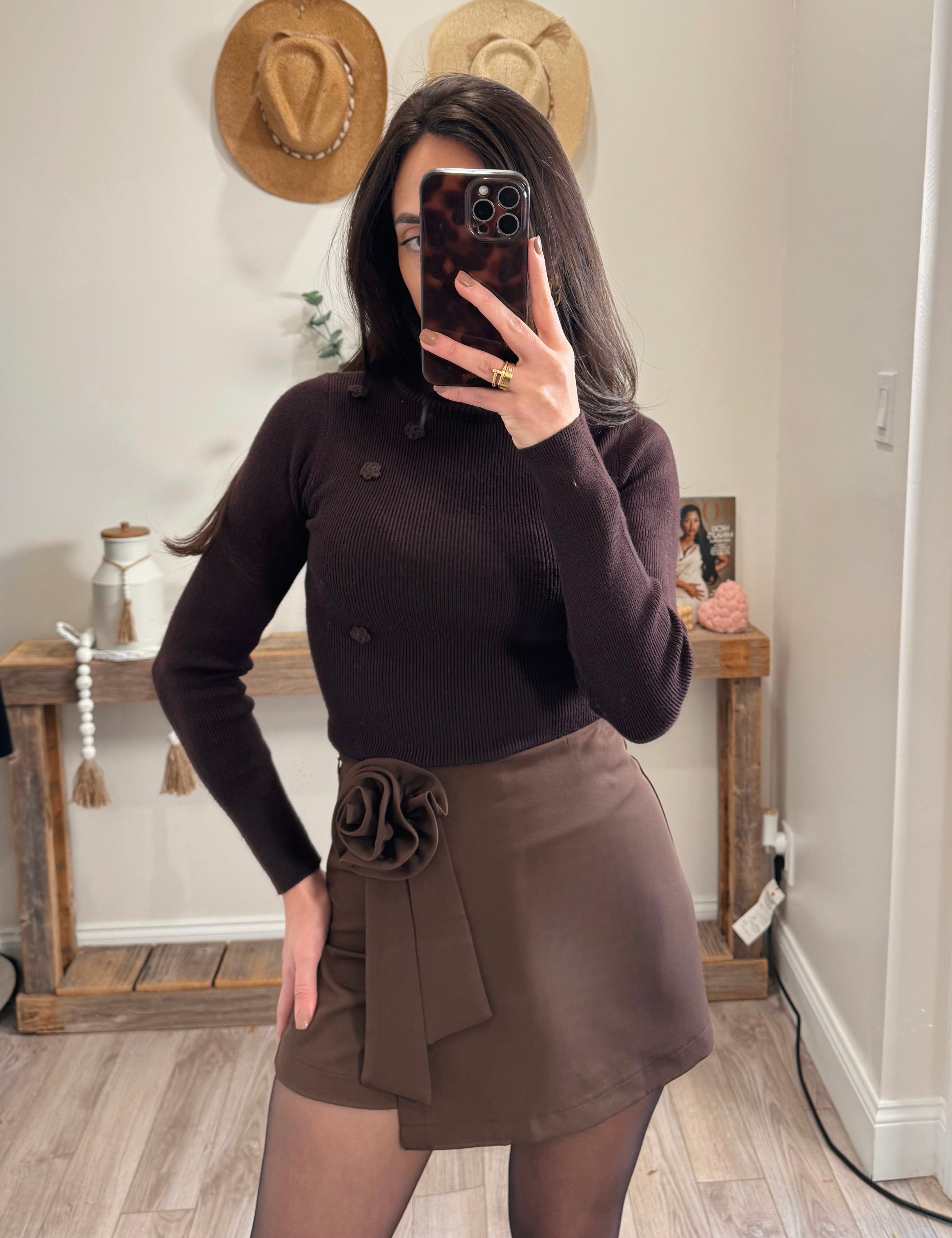 Chocolate Rosette Detail Wrapped Skort