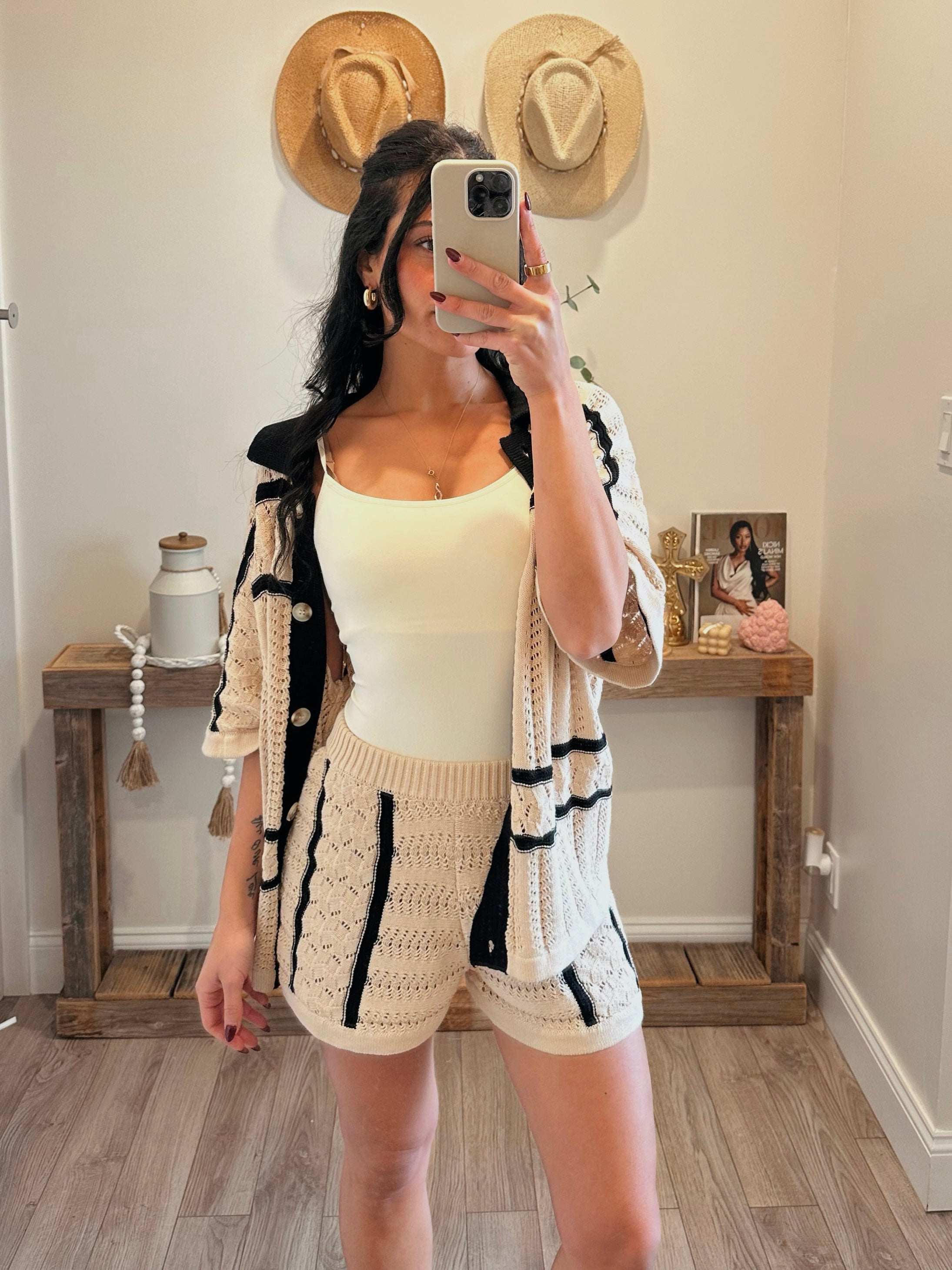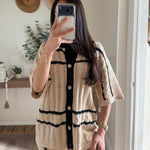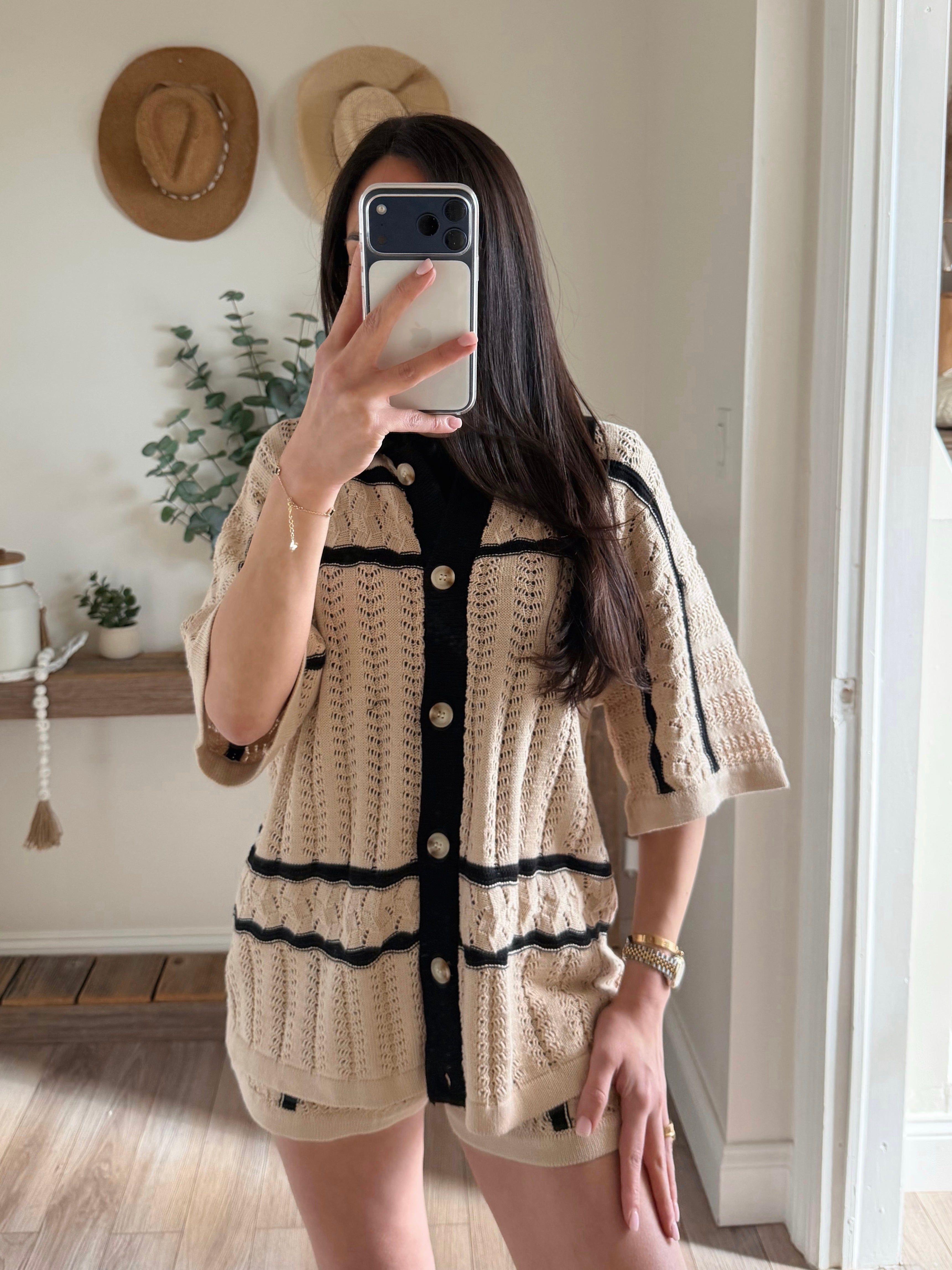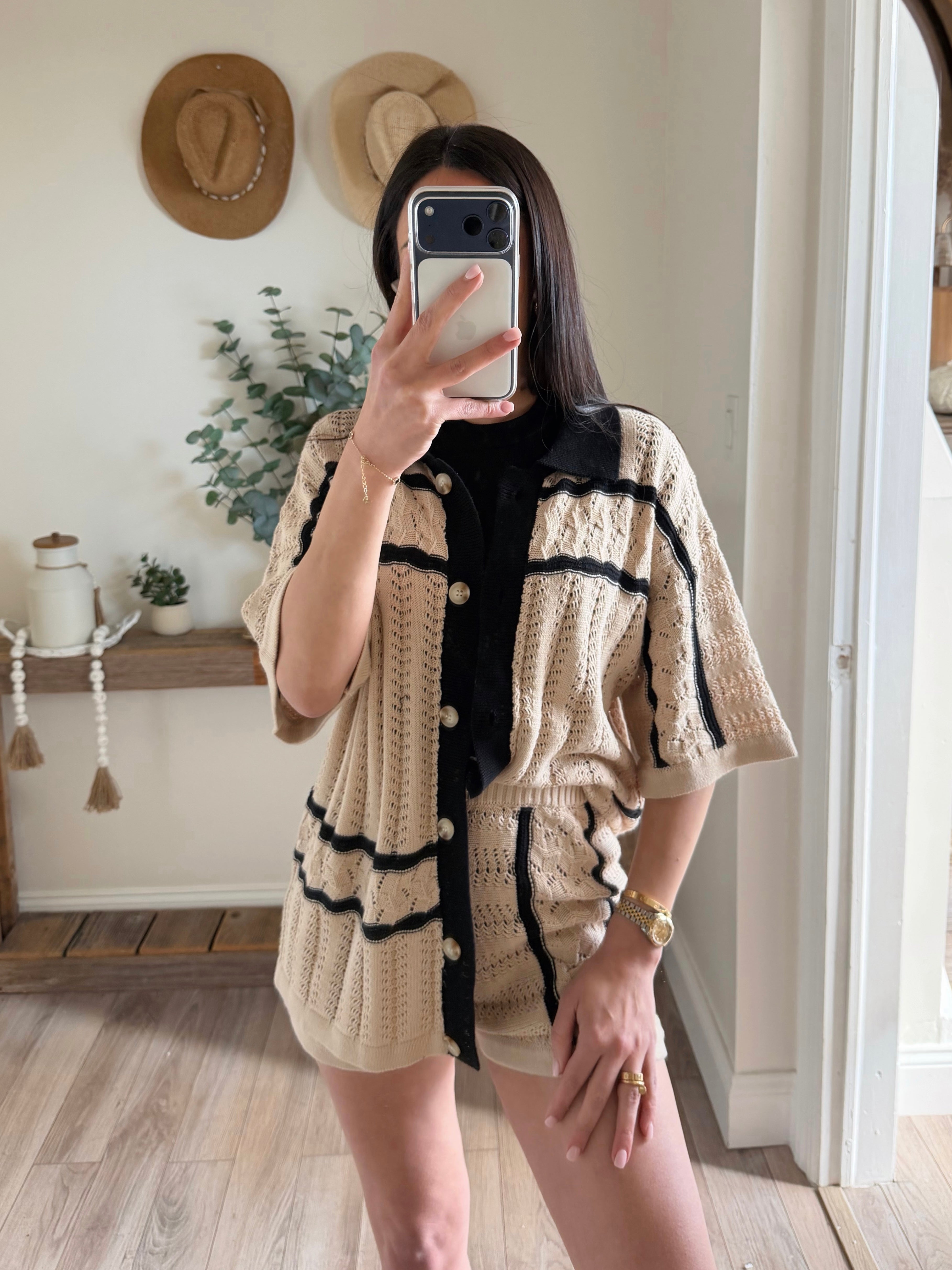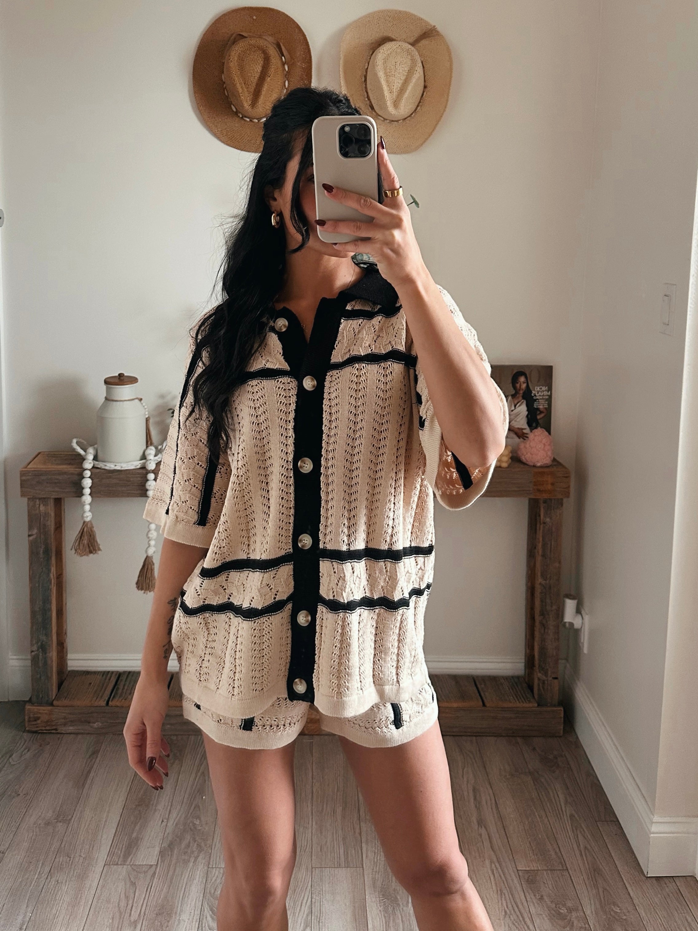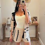 Natural Striped Pointelle Crochet Shorts