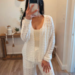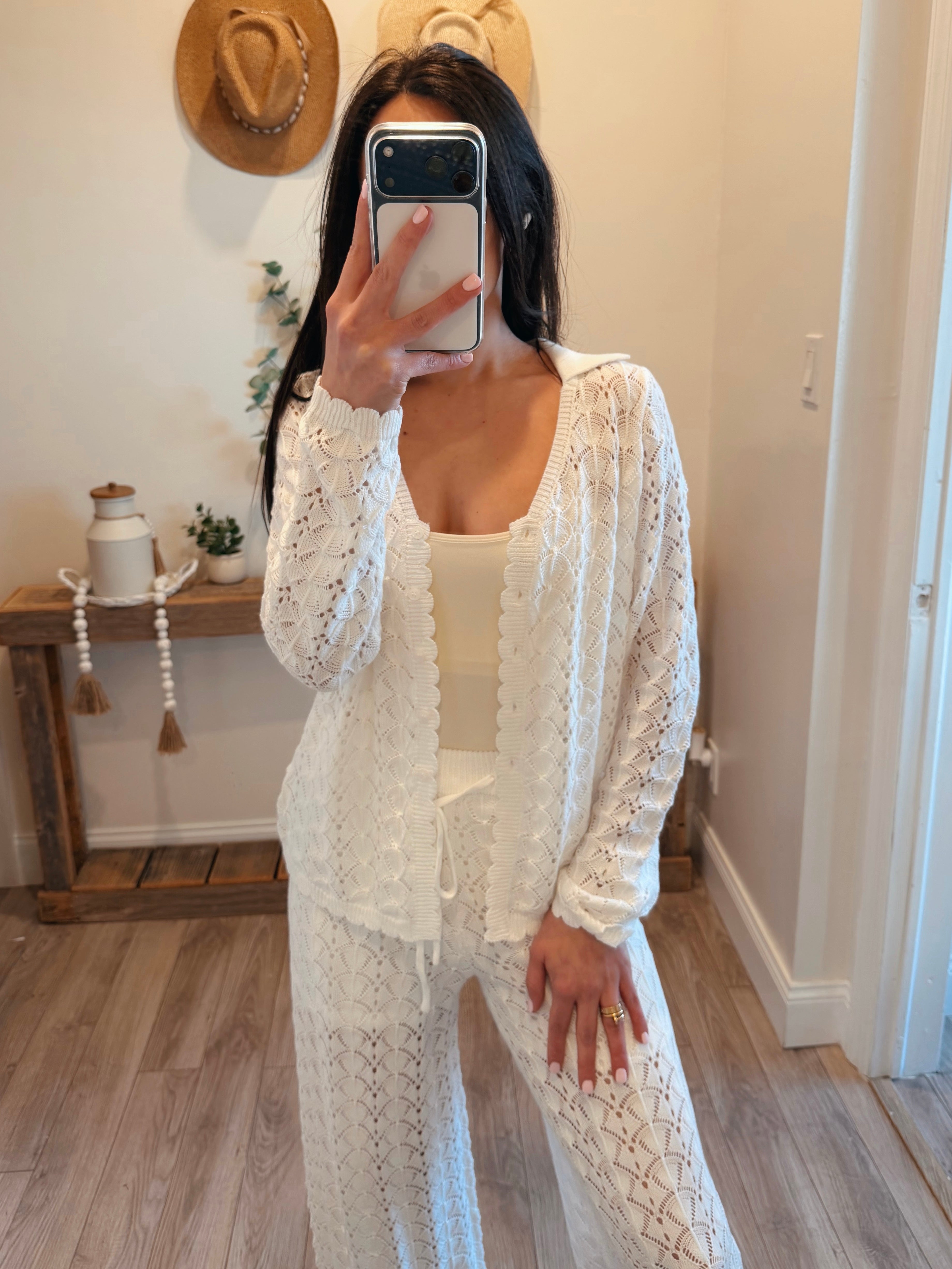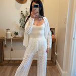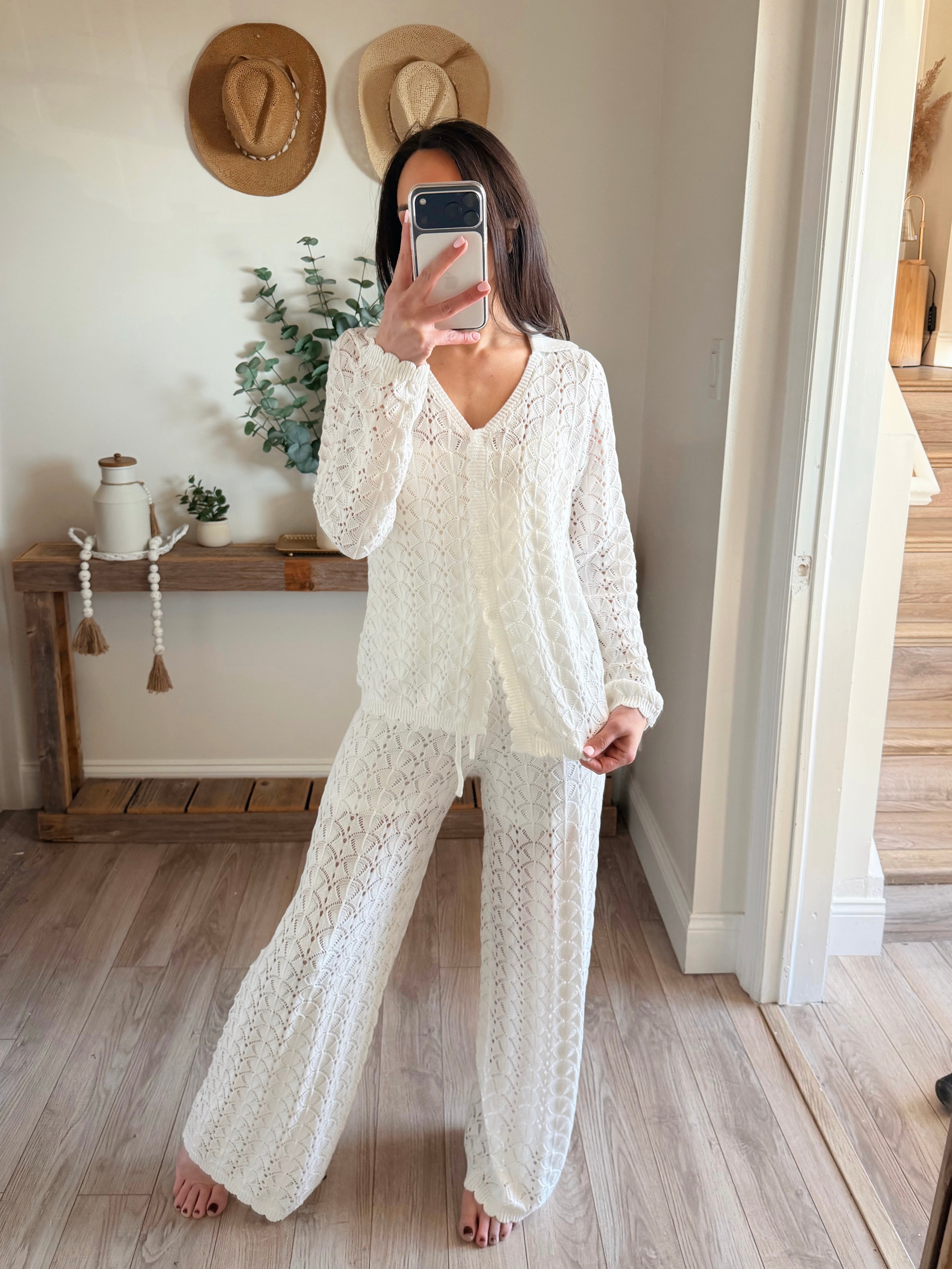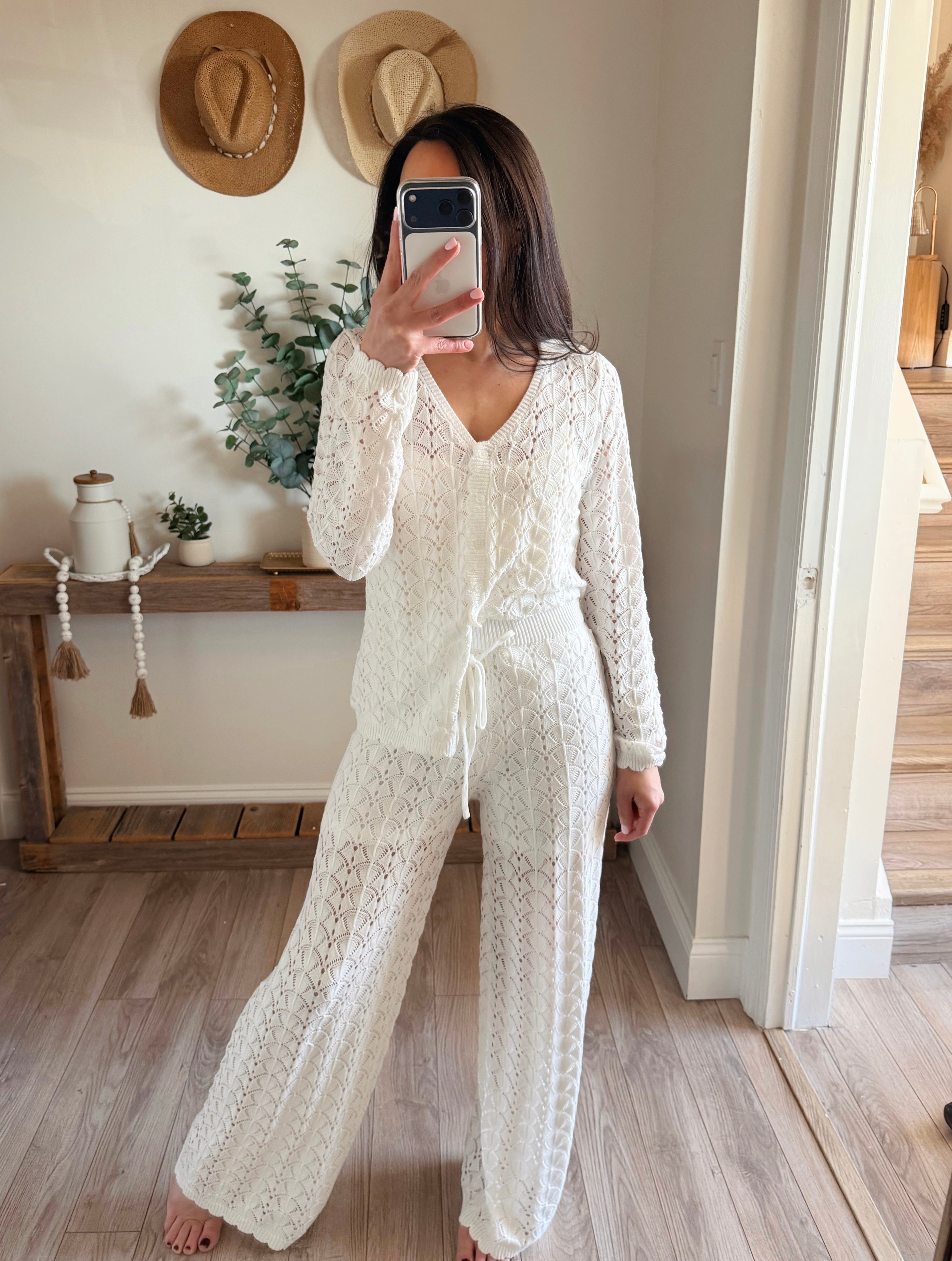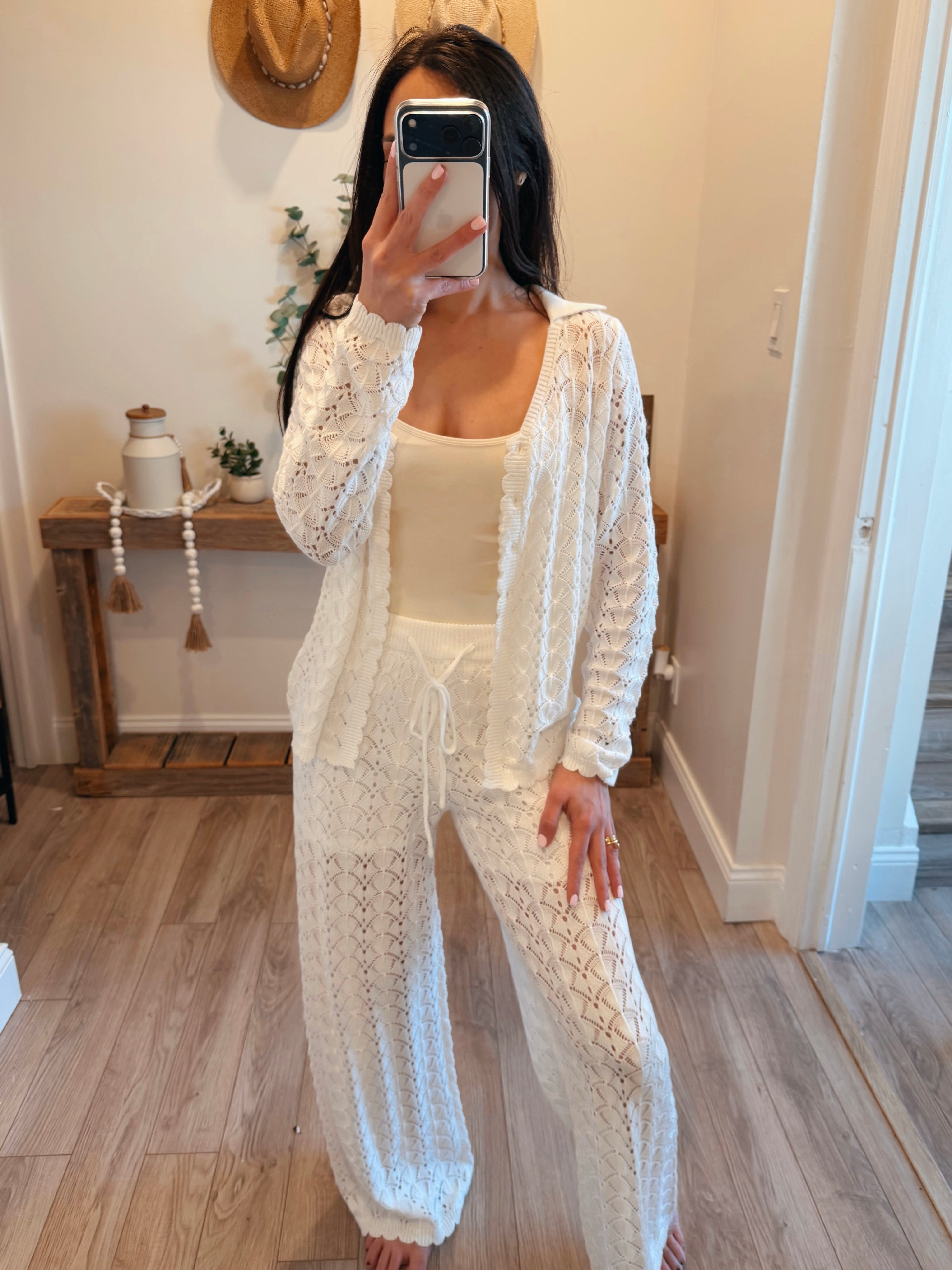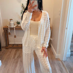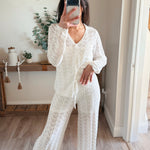 Pointelle Crochet-Knit Drawstring Sweater Pants