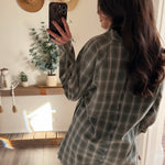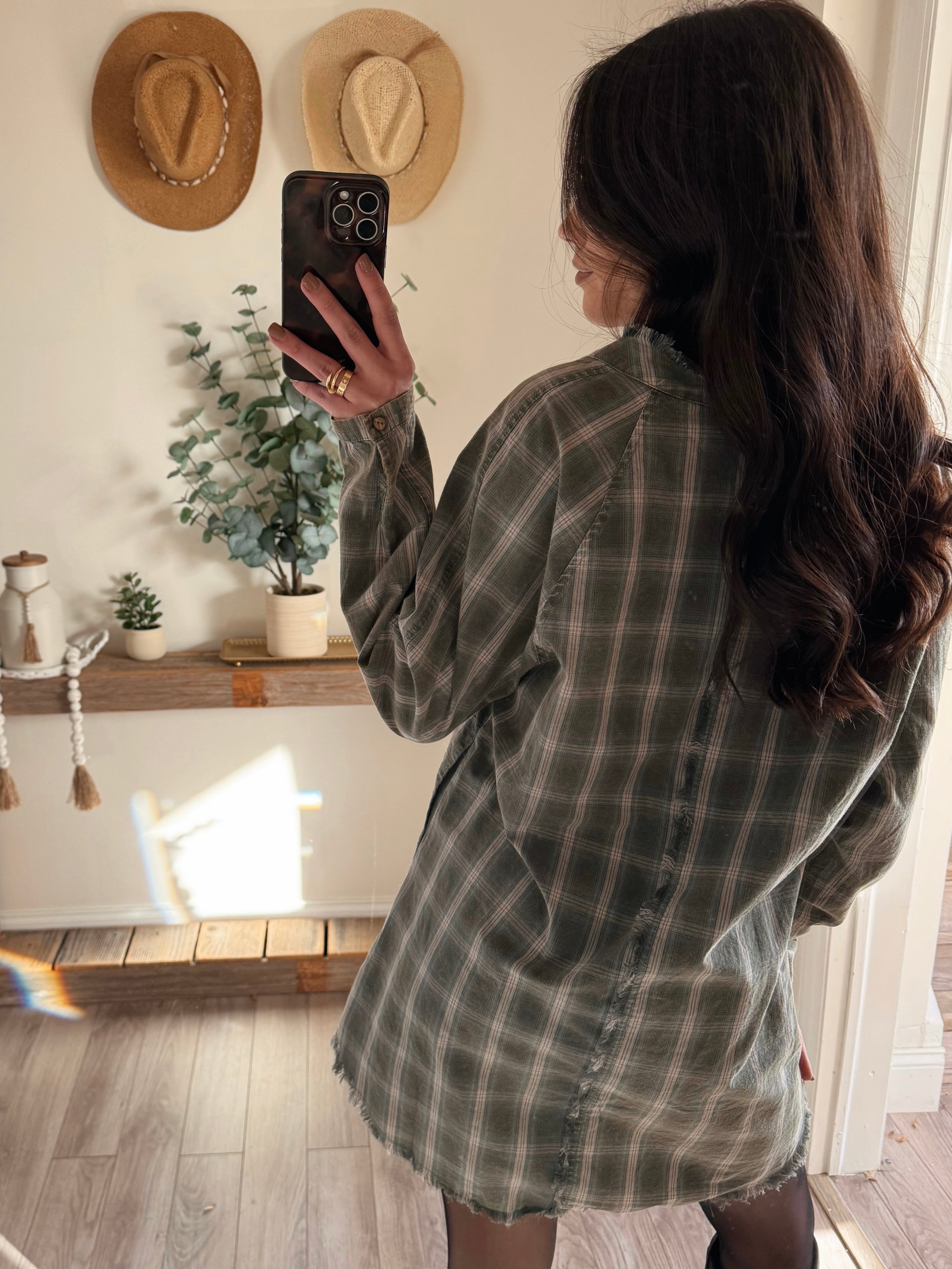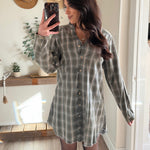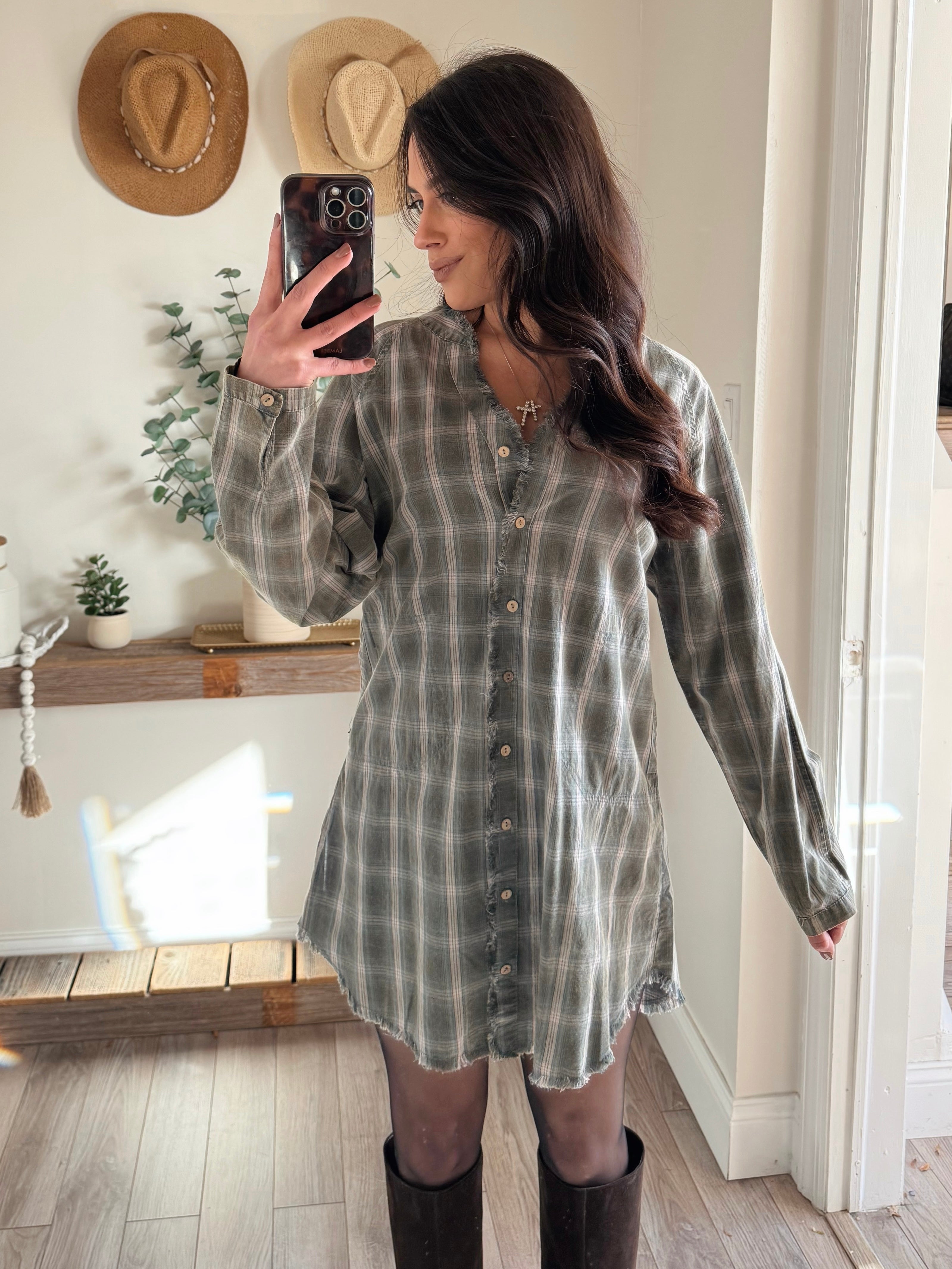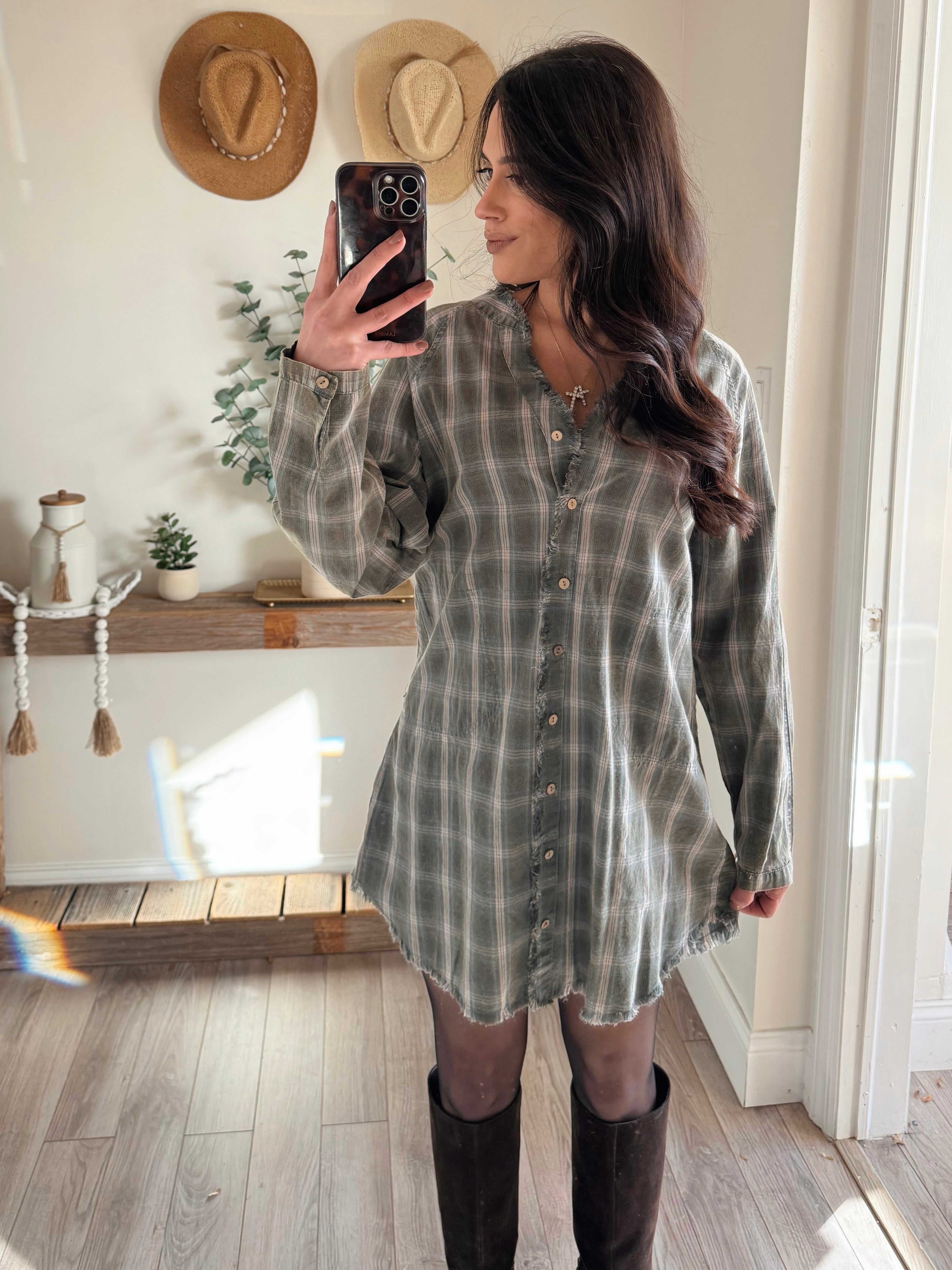 Pine Flannel Raw-Edge Mini Shirt Dress