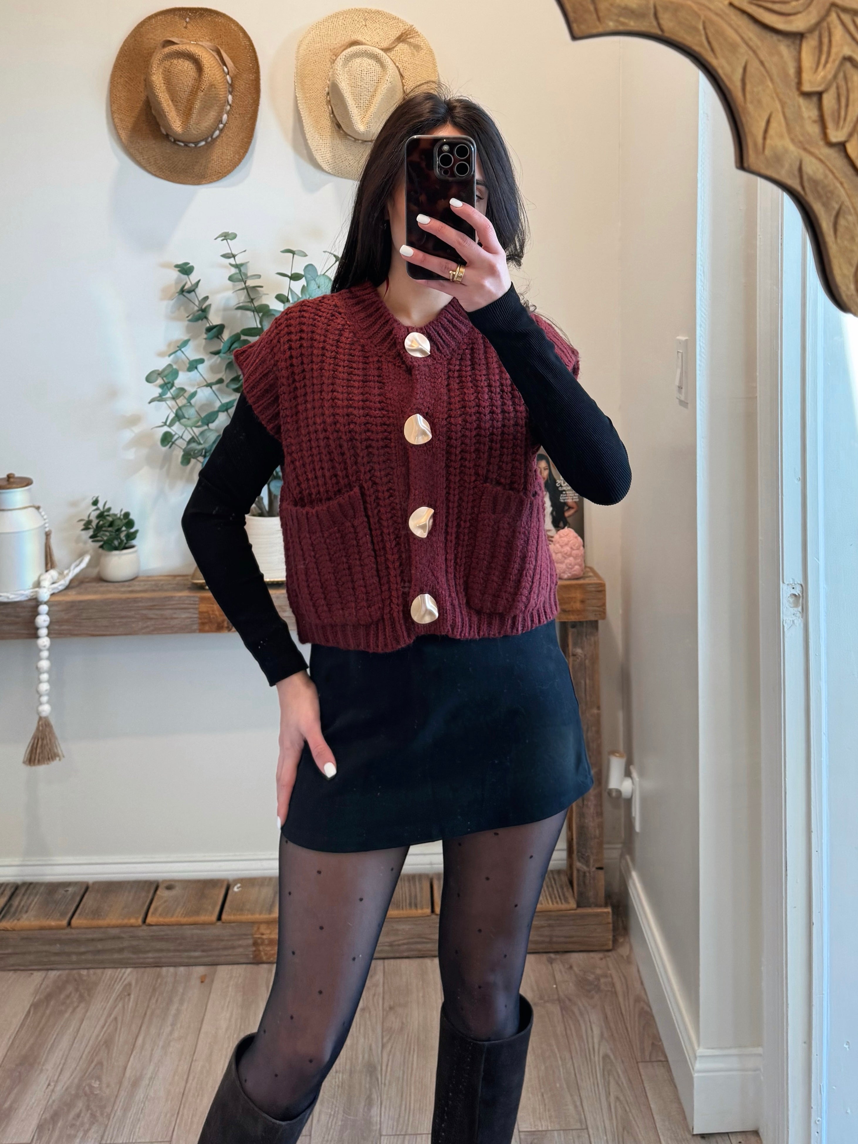 Wine Chunky Knit Button-Front Vest Top