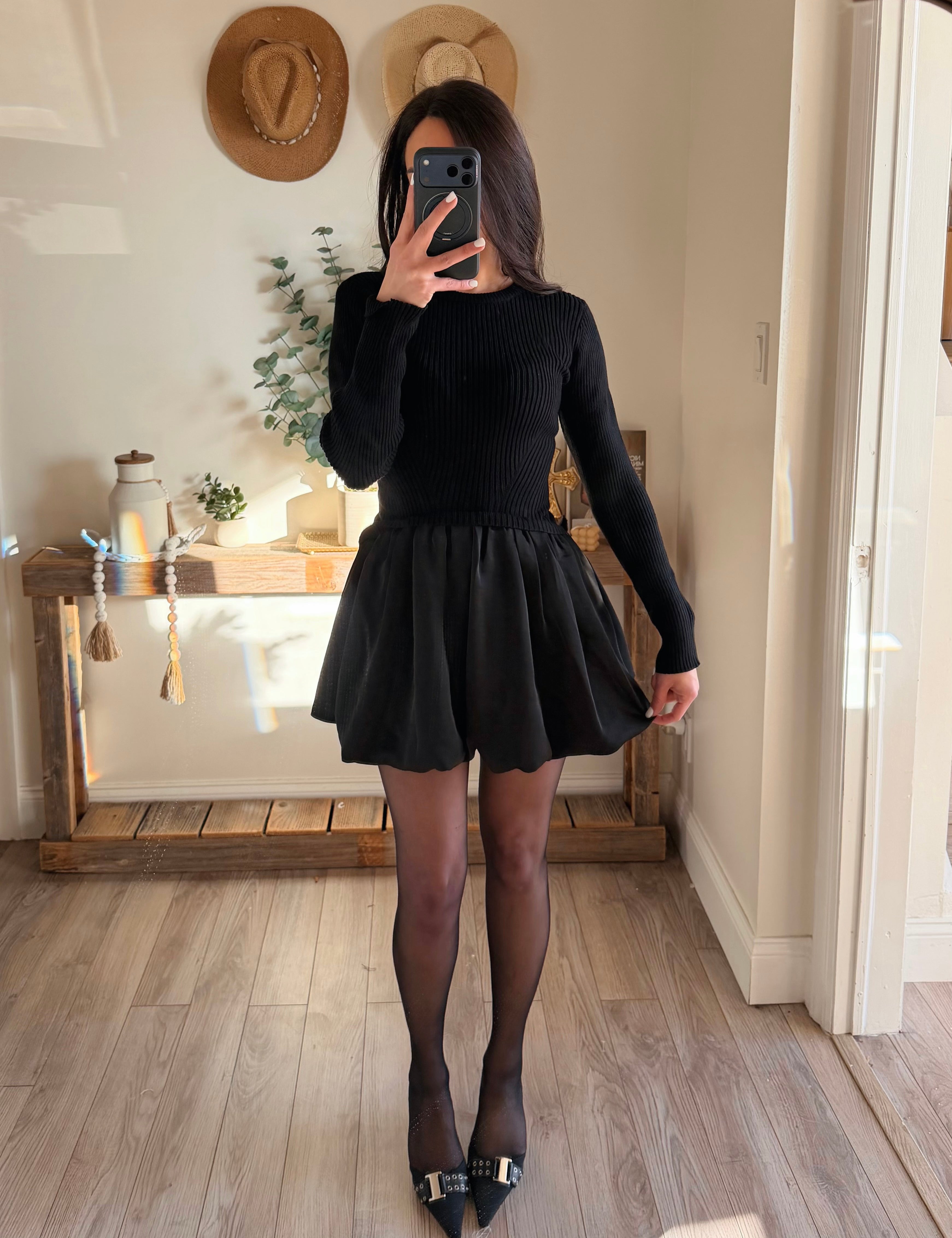 FINAL SALE Black Sweater Bubble Hem Combo Dress