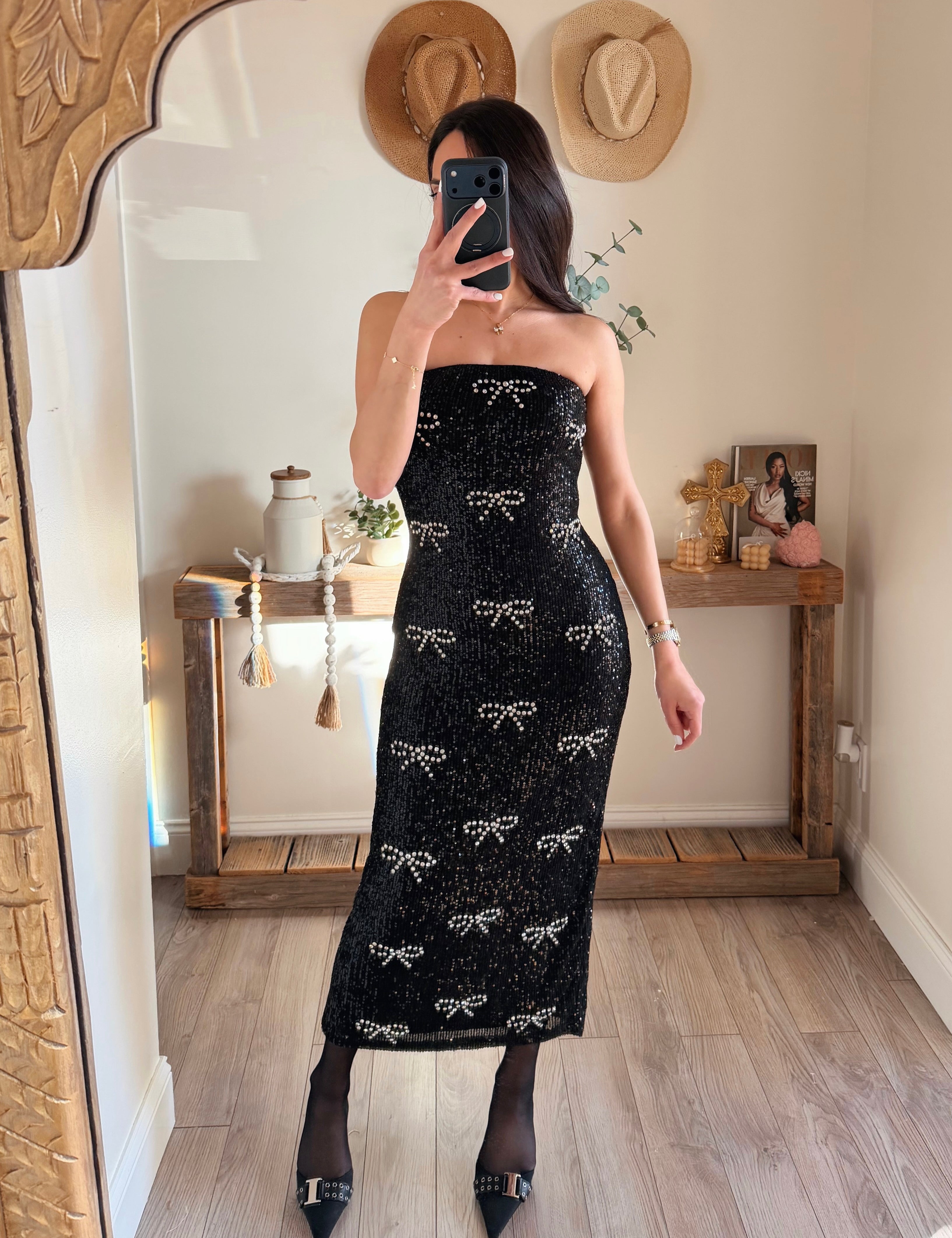 FINAL SALE Sequin Bow Tube Midi Dress