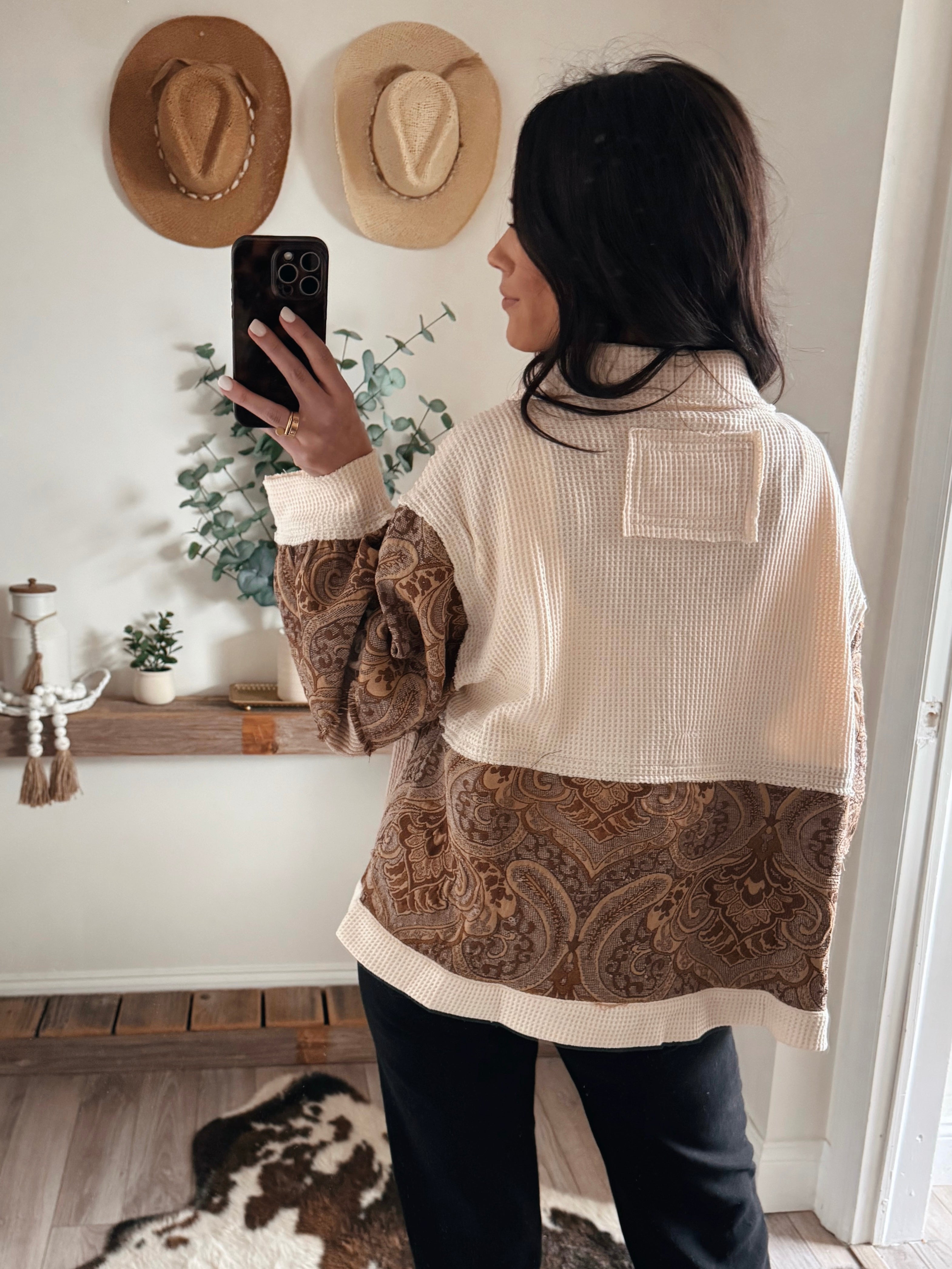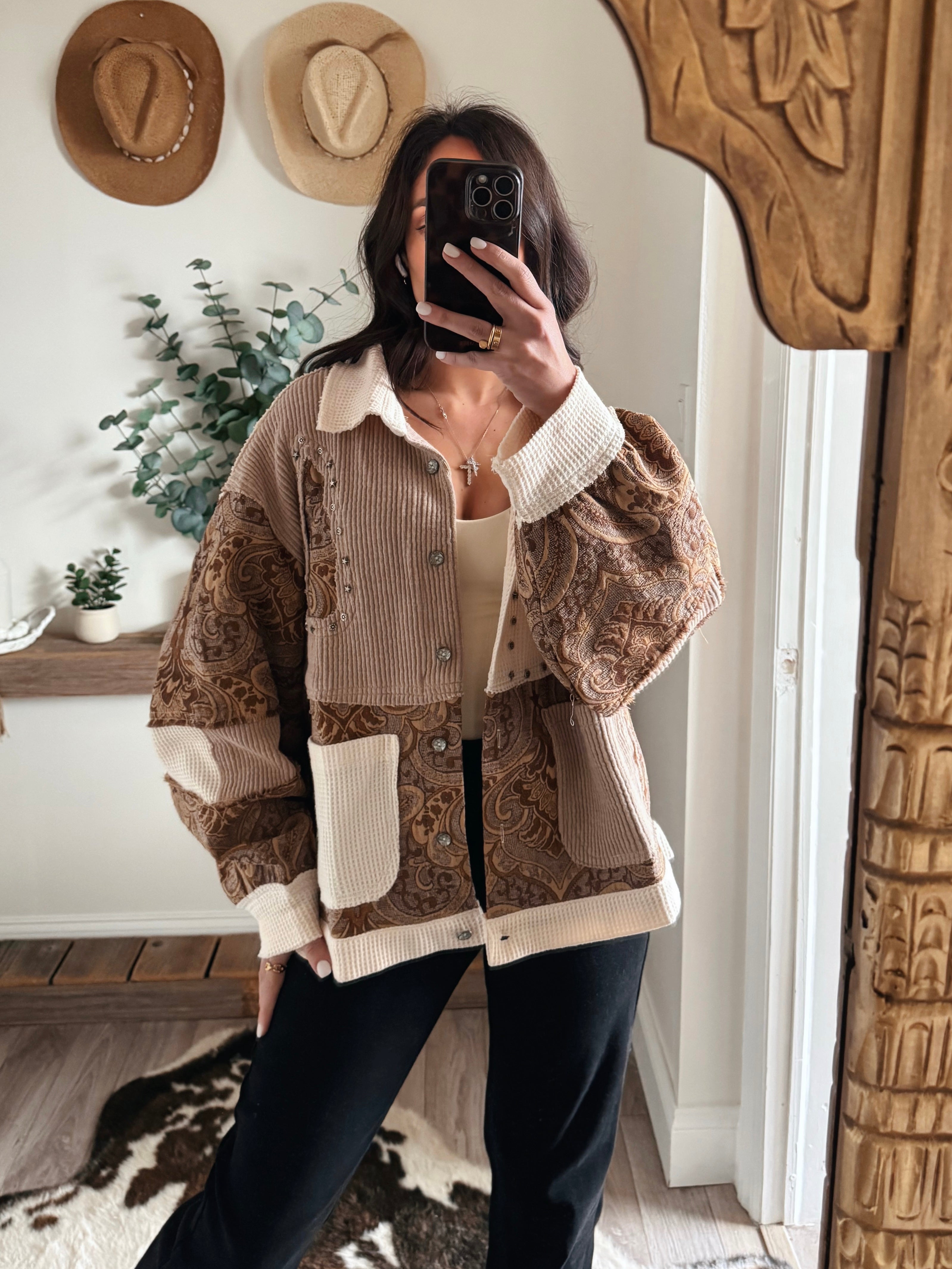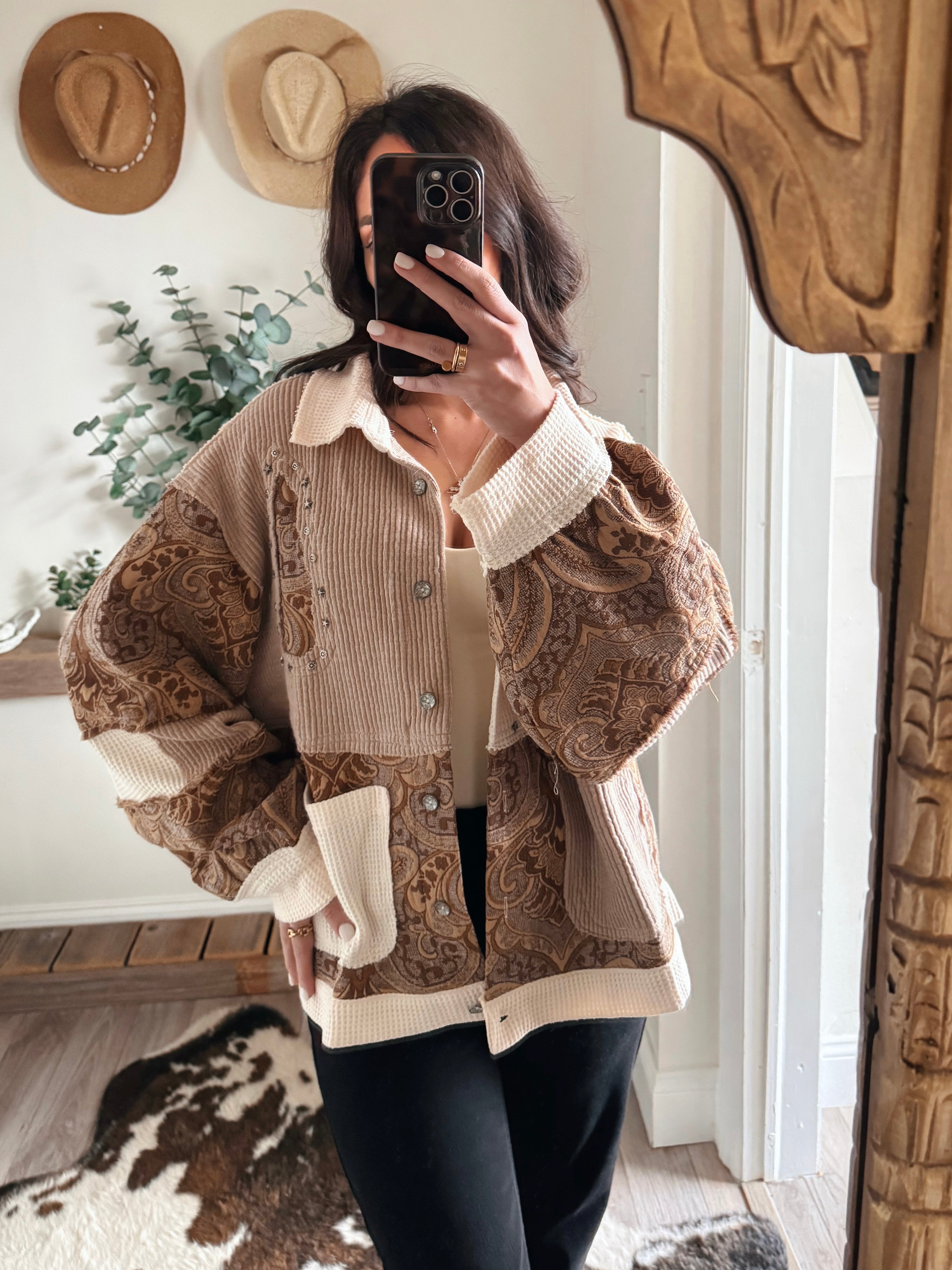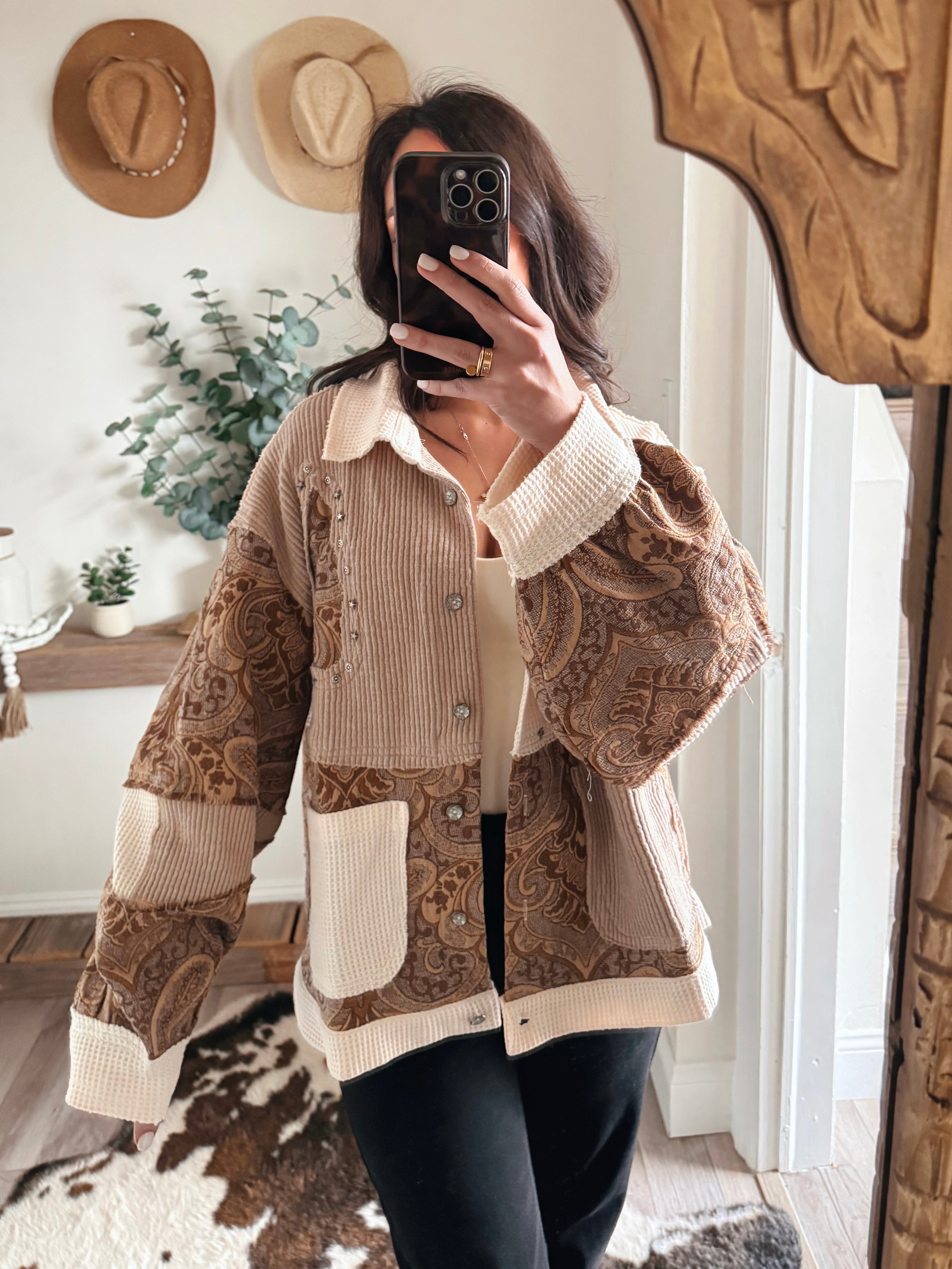 Cream Balloon Sleeve Jacquard Stud Detail Knit Jacket