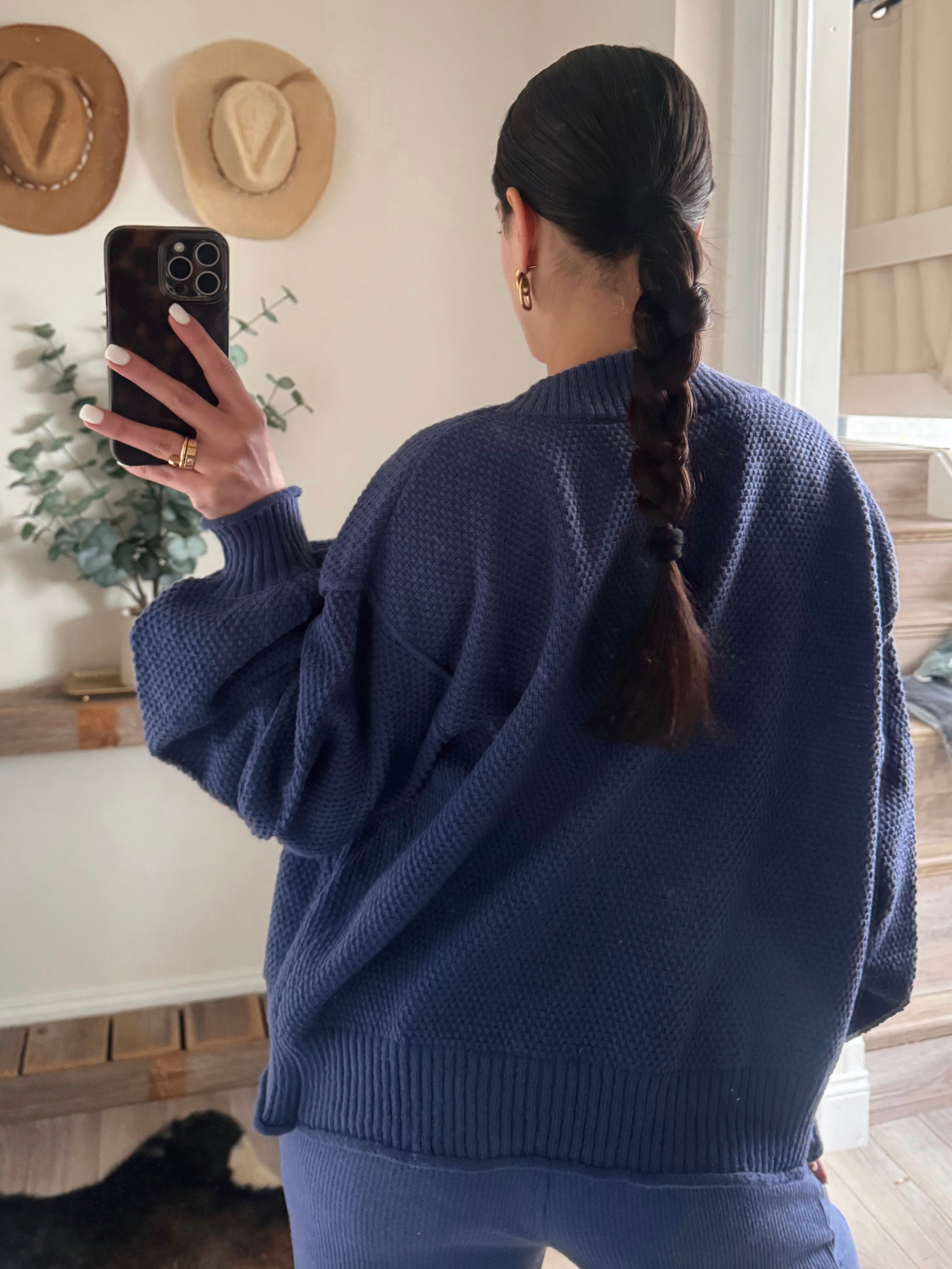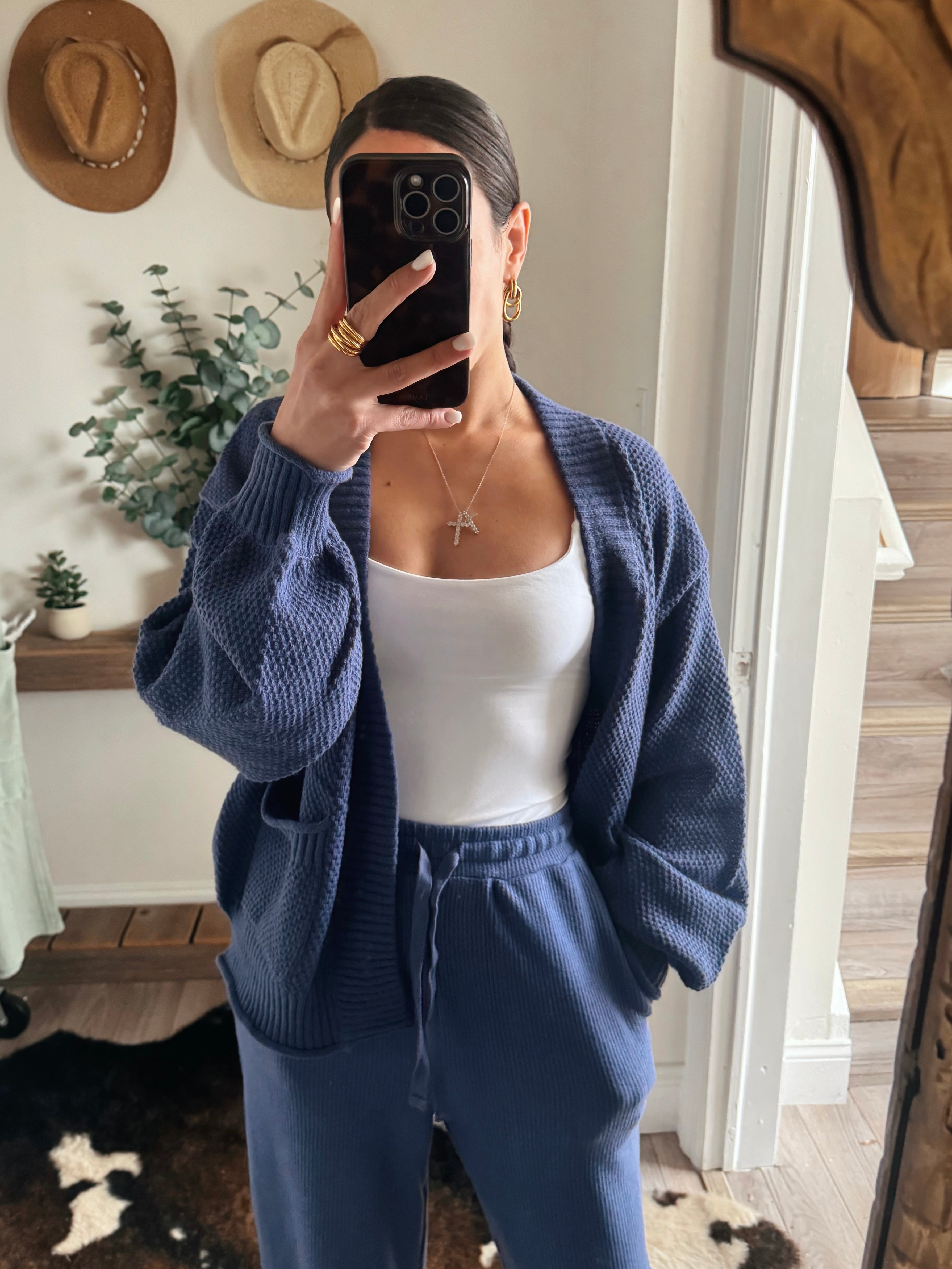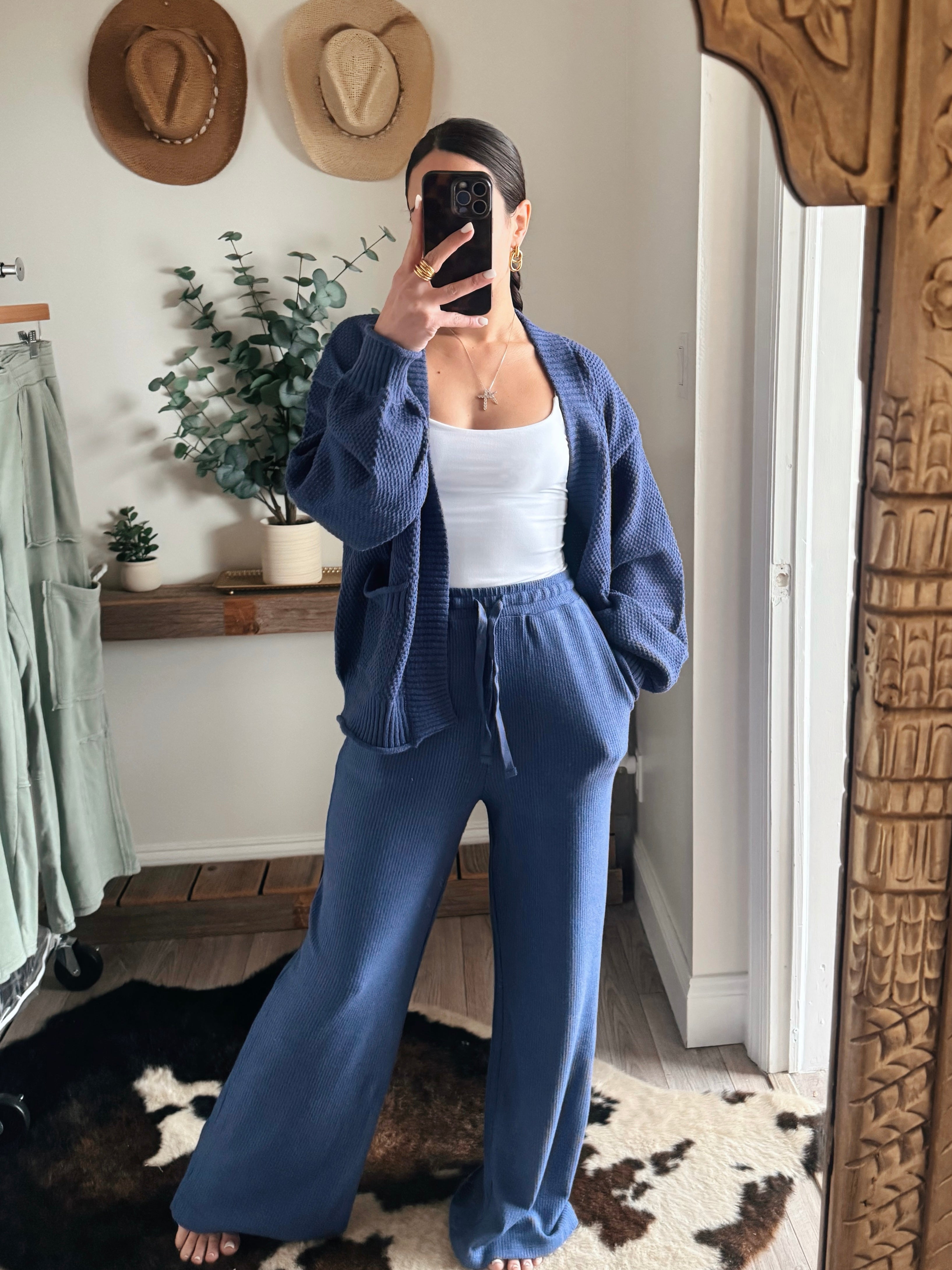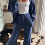 Dusty Indigo Mineral Waffle Wide Leg Sweats