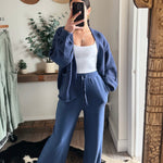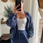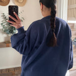 Product Features: Cozy oversized cardigan in dusty indigo with a textured knit design. Perfect for layering through seasons, it pairs beautifully with jeans or worn over a crisp shirt for effortless style and warmth.
