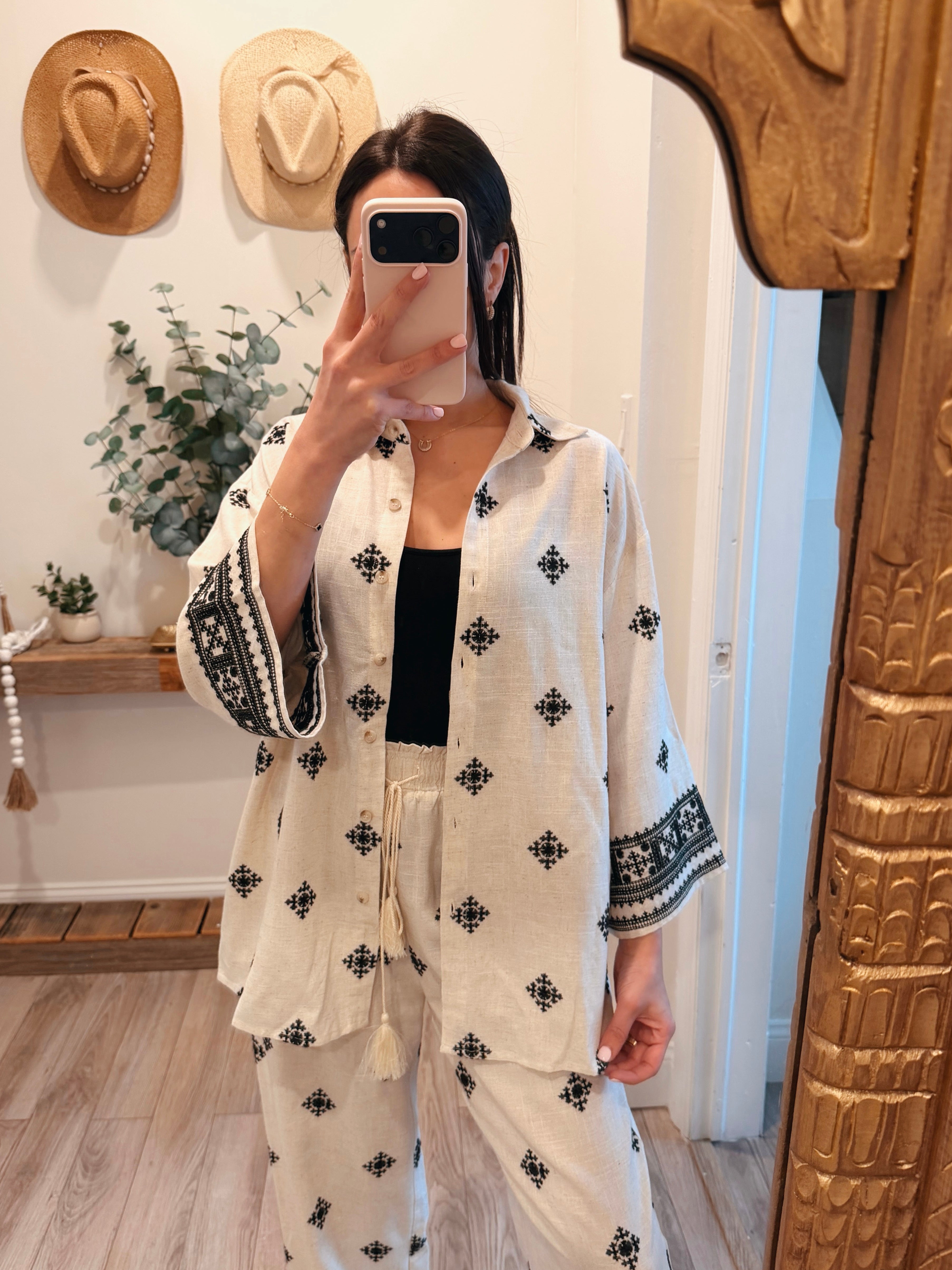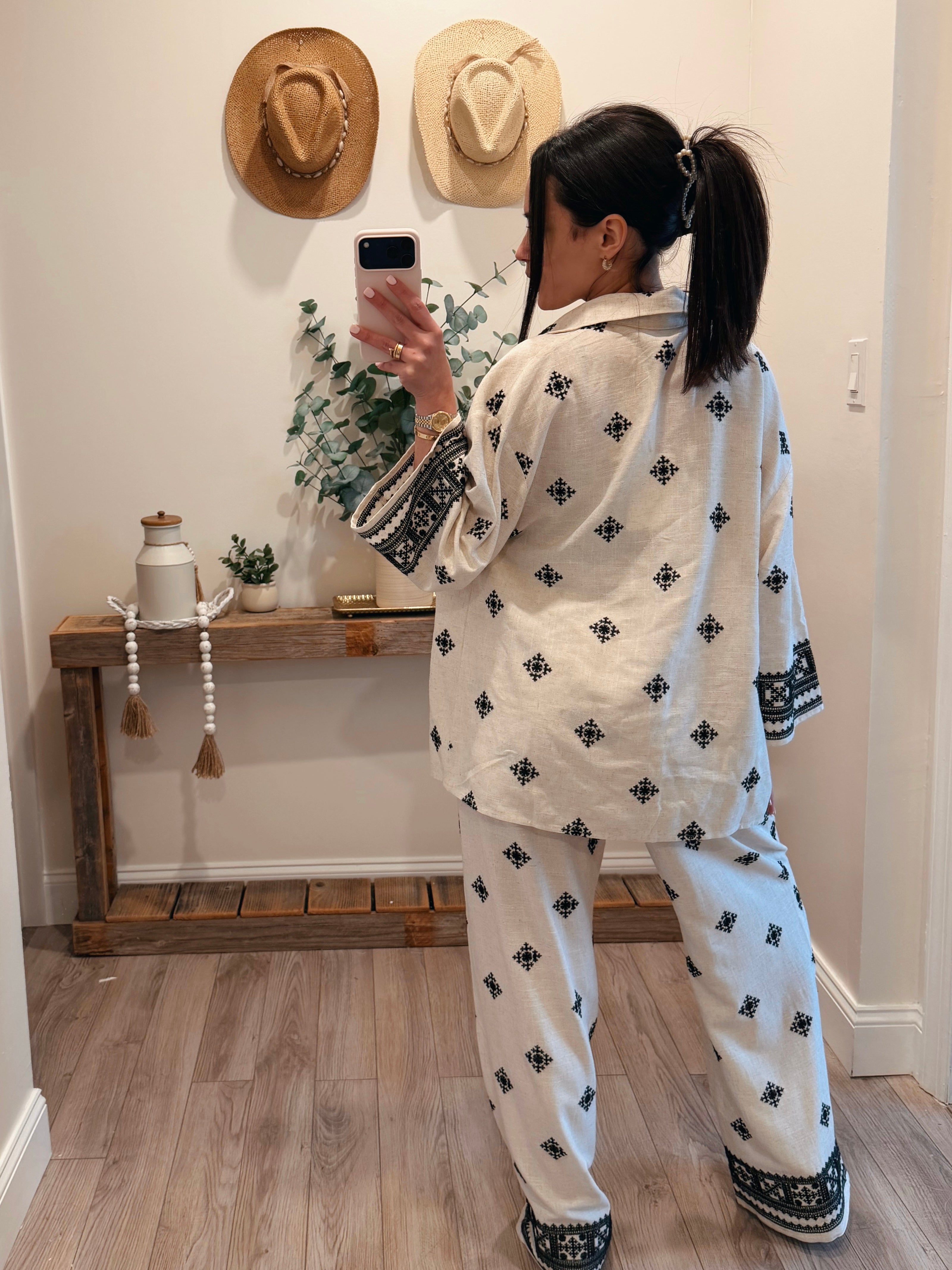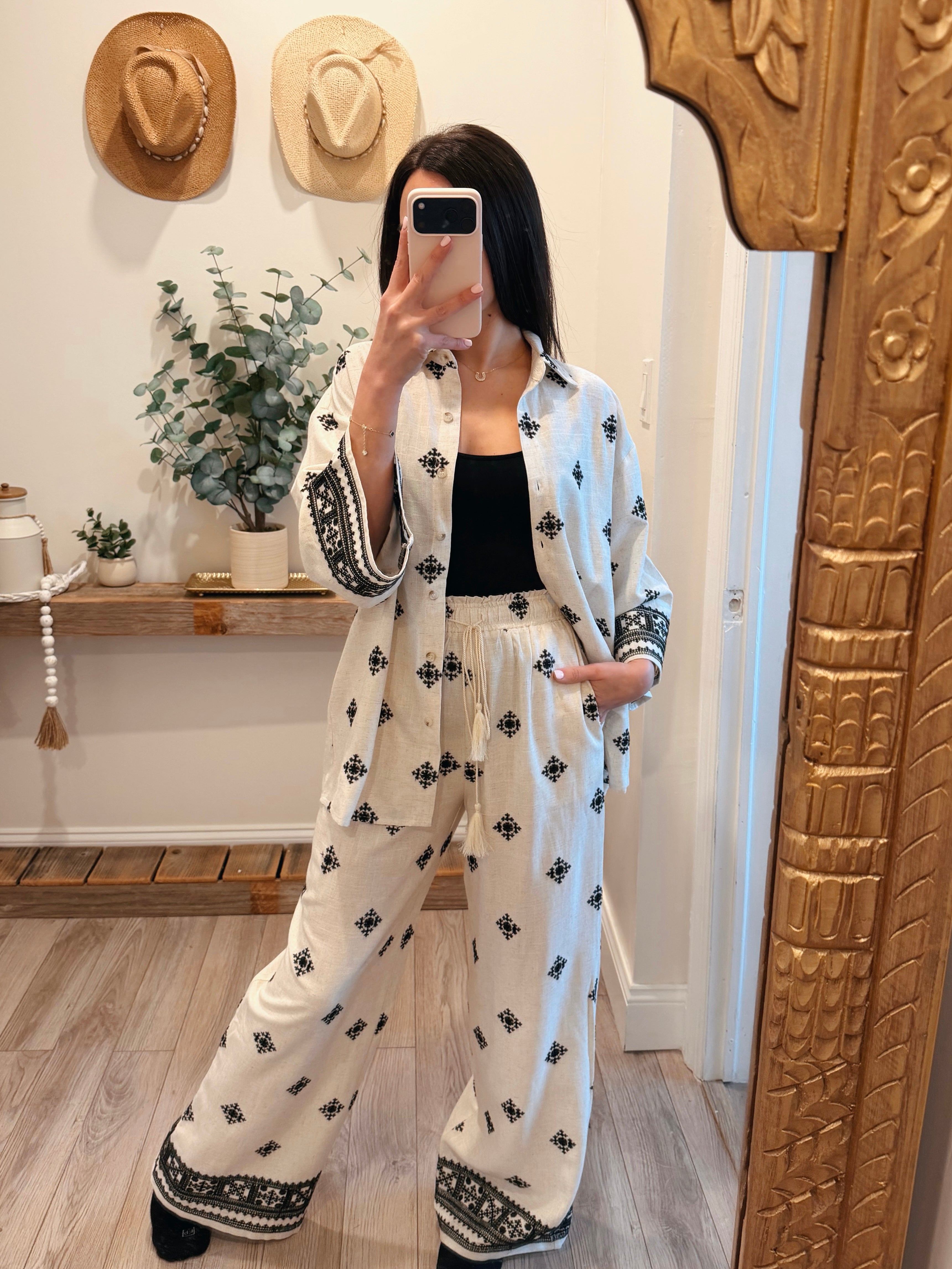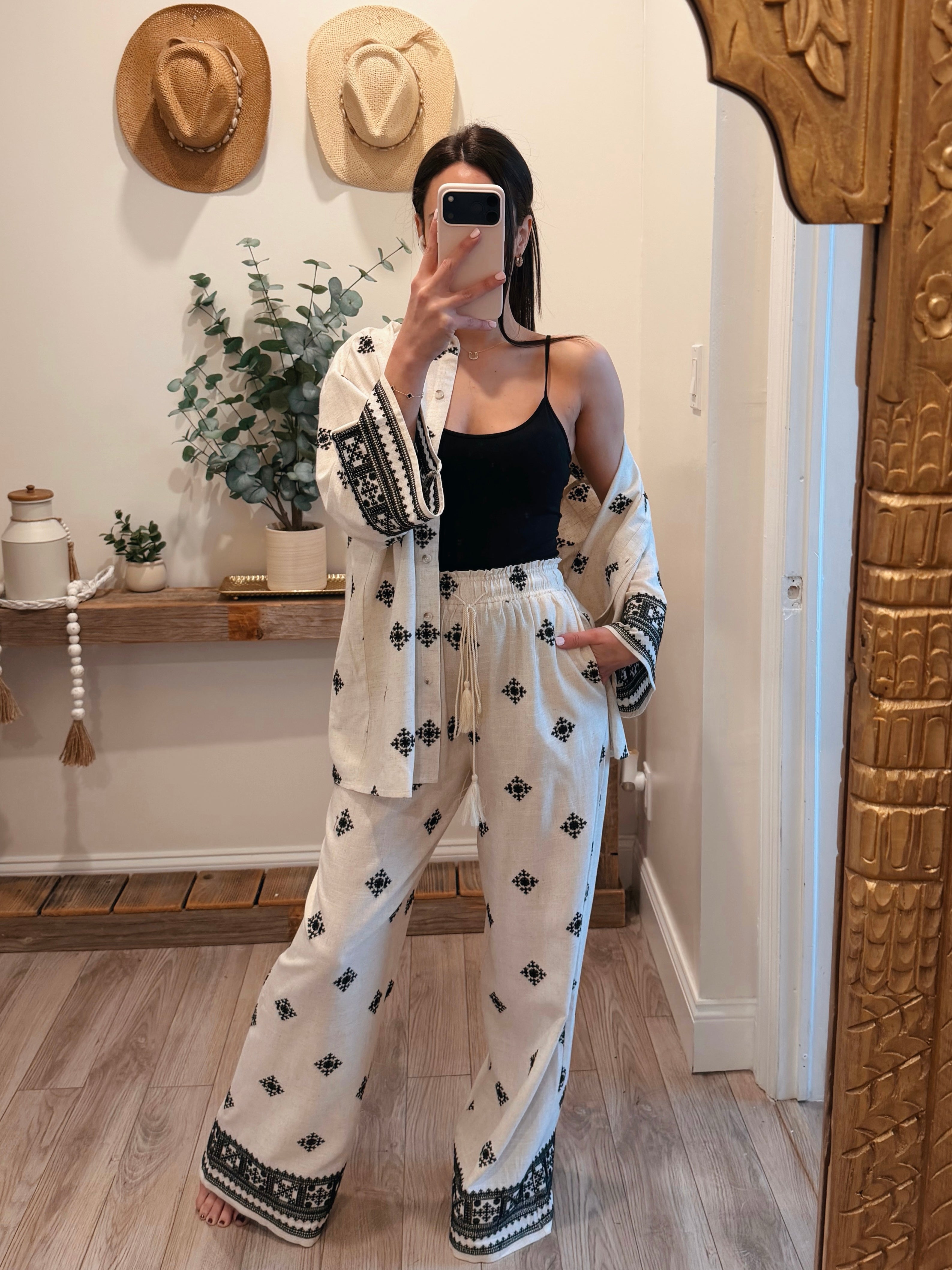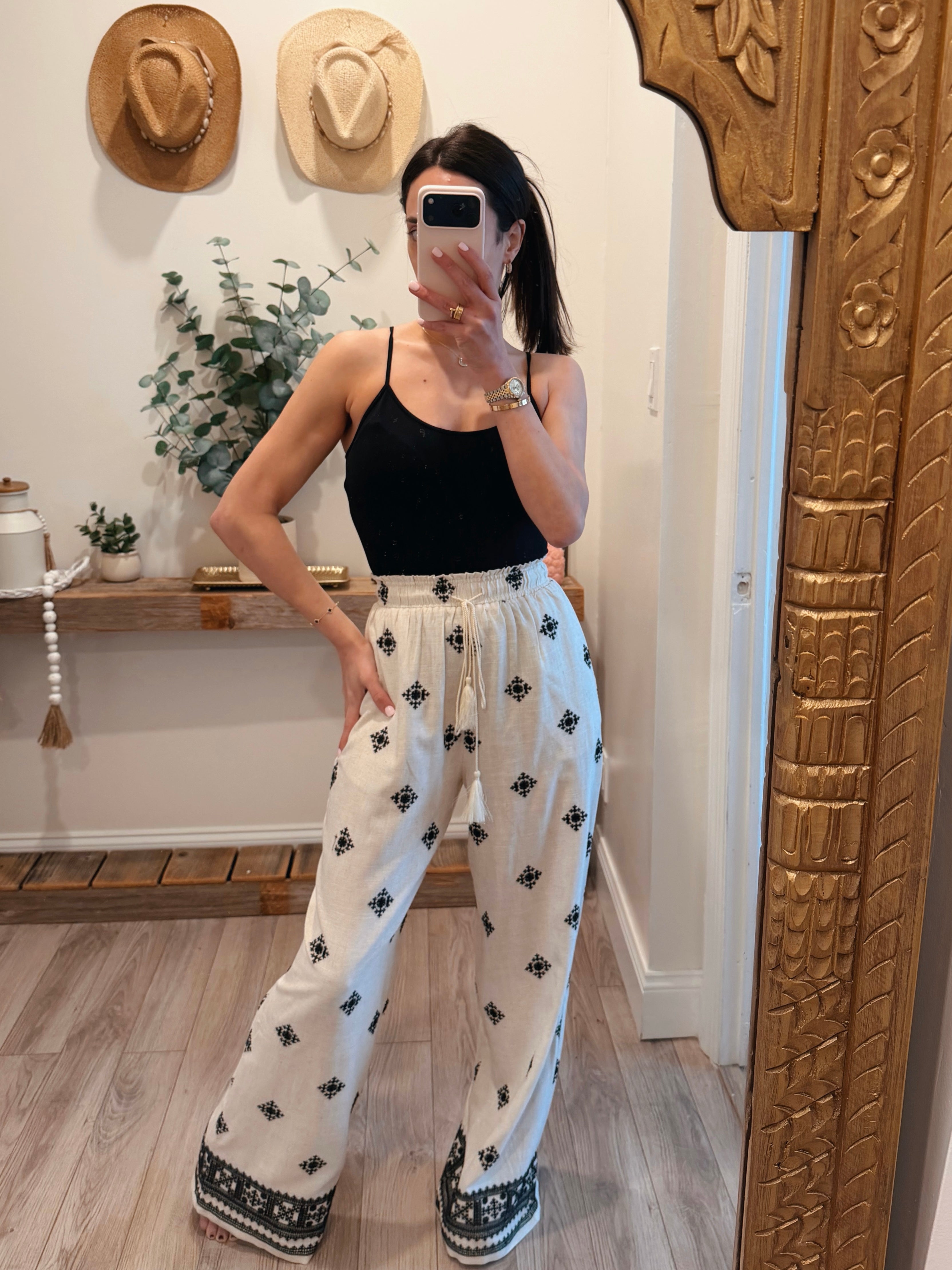 Kayla Linen Embroidered Border Pants