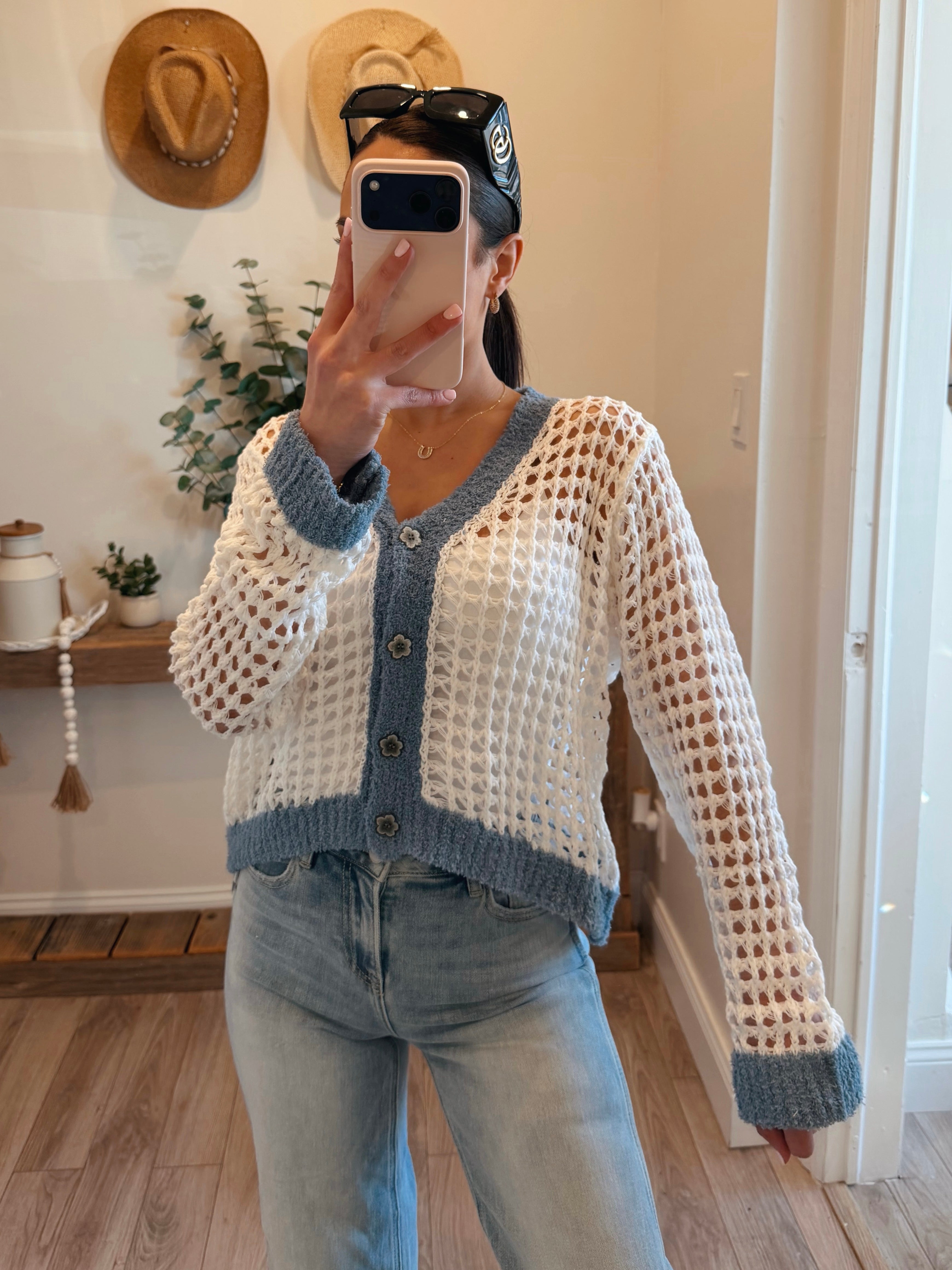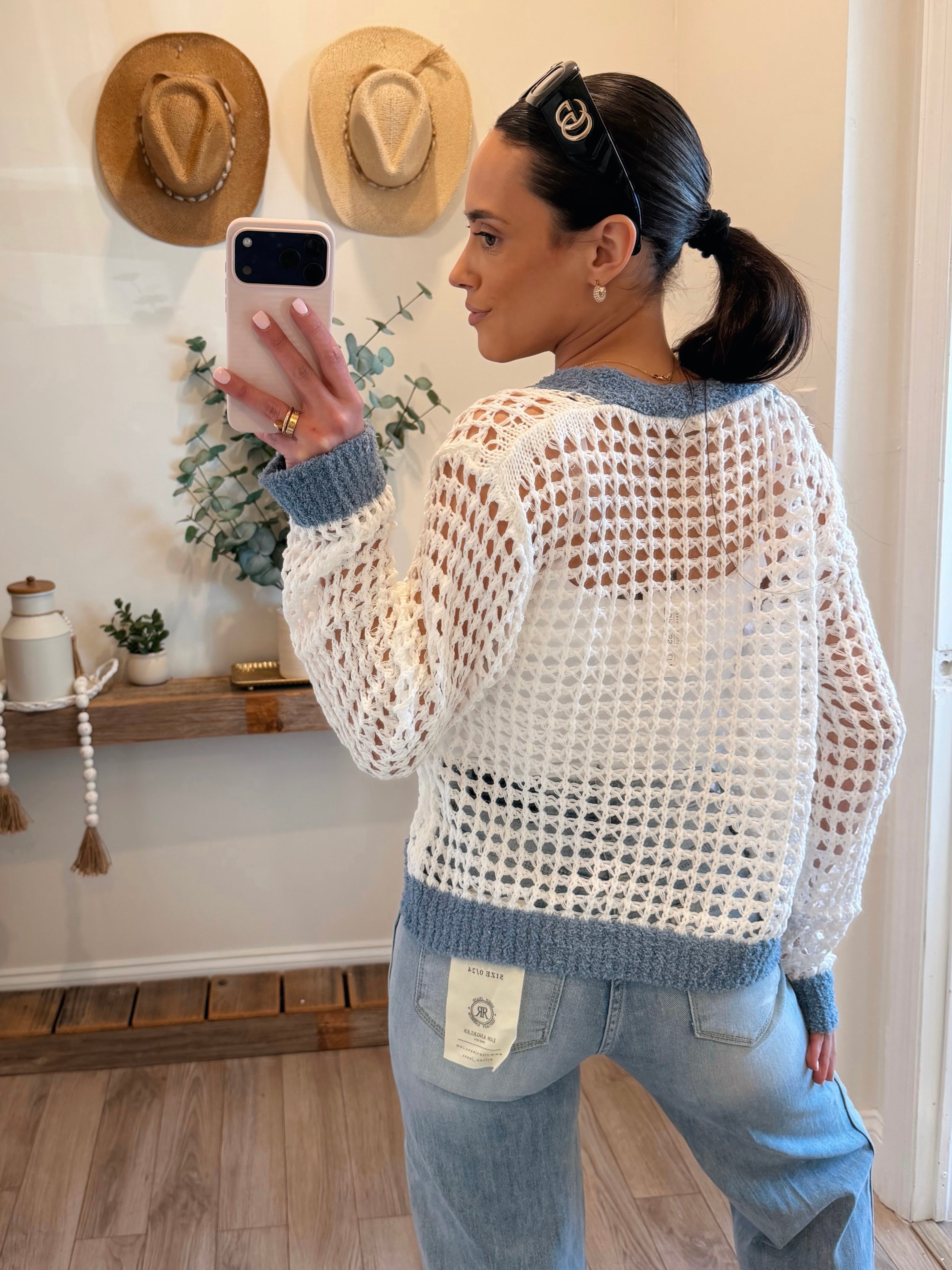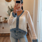 Lightweight Open Knit V-Neck Crochet Thin Sweater Cardigan