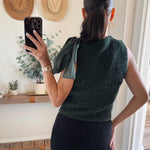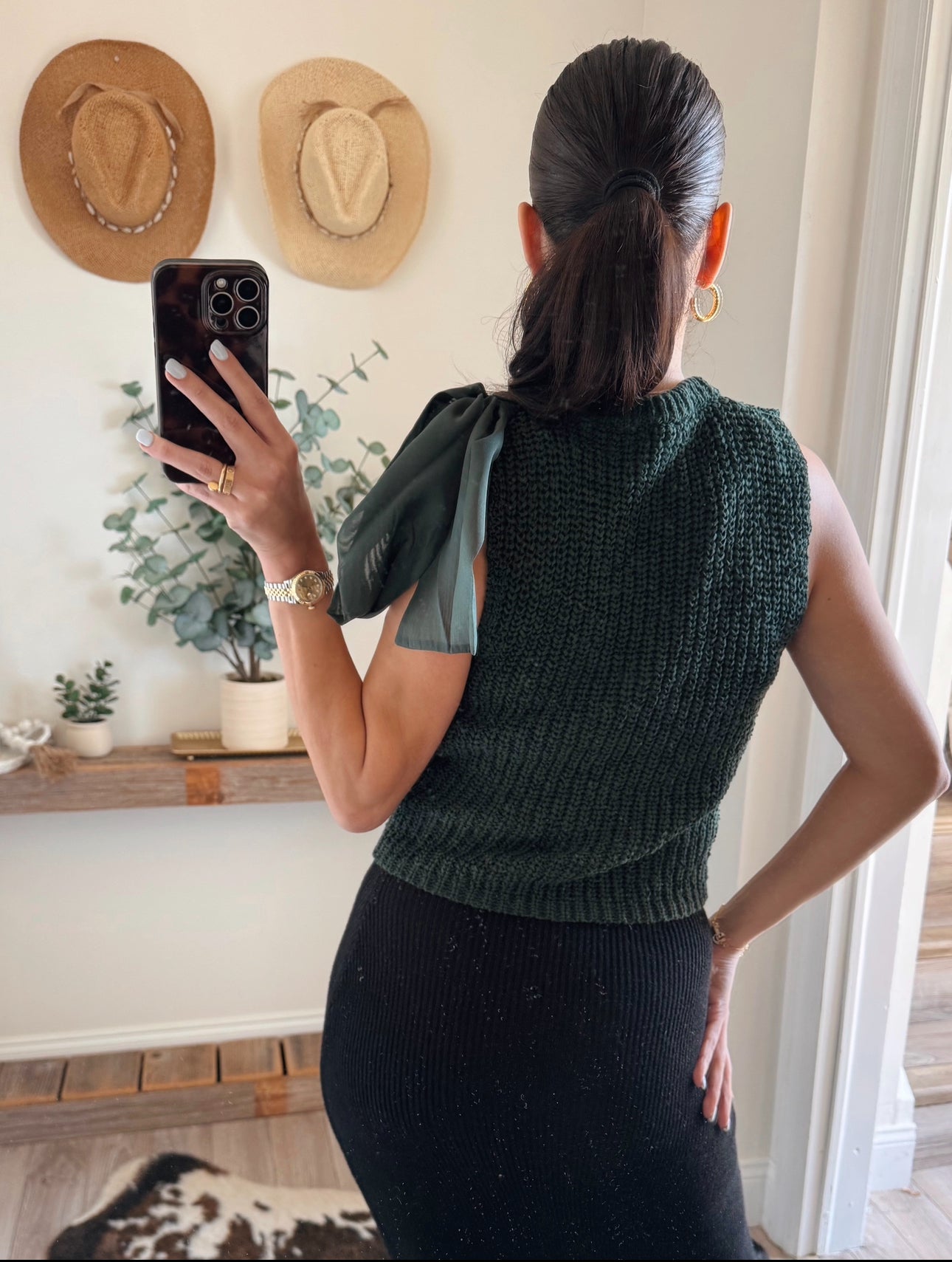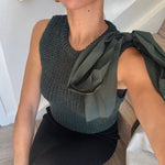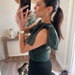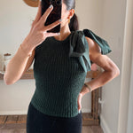Product Features: This sleeveless knit top has a soft texture and a fitted, cropped shape. An oversized organza bow on the shoulder adds a stylish, romantic detail.