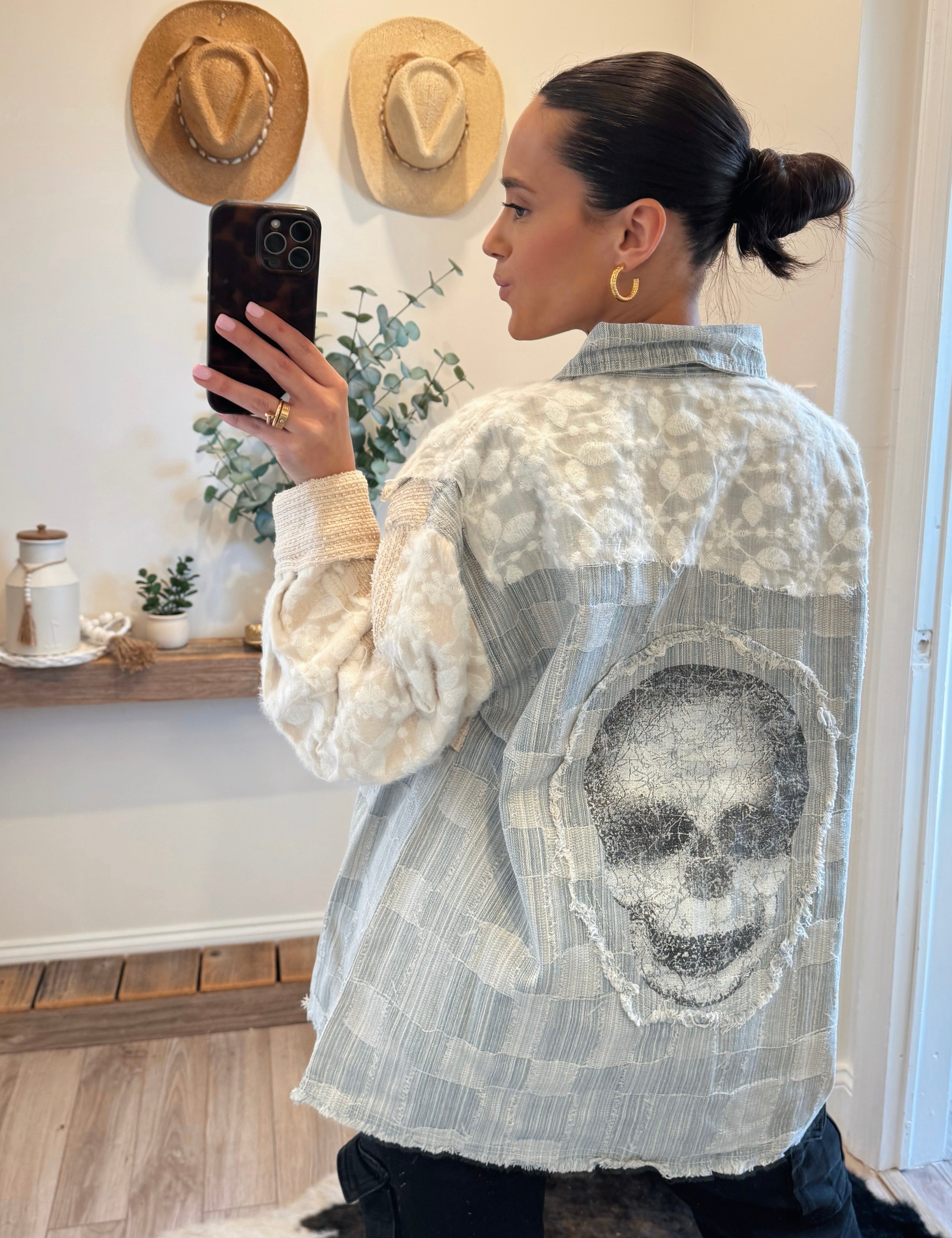 Oversize Skull Detail Lace Denim Jacket