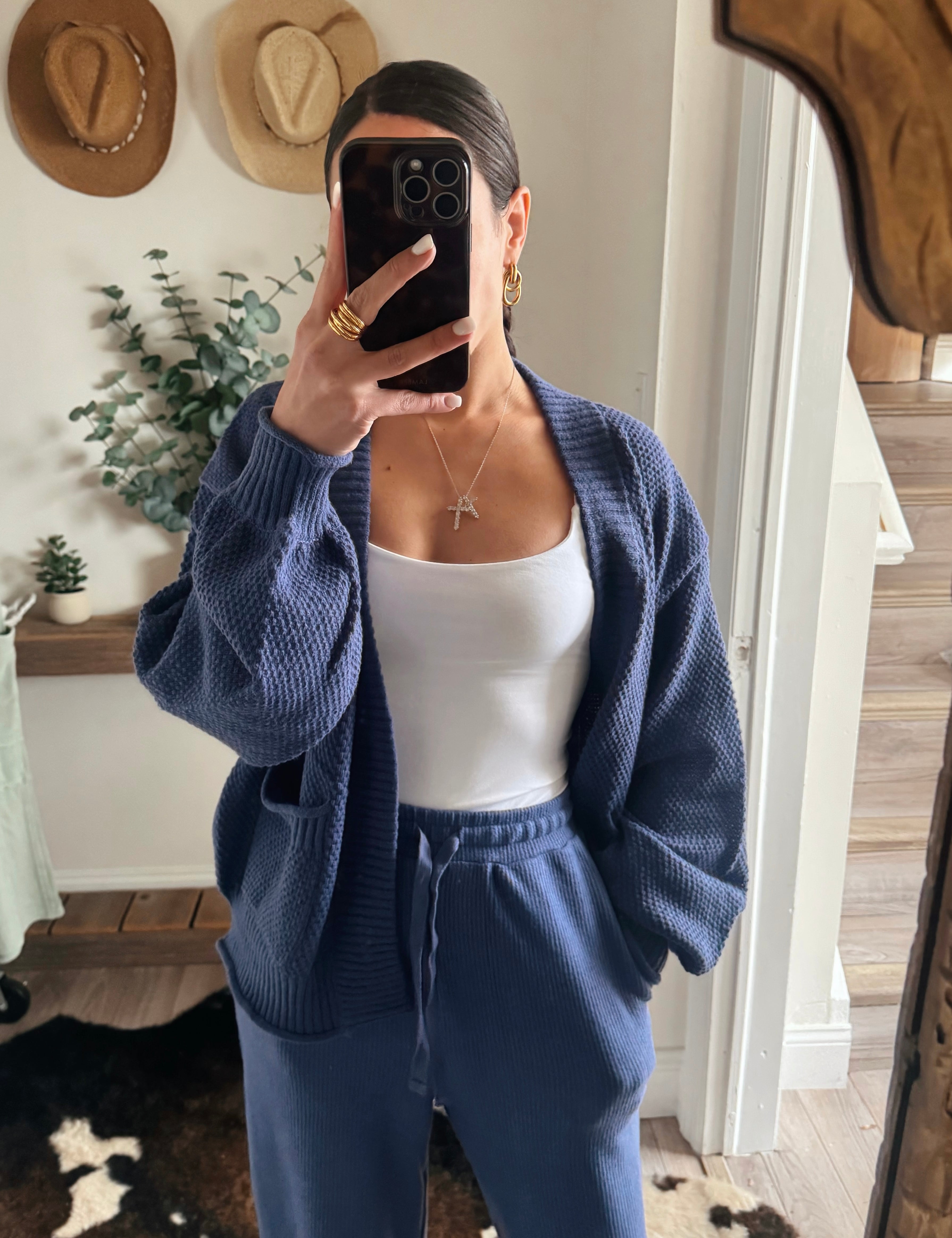 Dusty Indigo Mineral Waffle Wide Leg Sweats