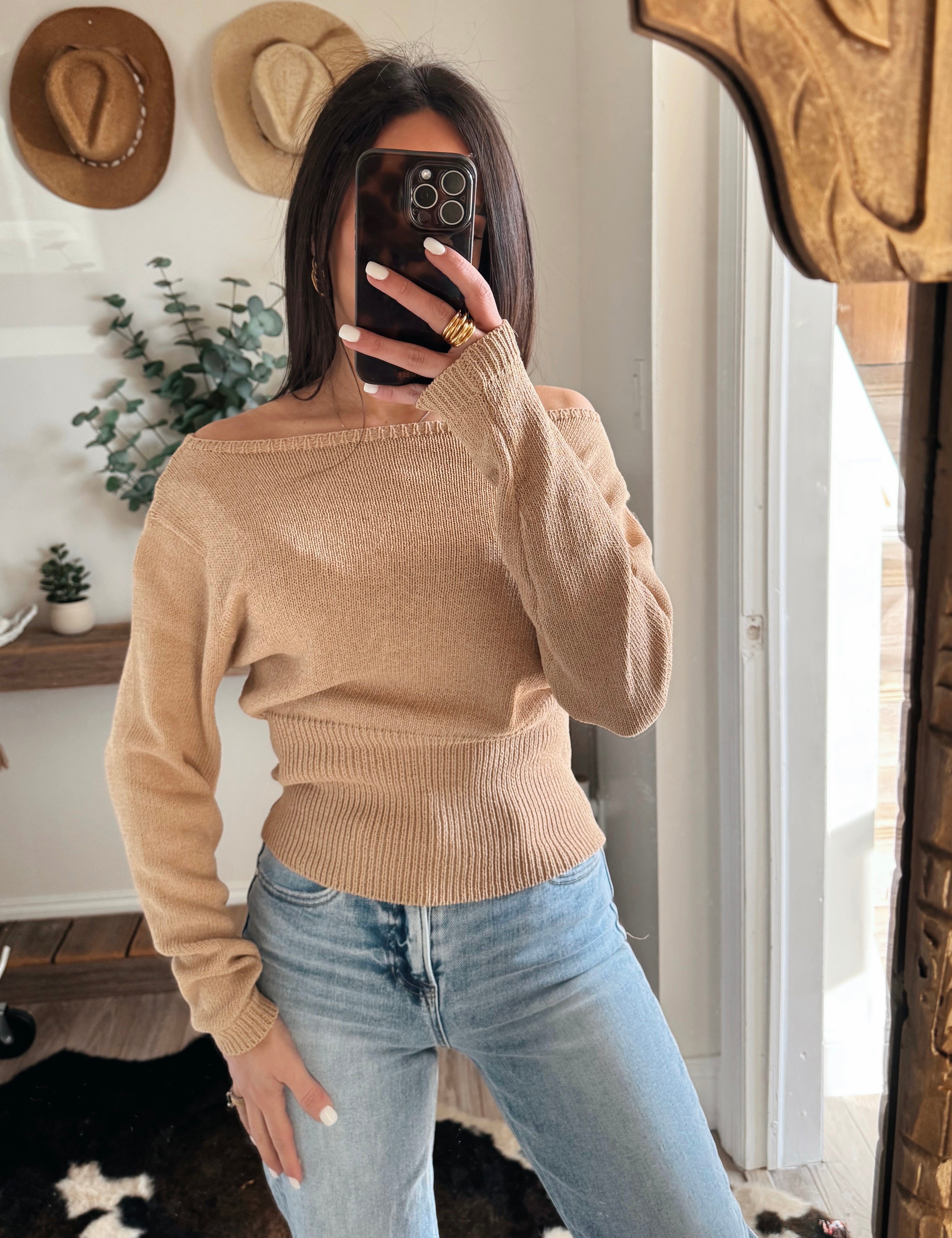 Camel Waistline One-Shoulder Knit Sweater Top