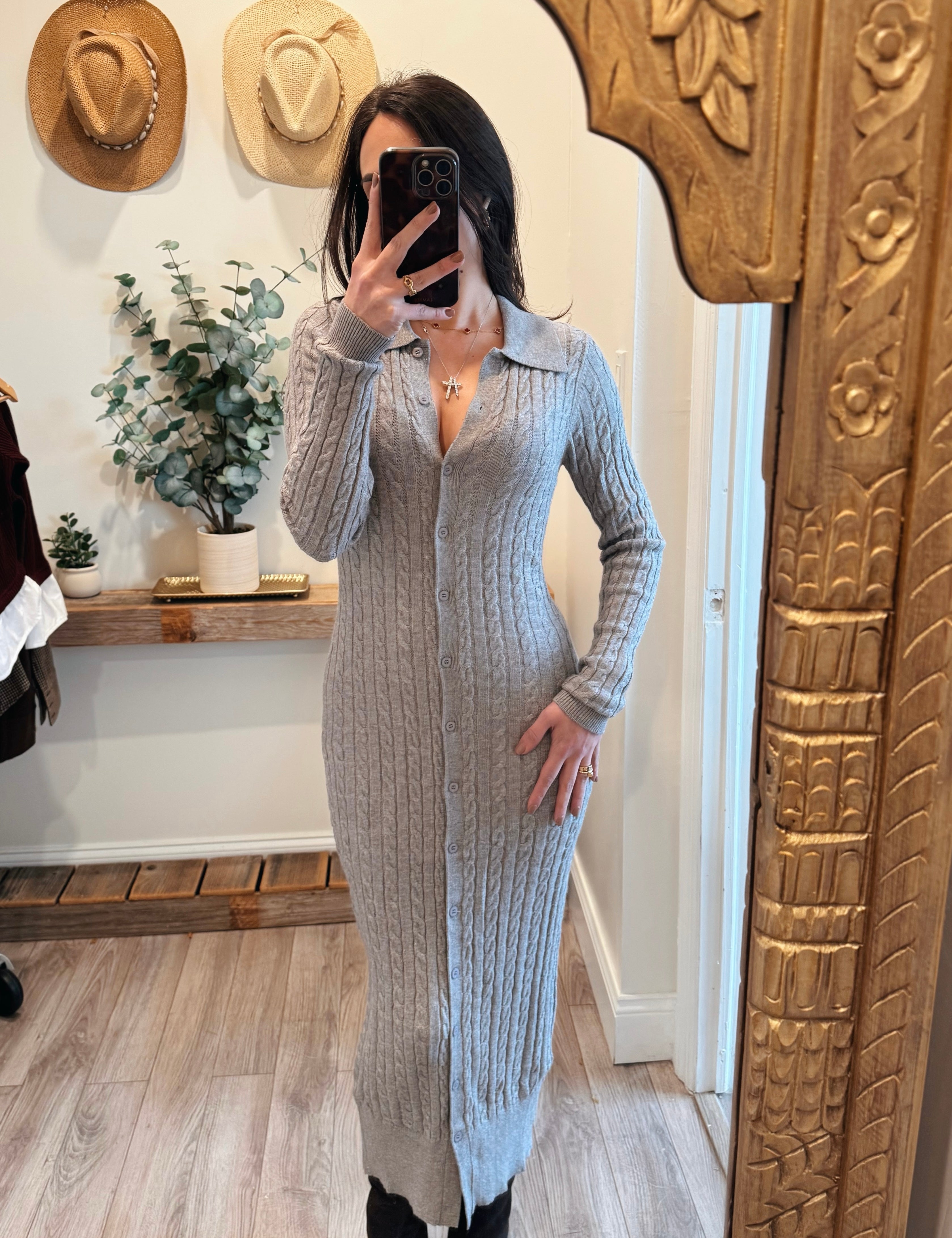 Oatmeal Cable Knit Half-Zip Oversized Sweater Vest Dress