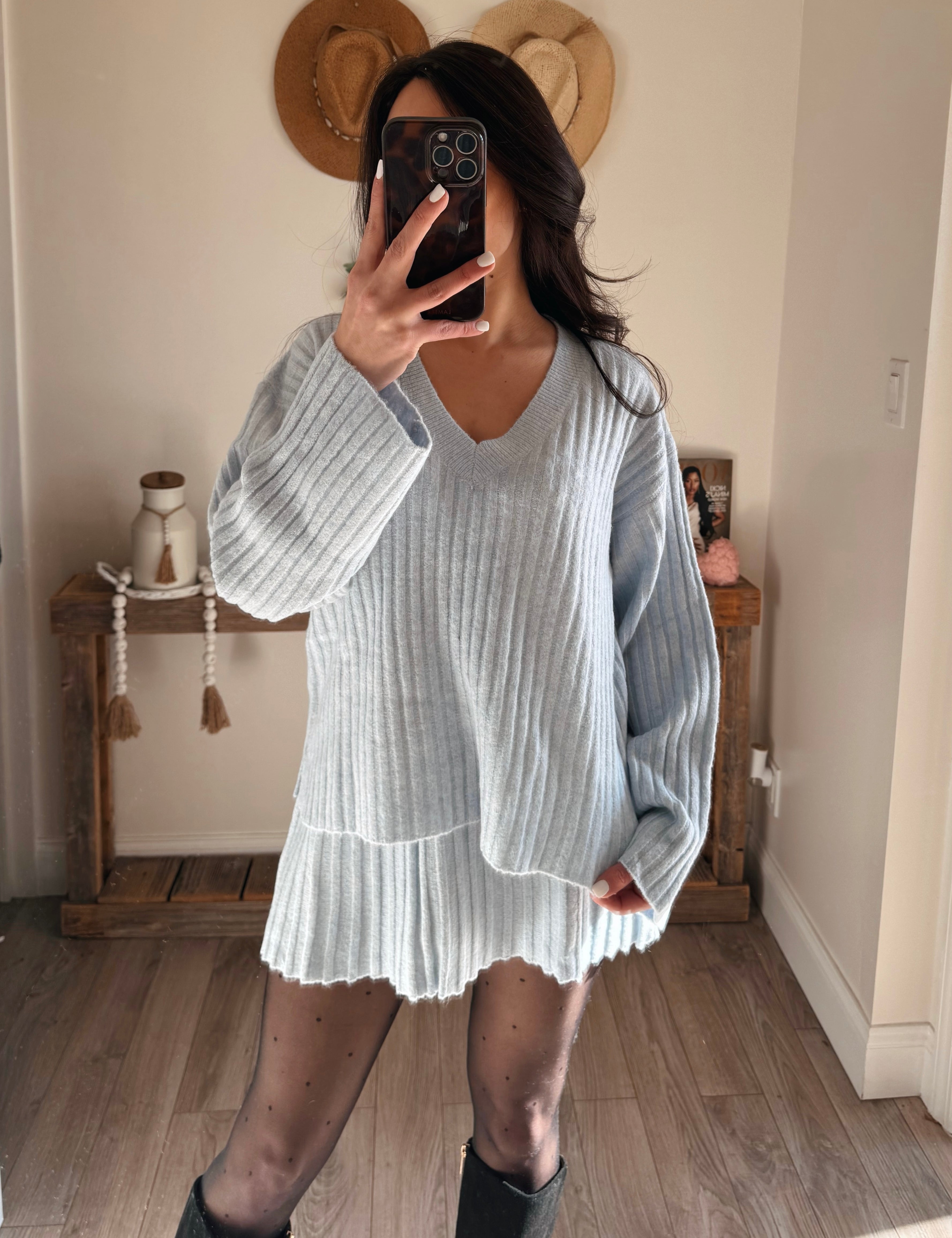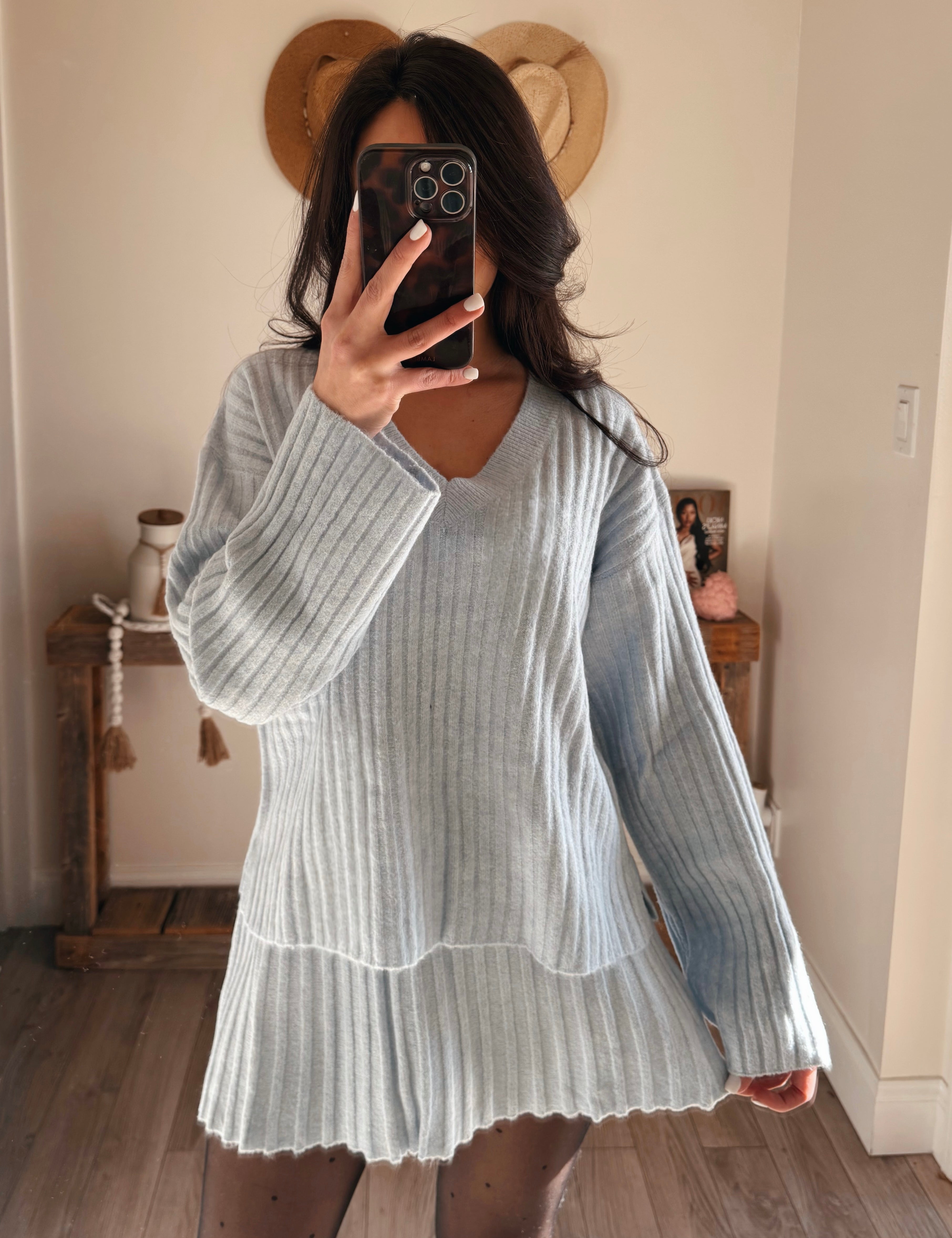 Baby Blue Cierra Bell Sleeve Cloud Sweater