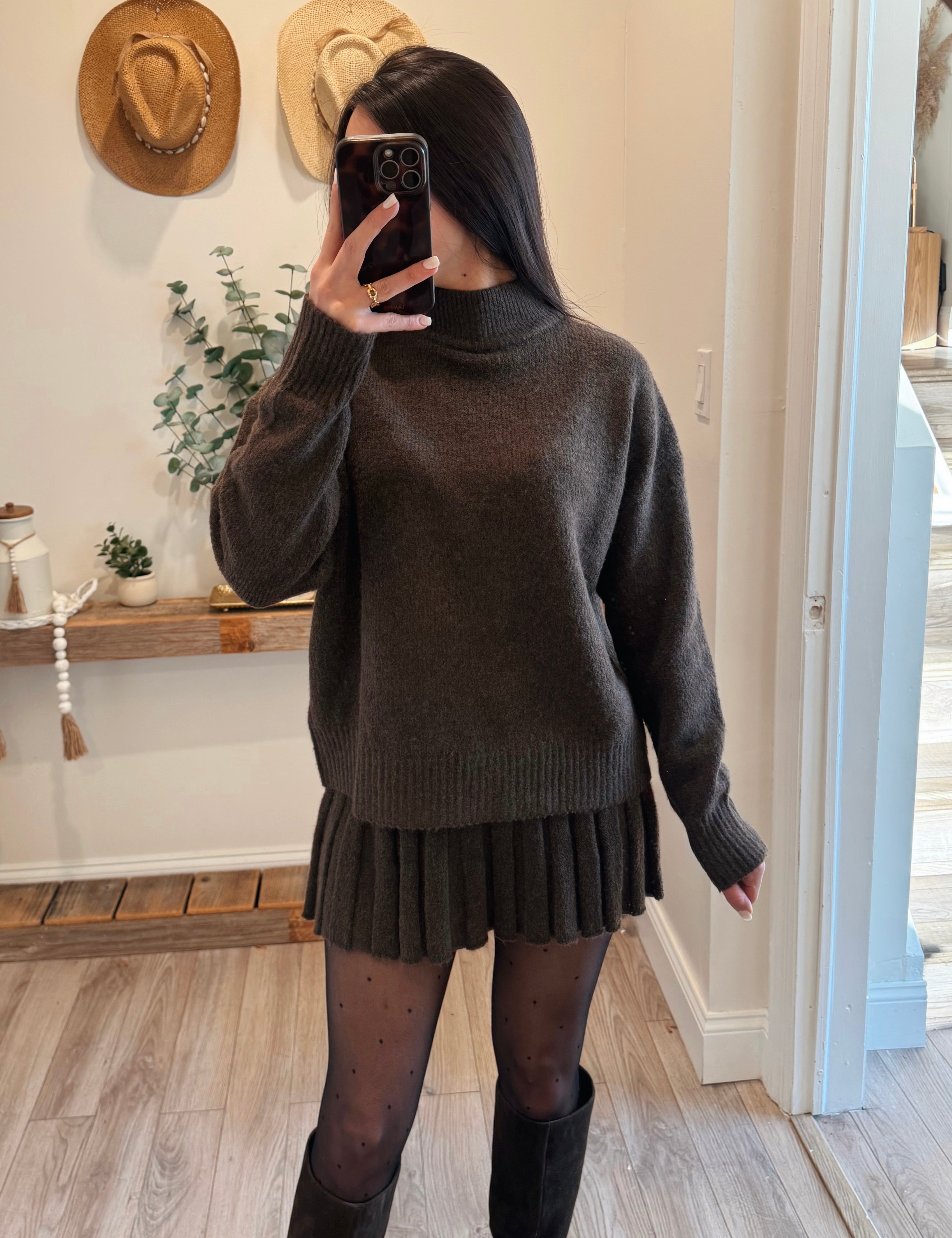 Dark Brown Turtleneck Pullover Sweater