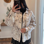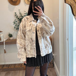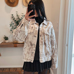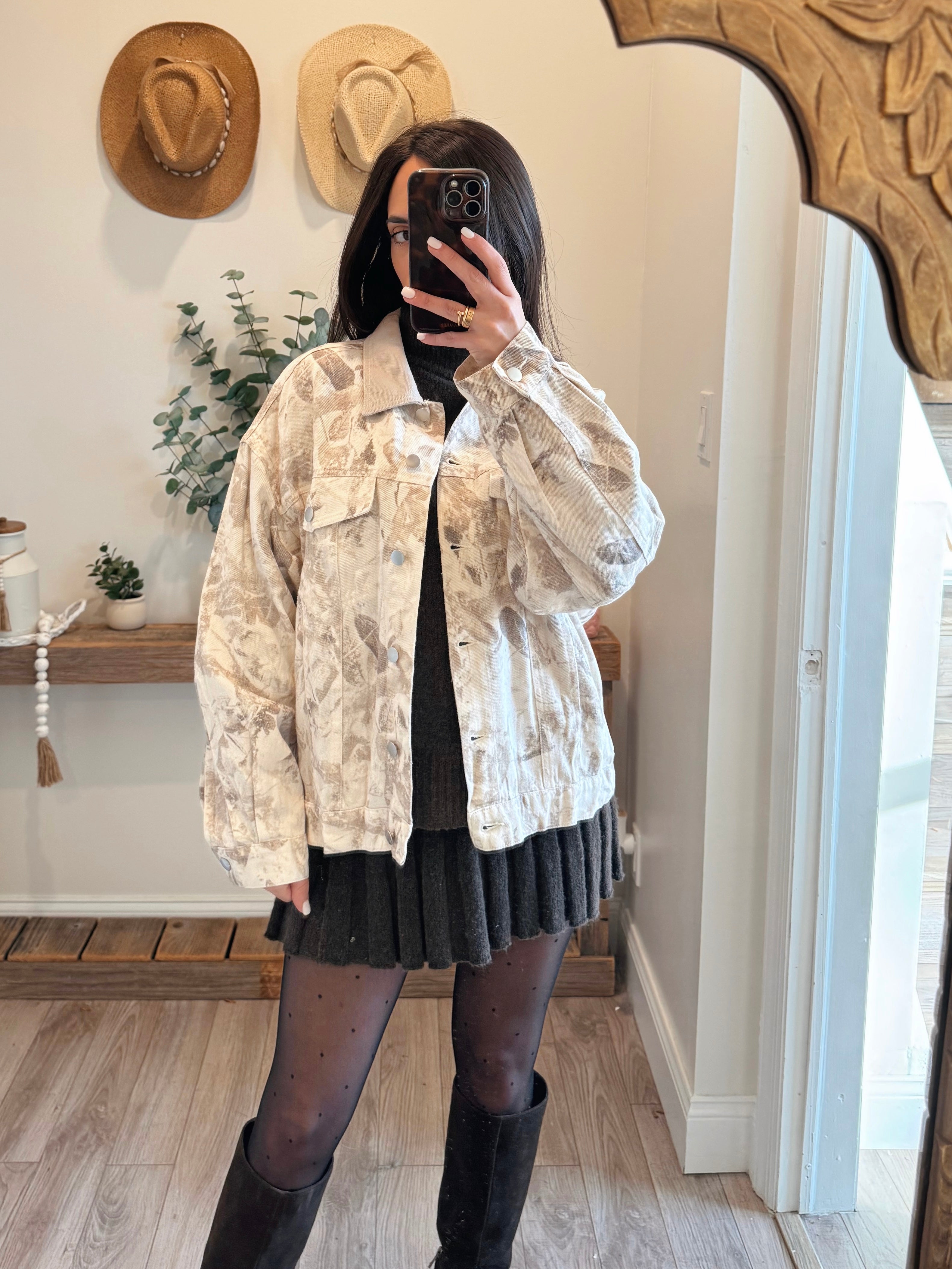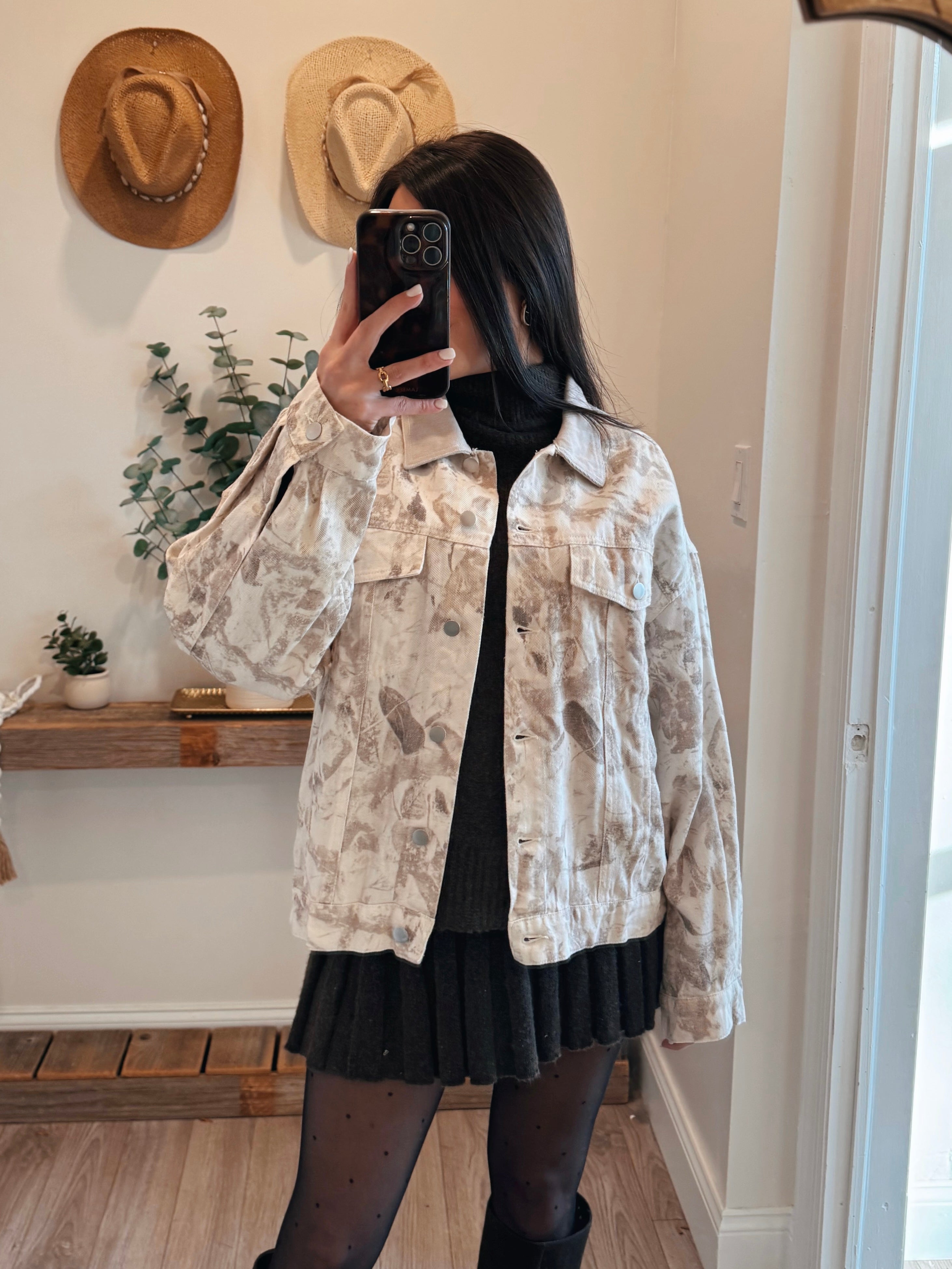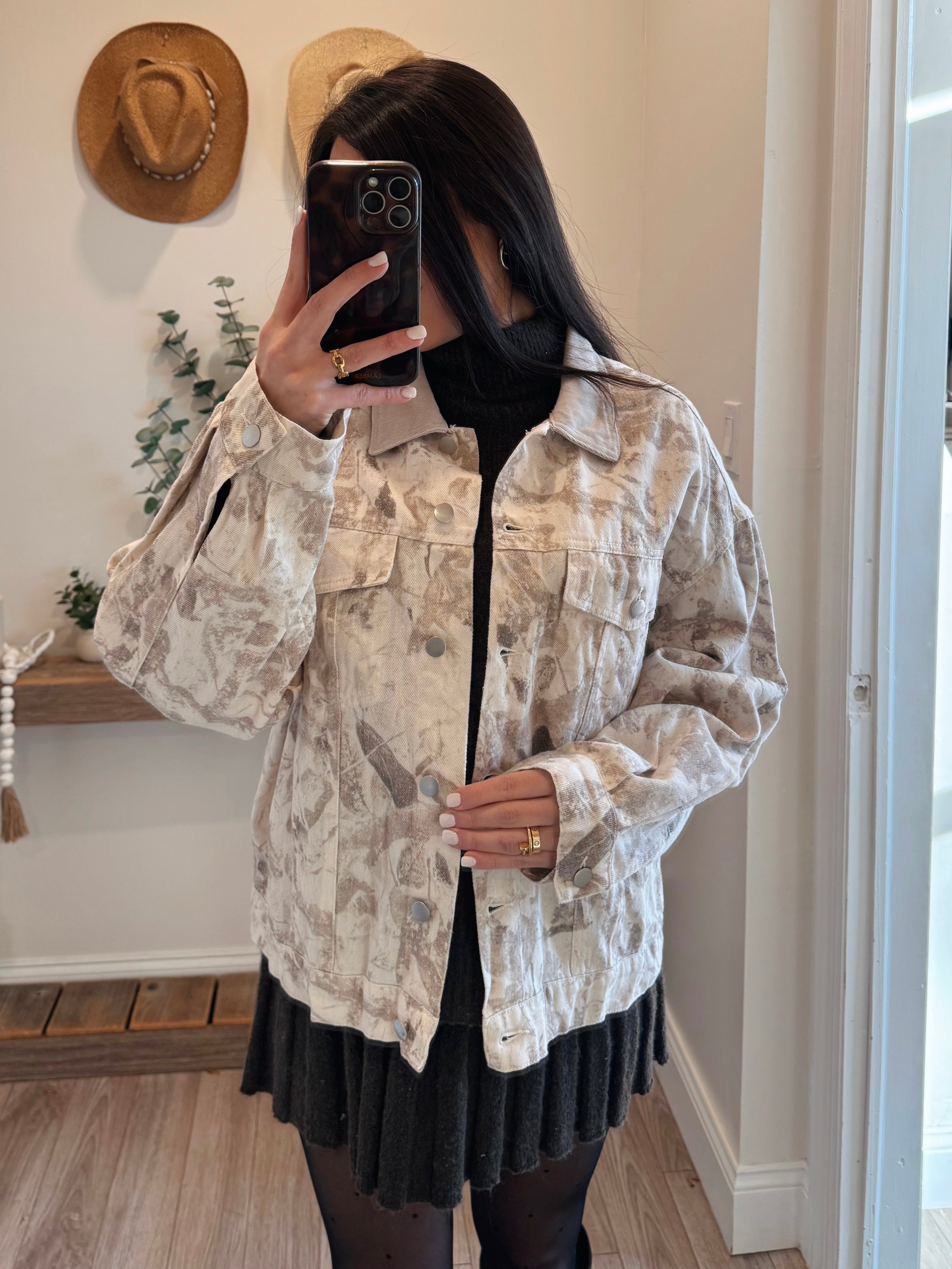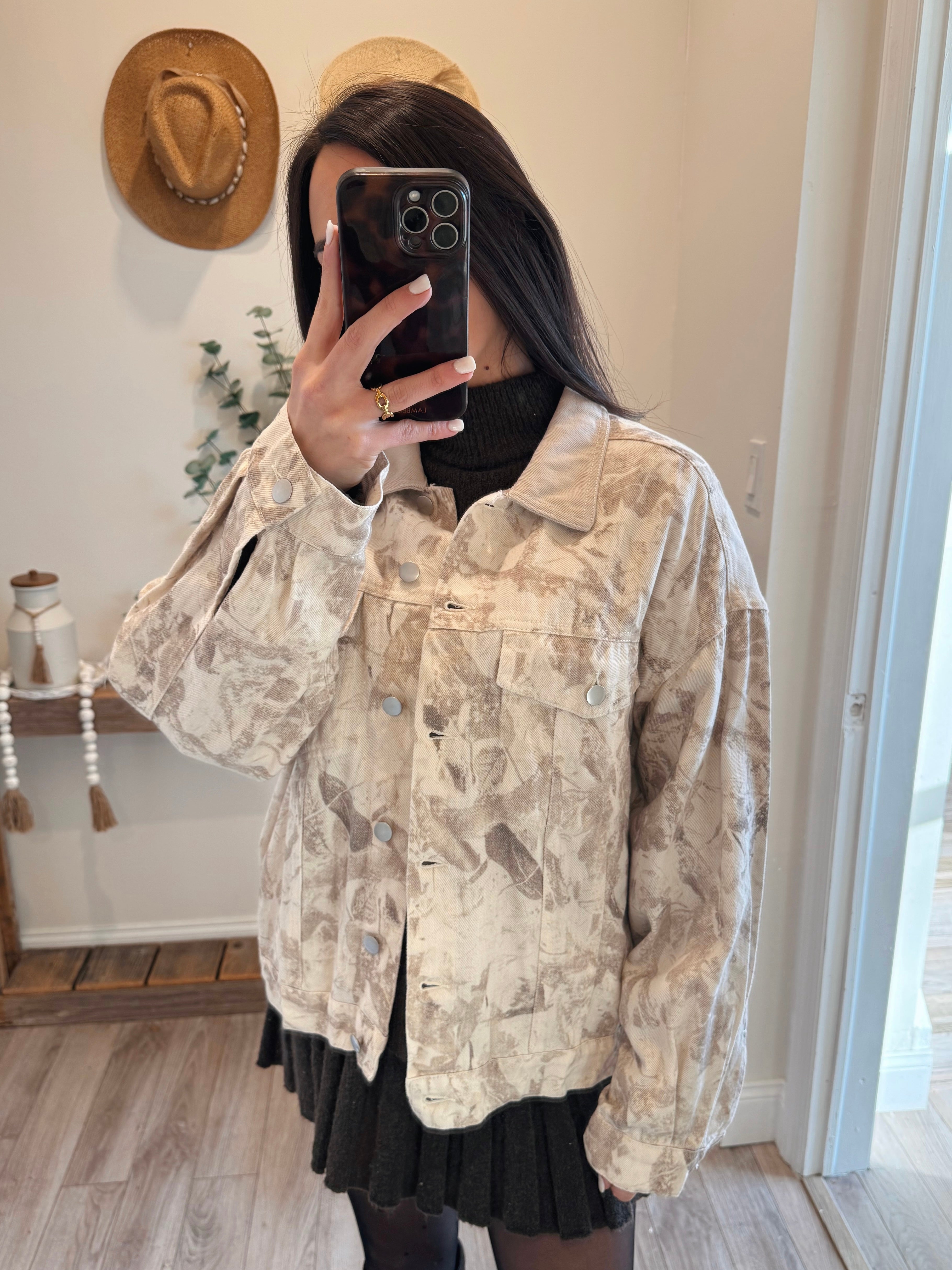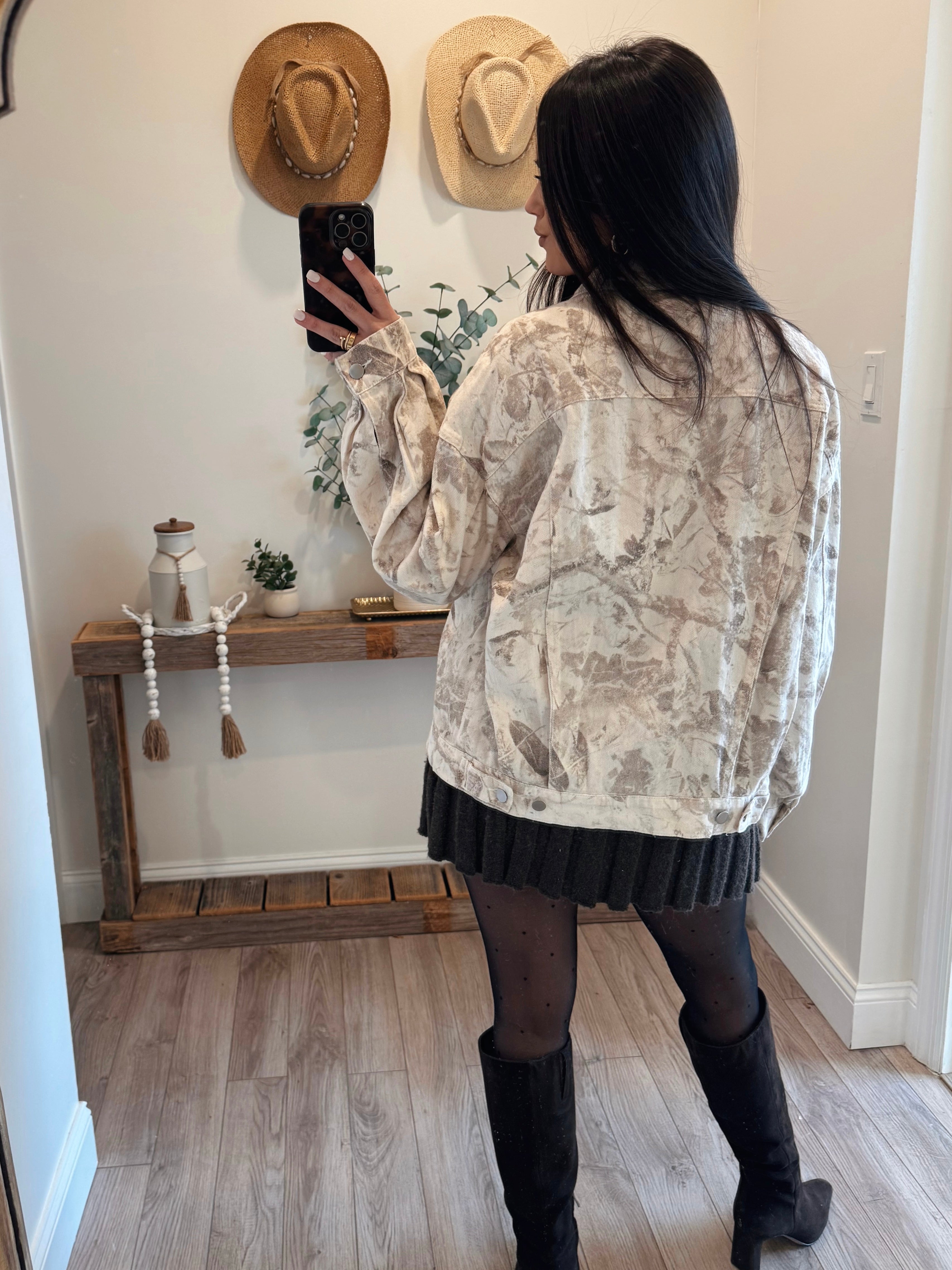 Light Wash Wooland Camo Oversized Trucker Jacket