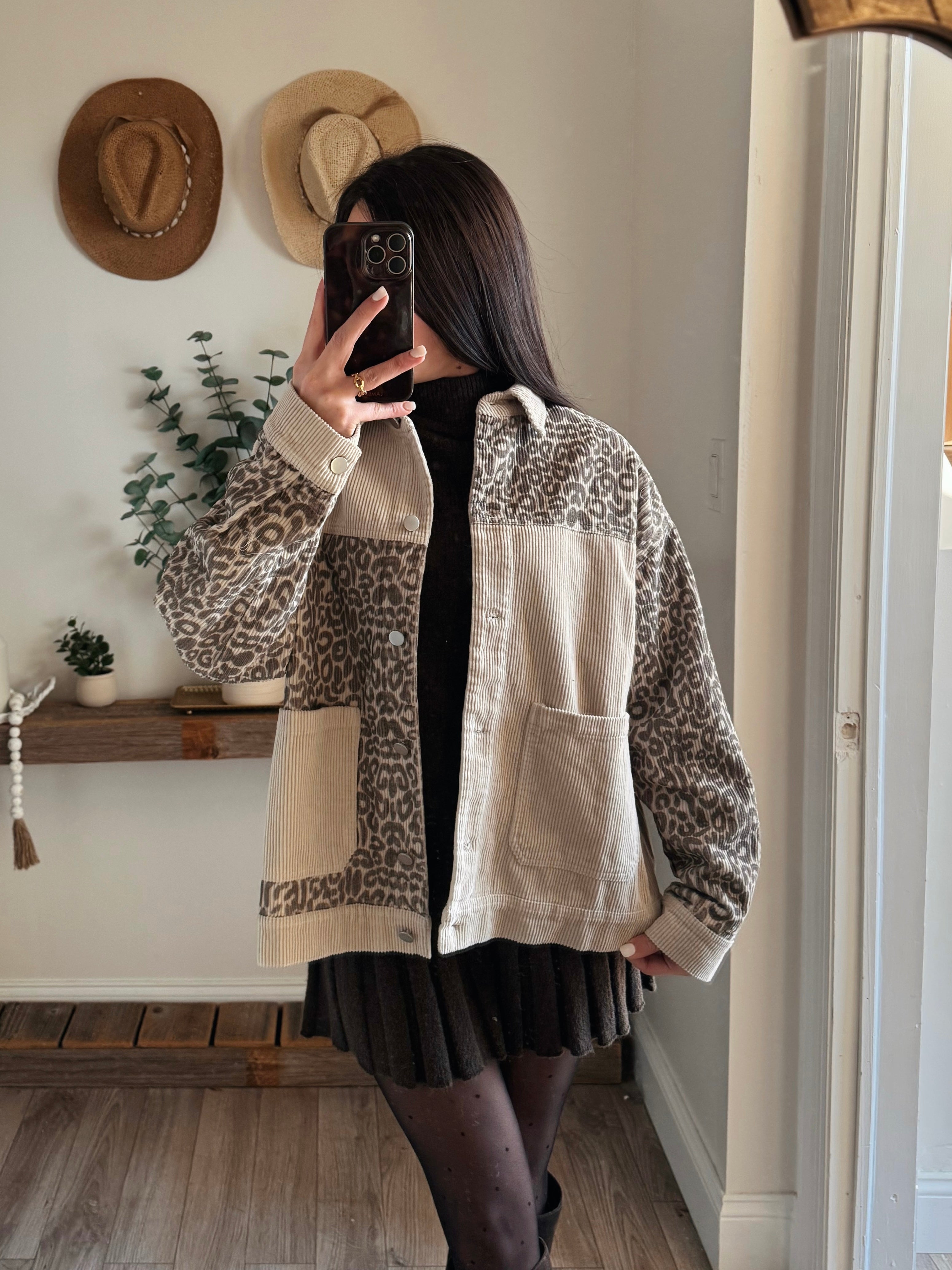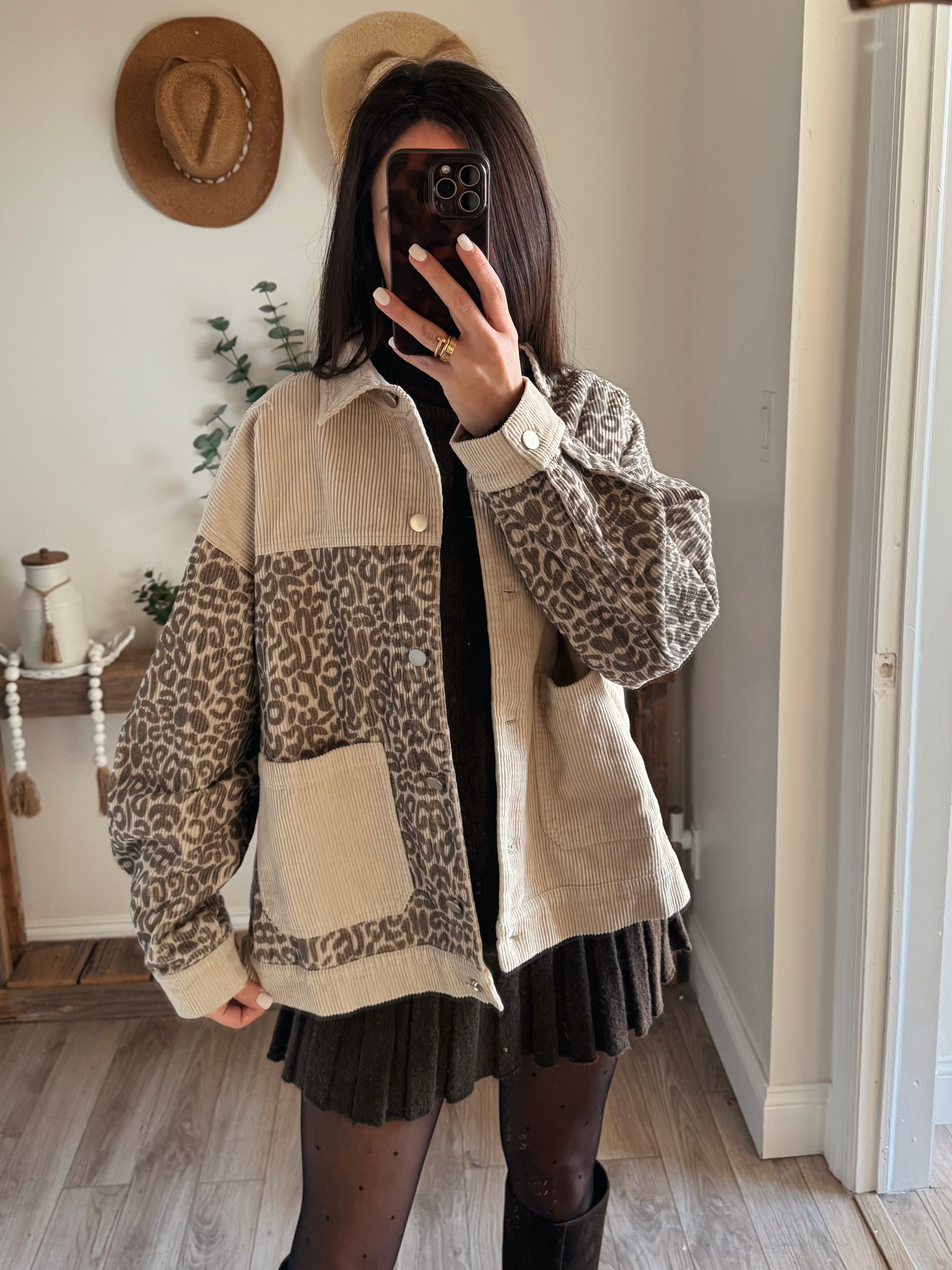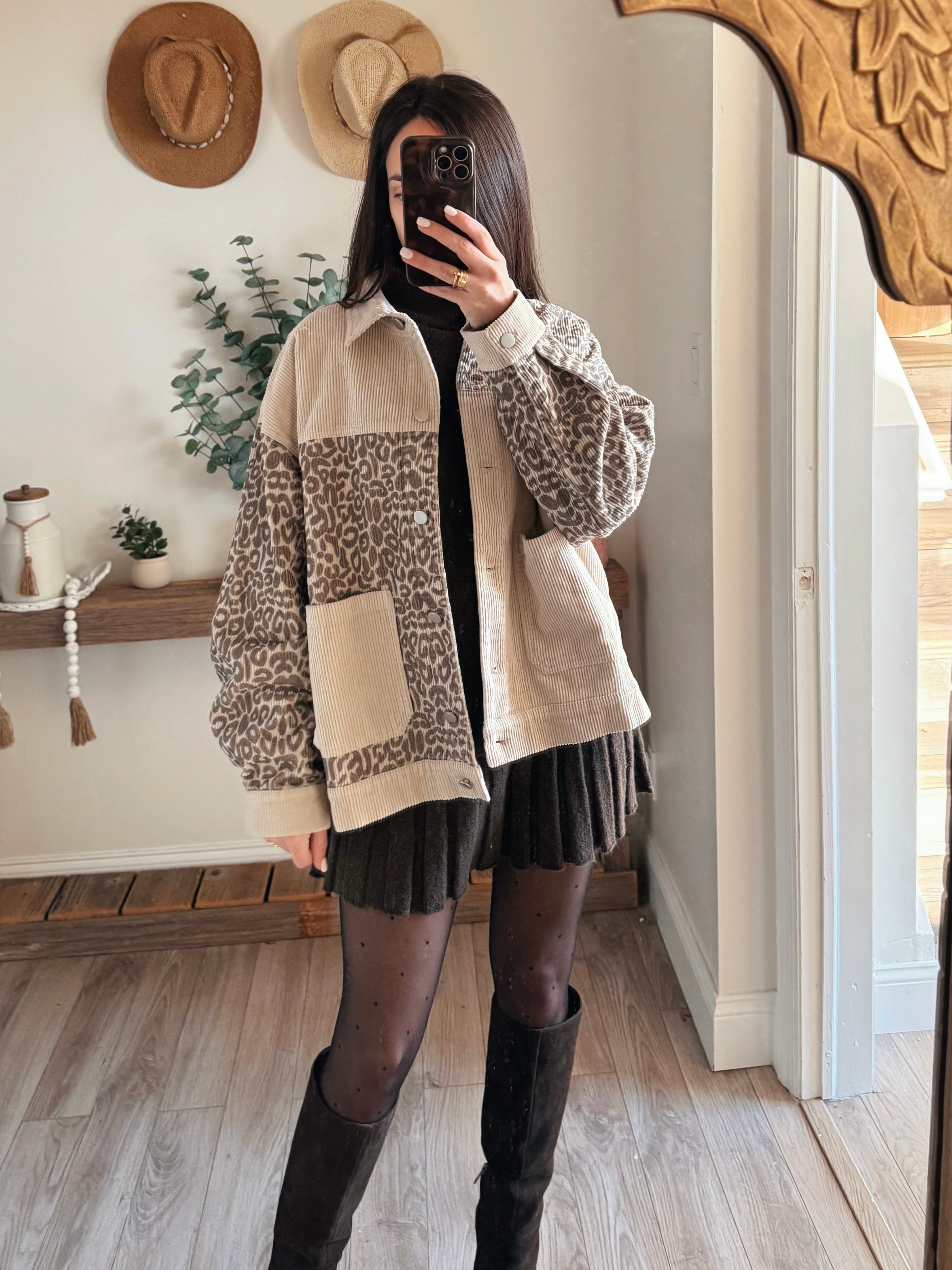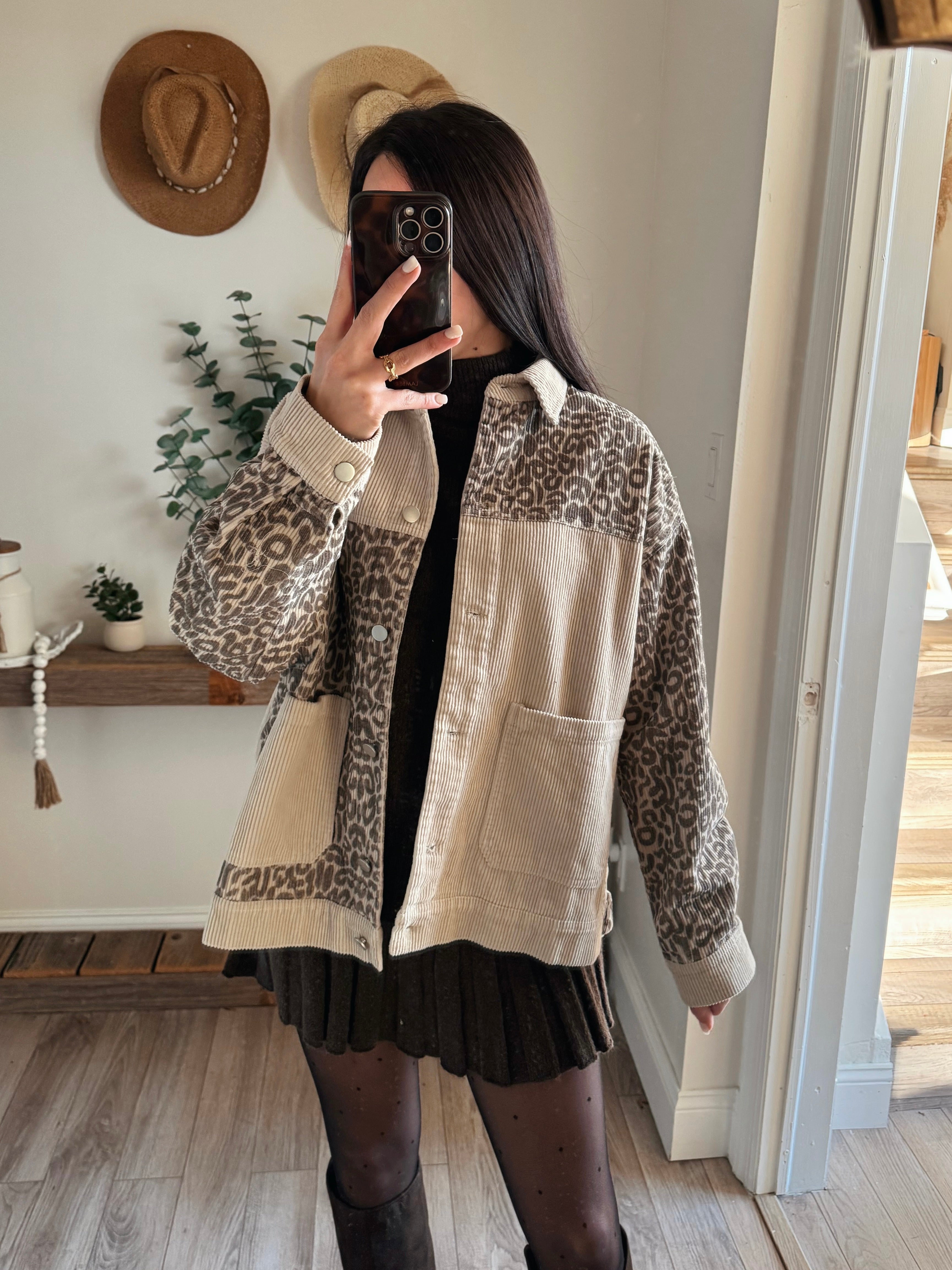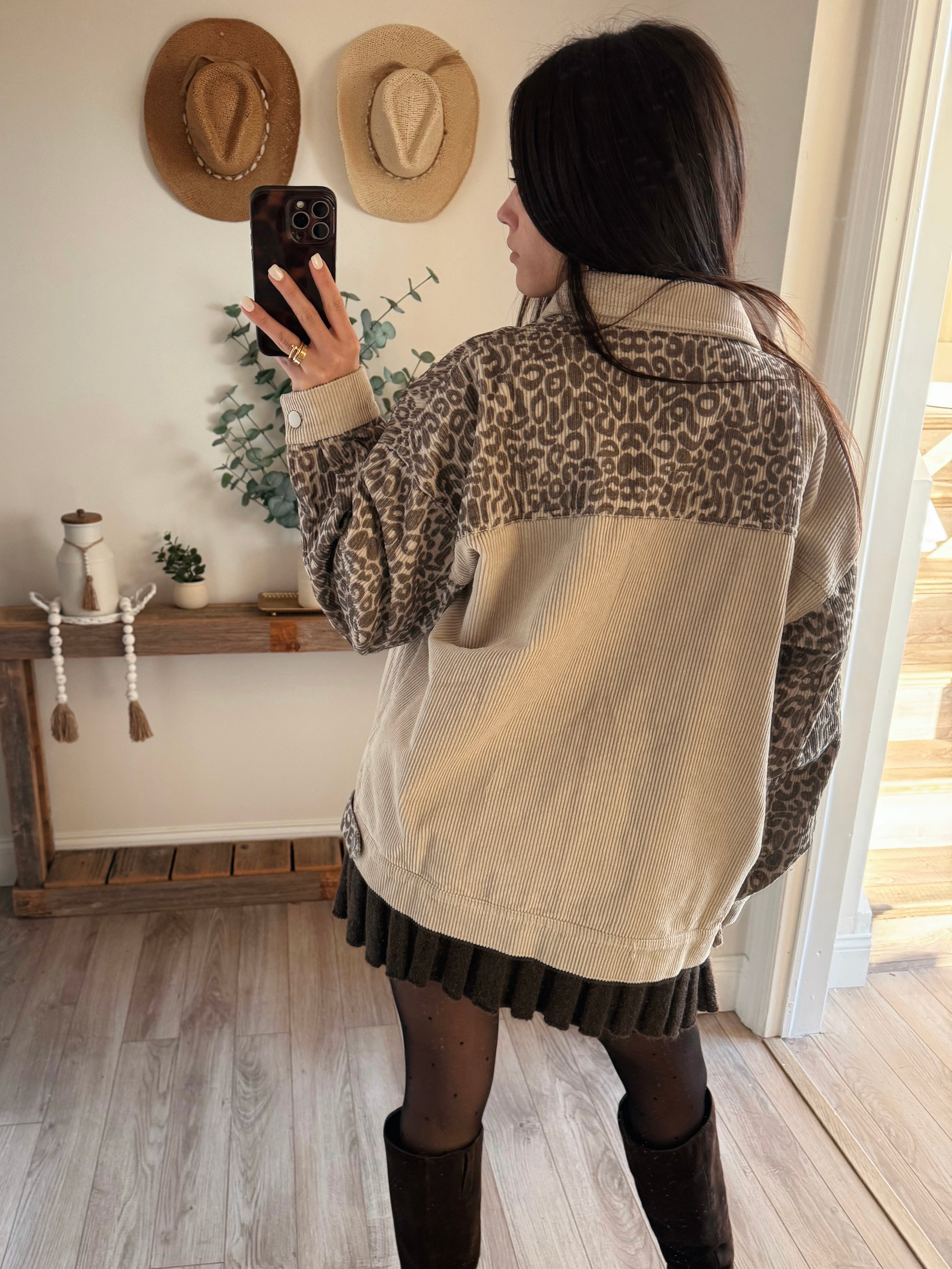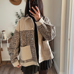 Oversized Leopard Print and Corduroy Jacket