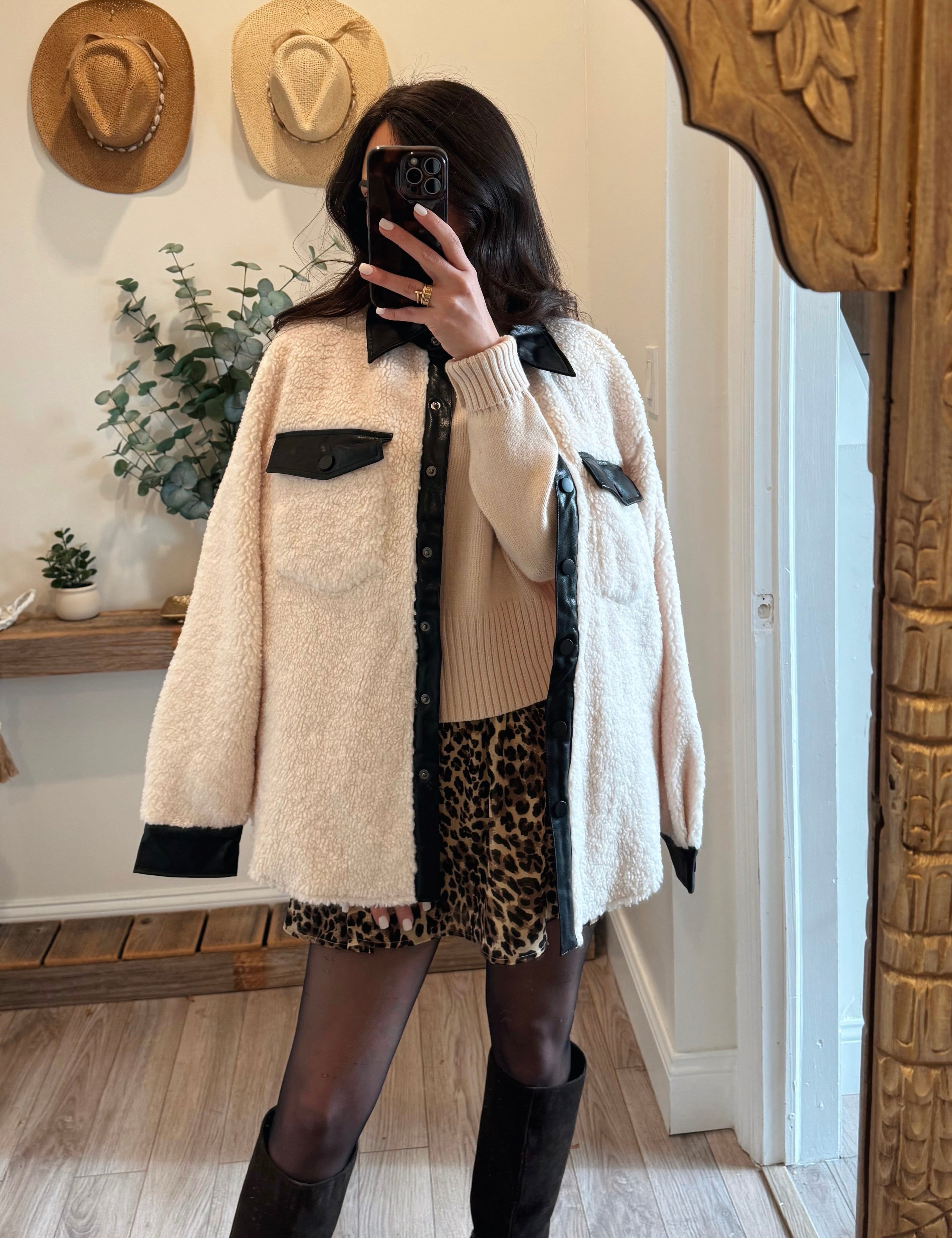Latte/Brick Multi Fabric Hooded Bu Shacket