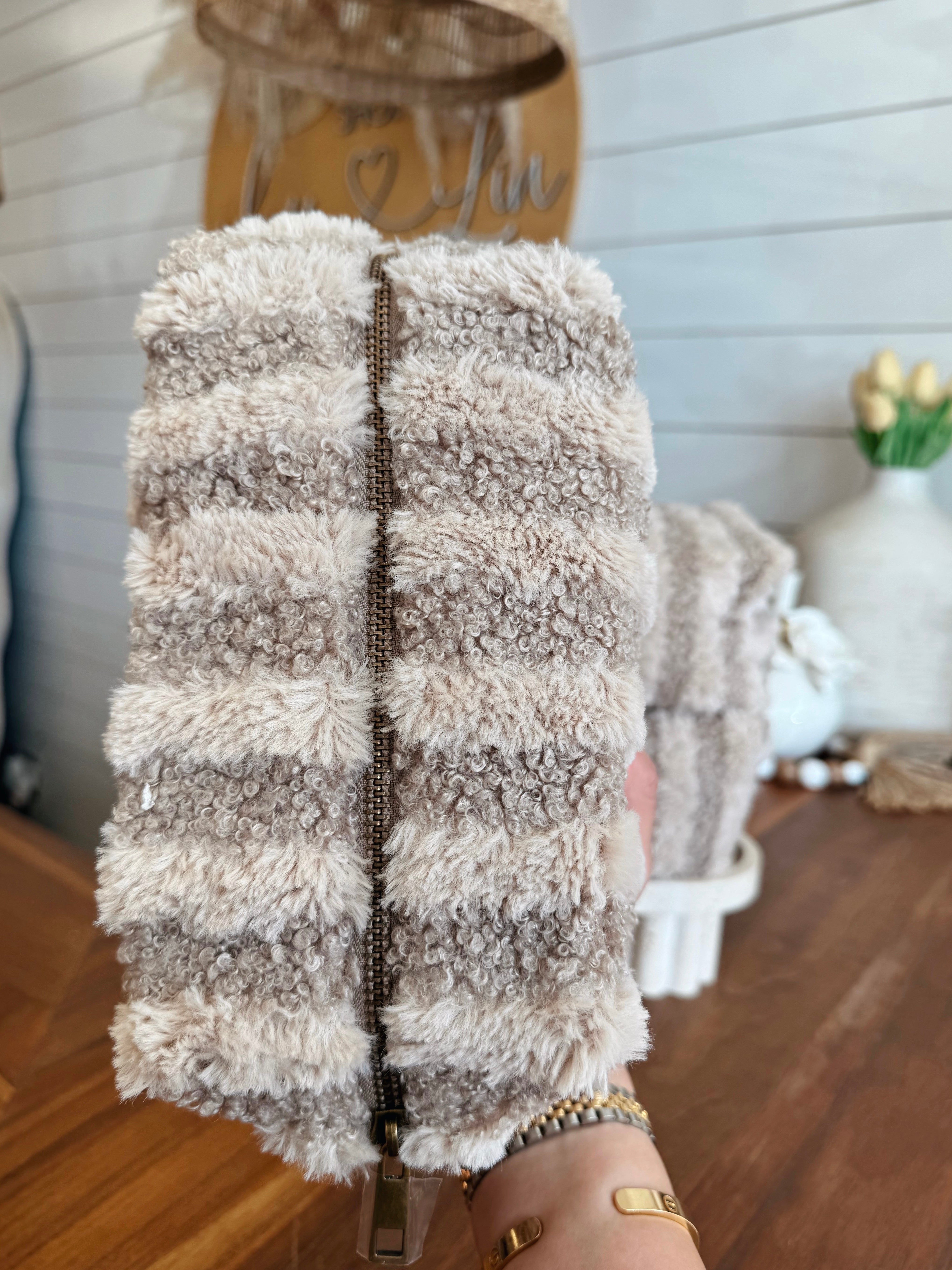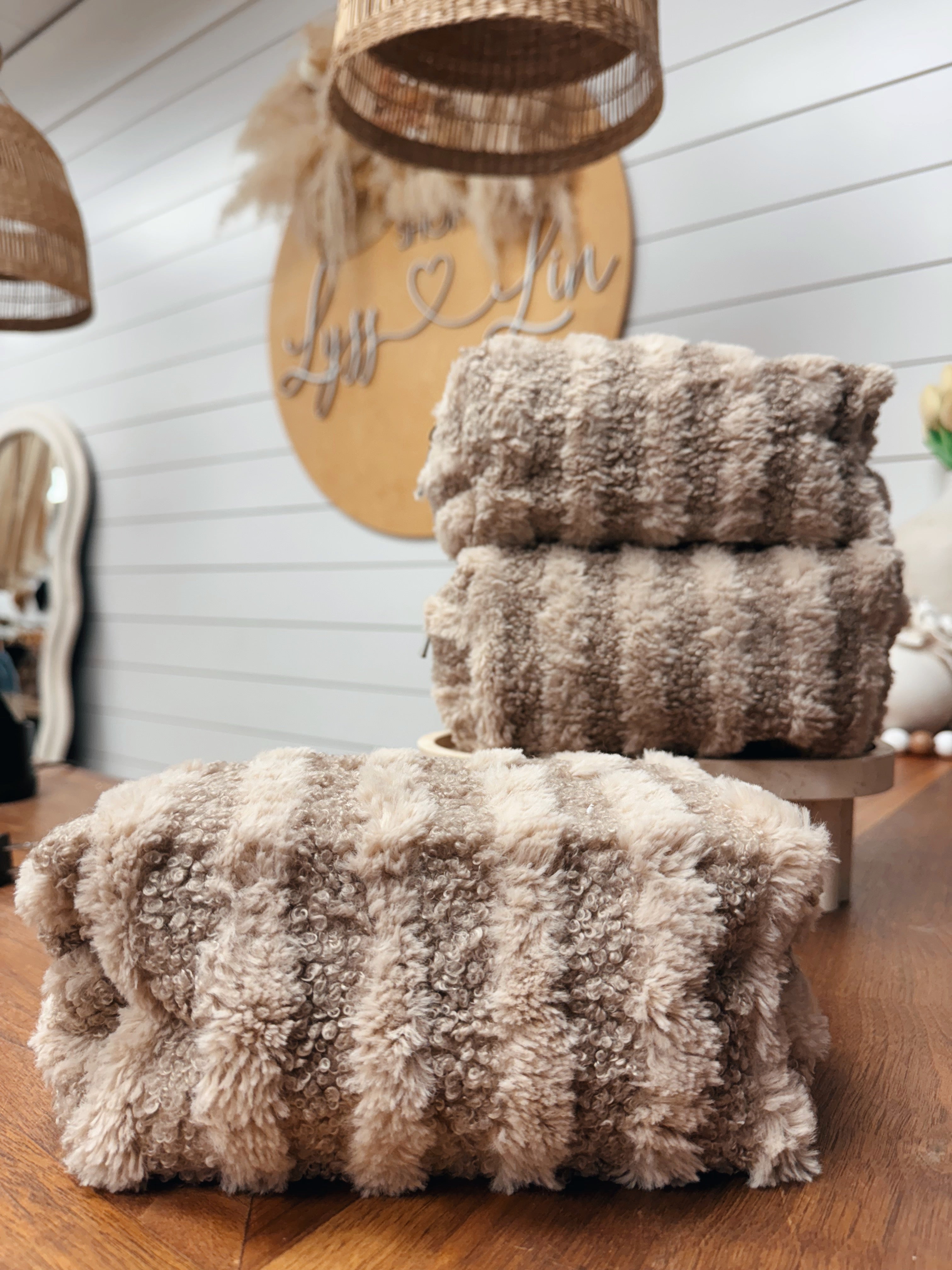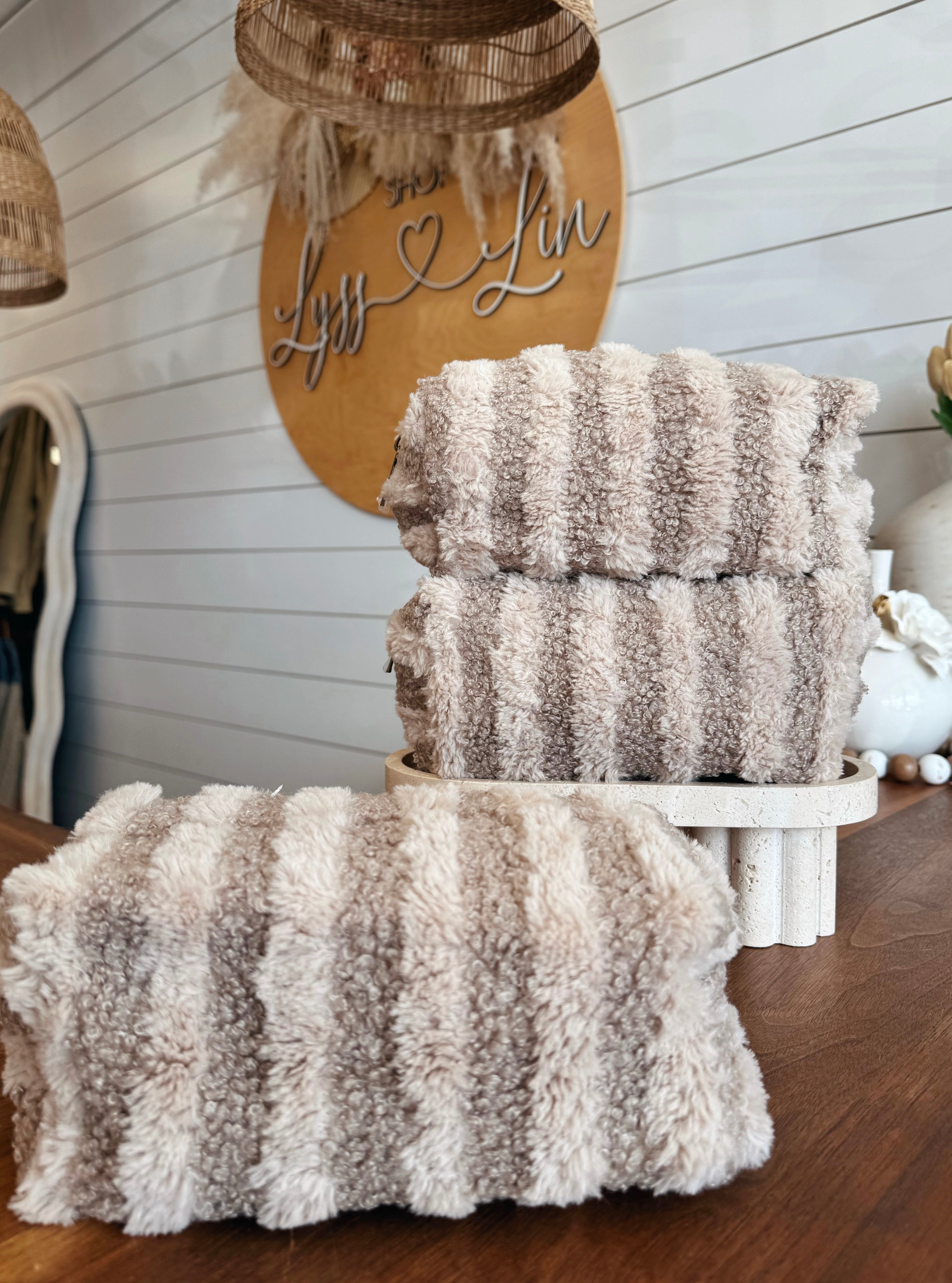 Stripe Pattern Sherpa Travel Pouch